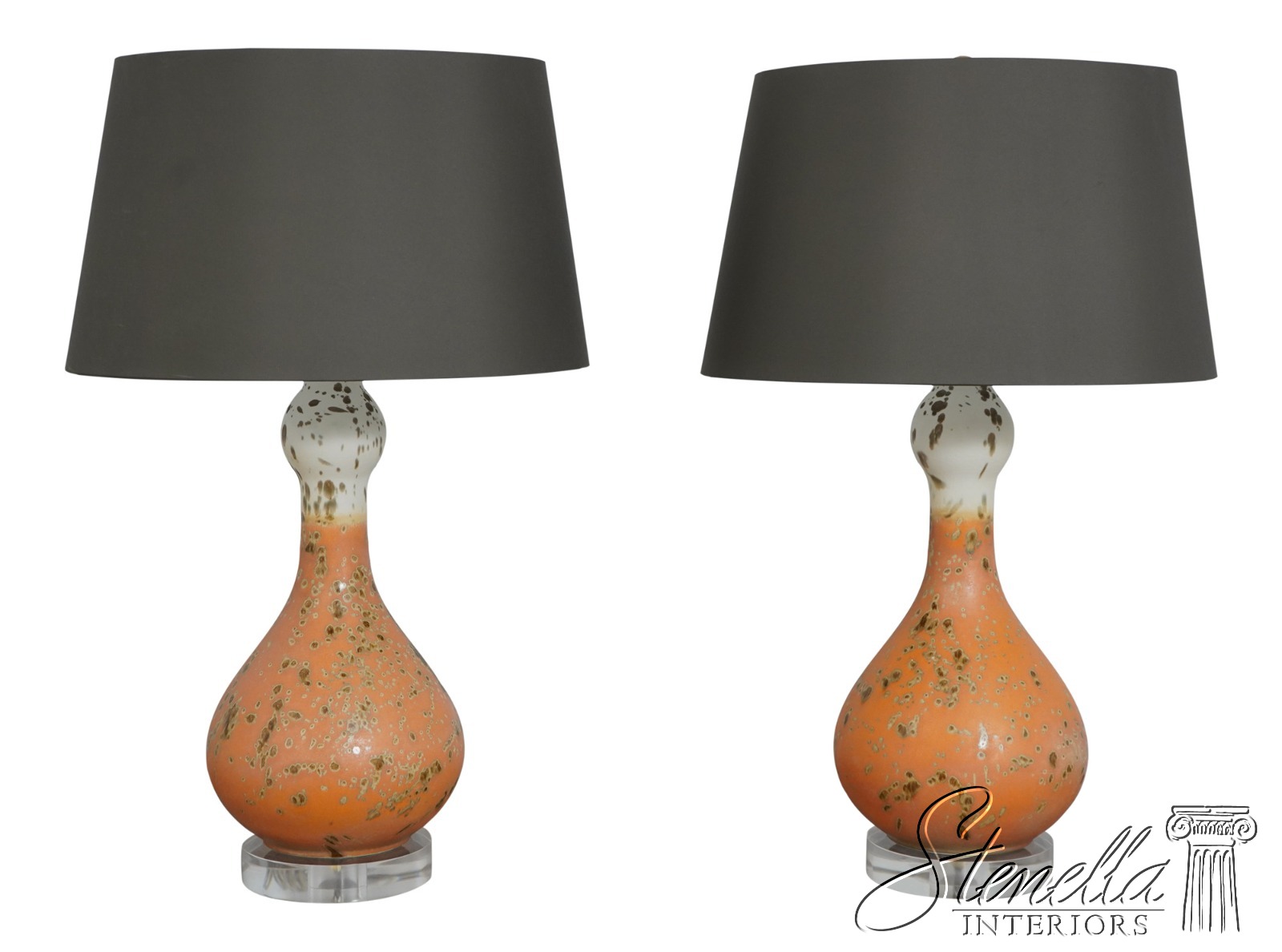 F67528: Pair Modern Design Art Pottery Lamps w. Lucite Bases