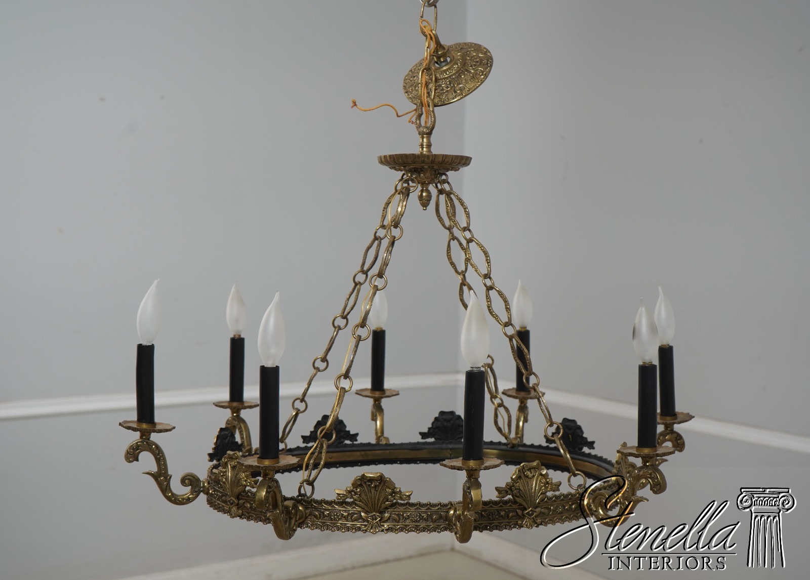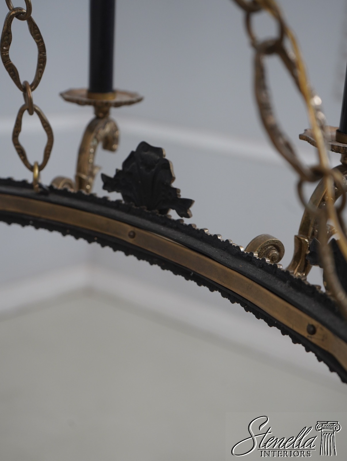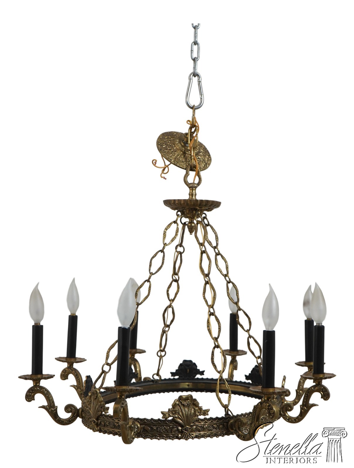 F68663: French Empire 8 Arm Black & Brass Hanging Chandelier