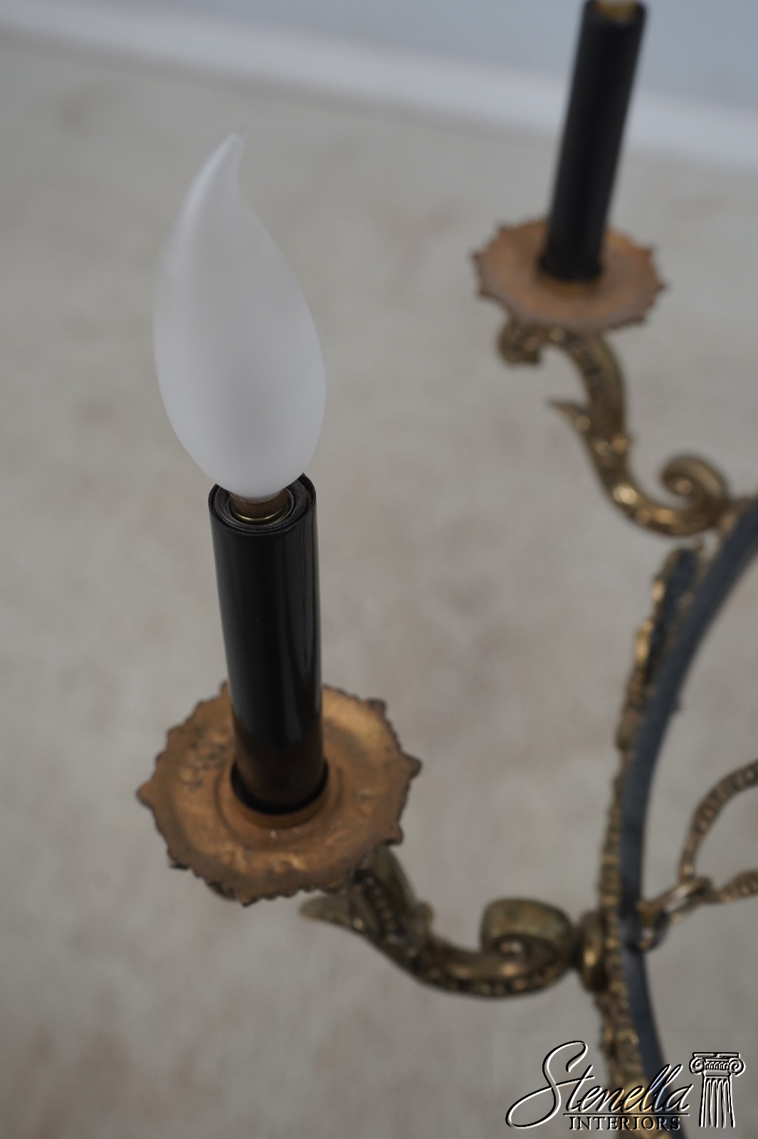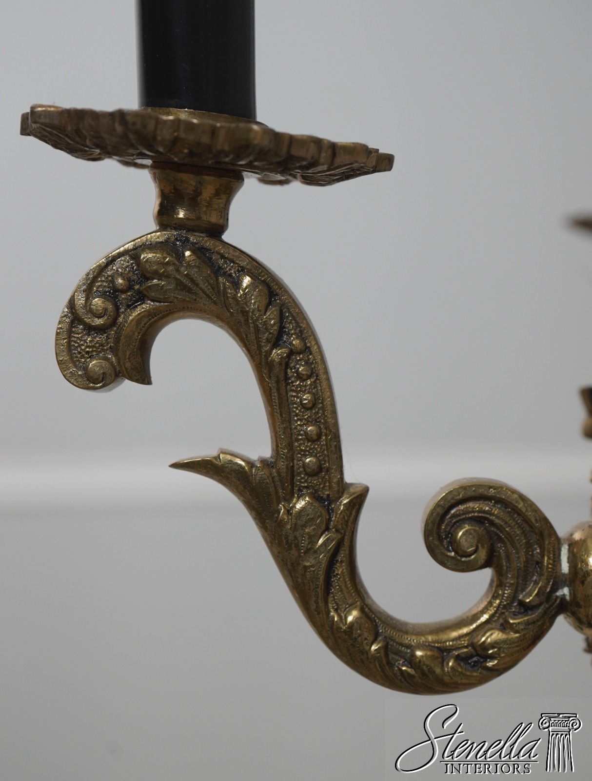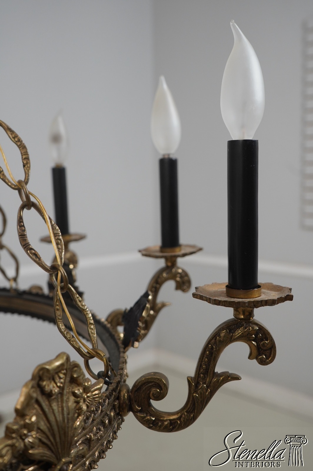 F68663: French Empire 8 Arm Black & Brass Hanging Chandelier