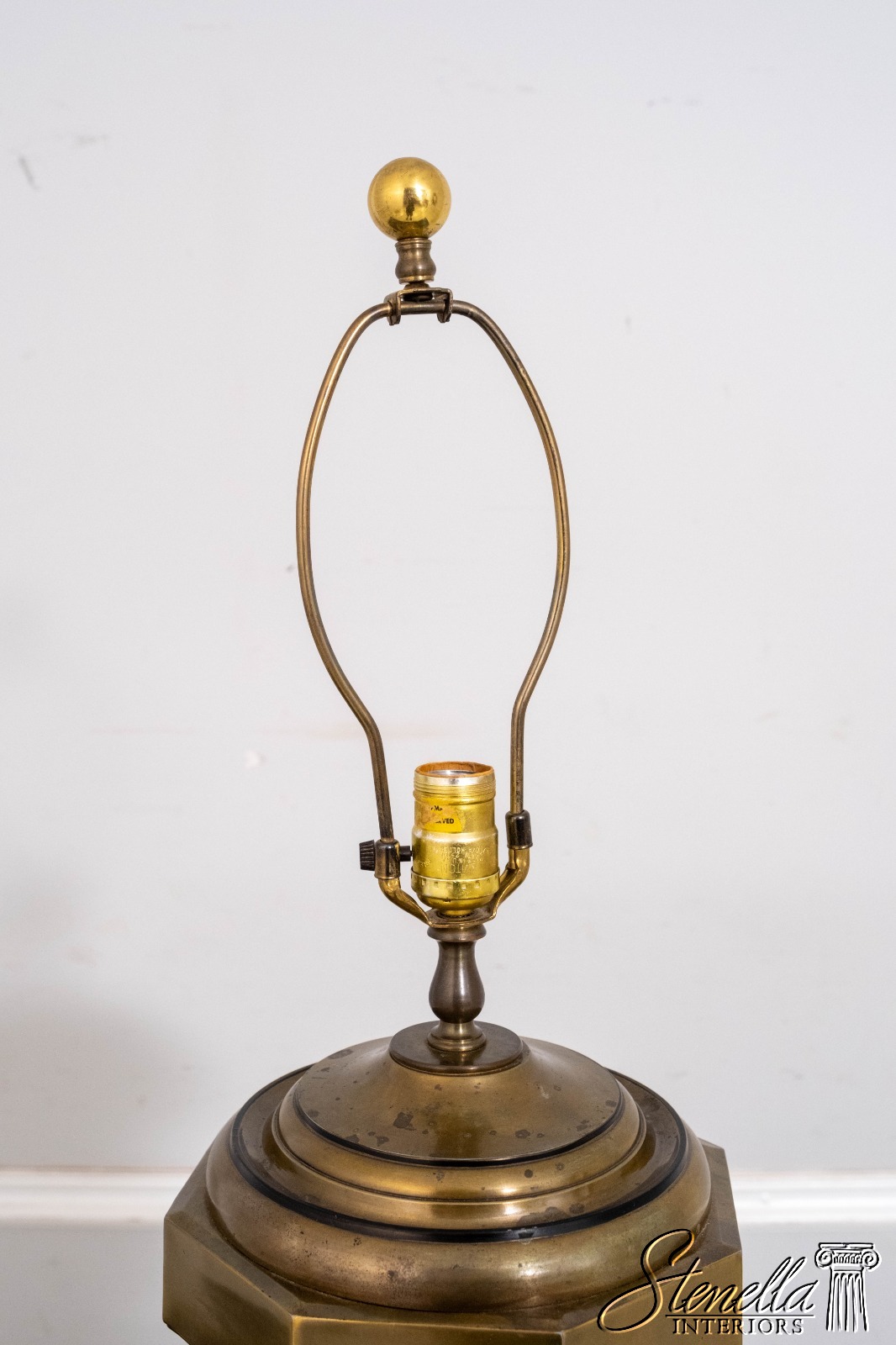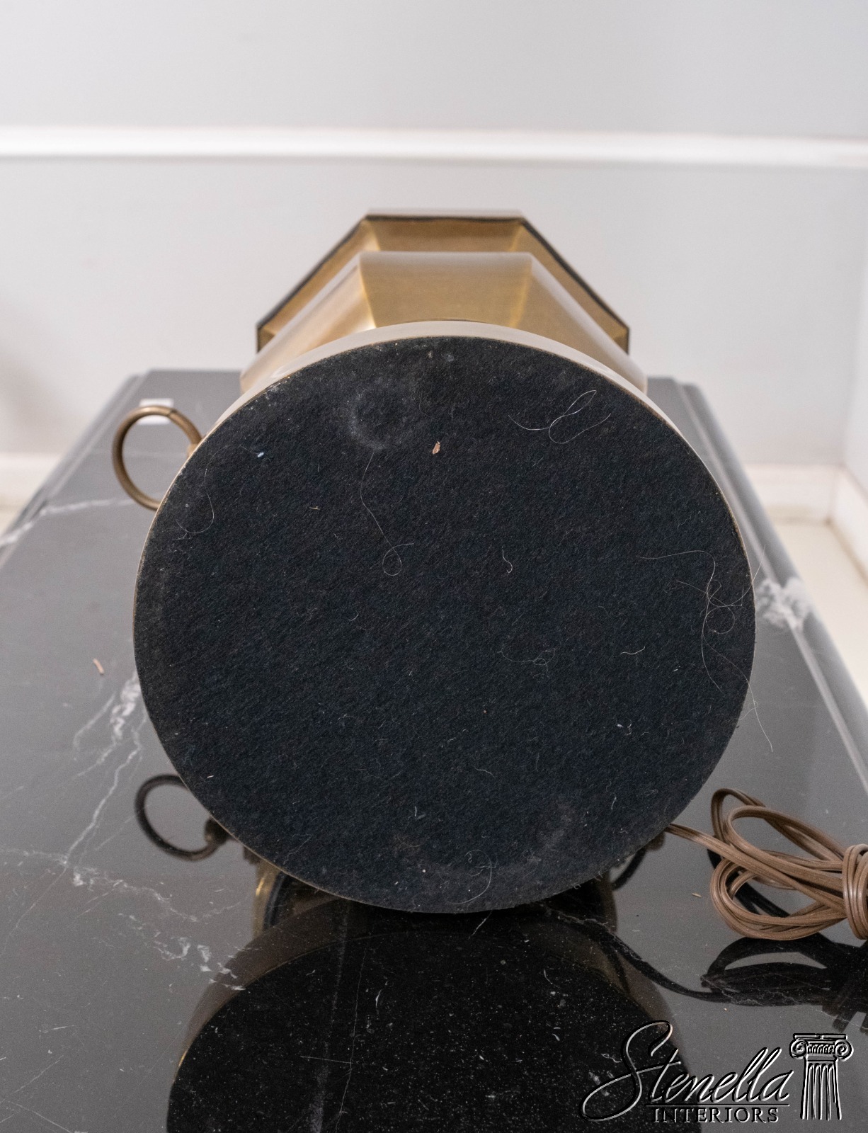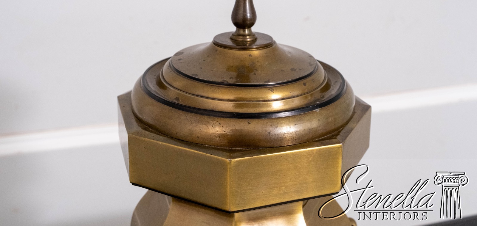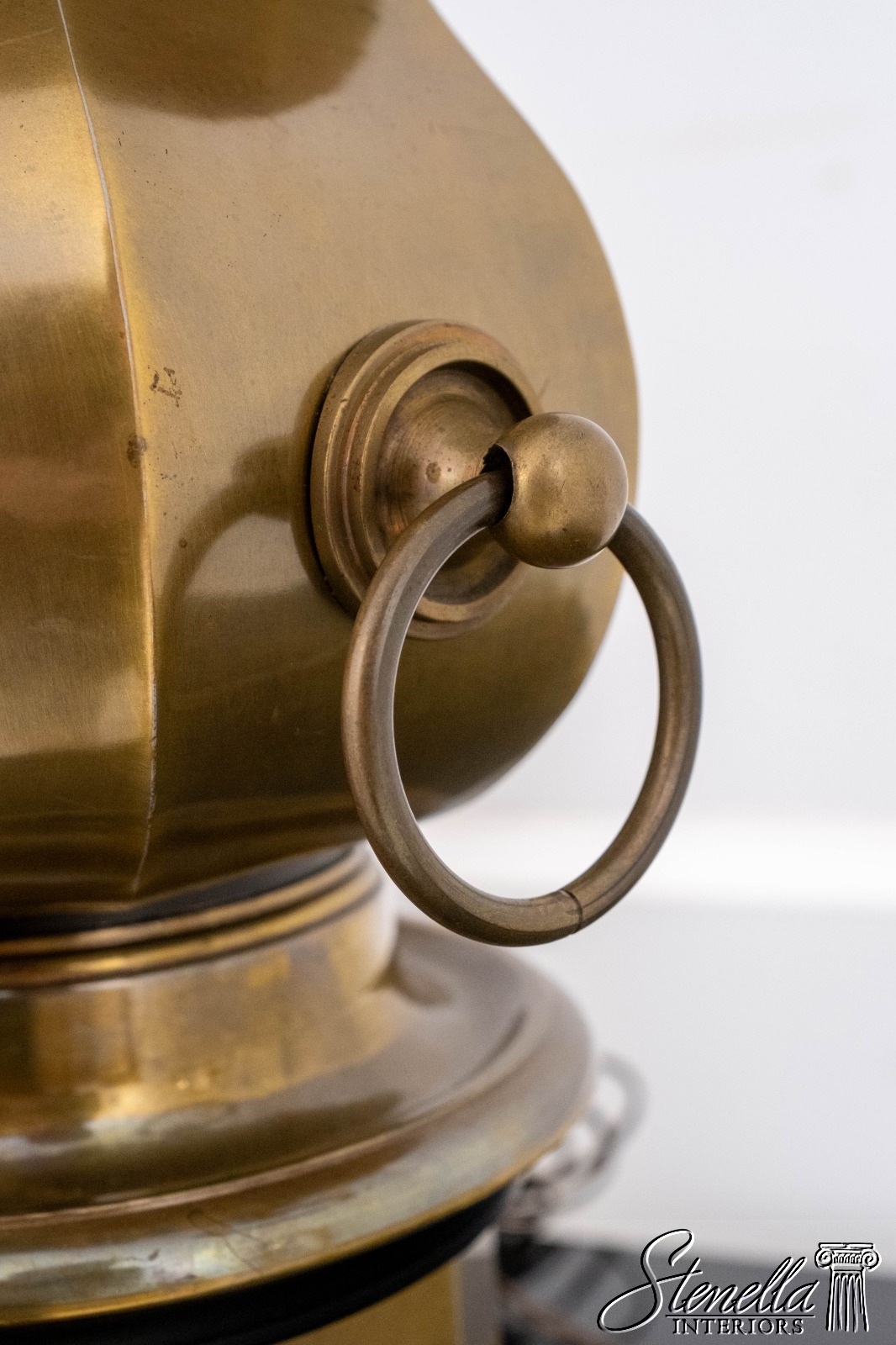 Details: Large impressive brass lamp that makes a statement. Octagonal body, ring handles, weighty base. Possibly by "Chapman" in late 1970s.