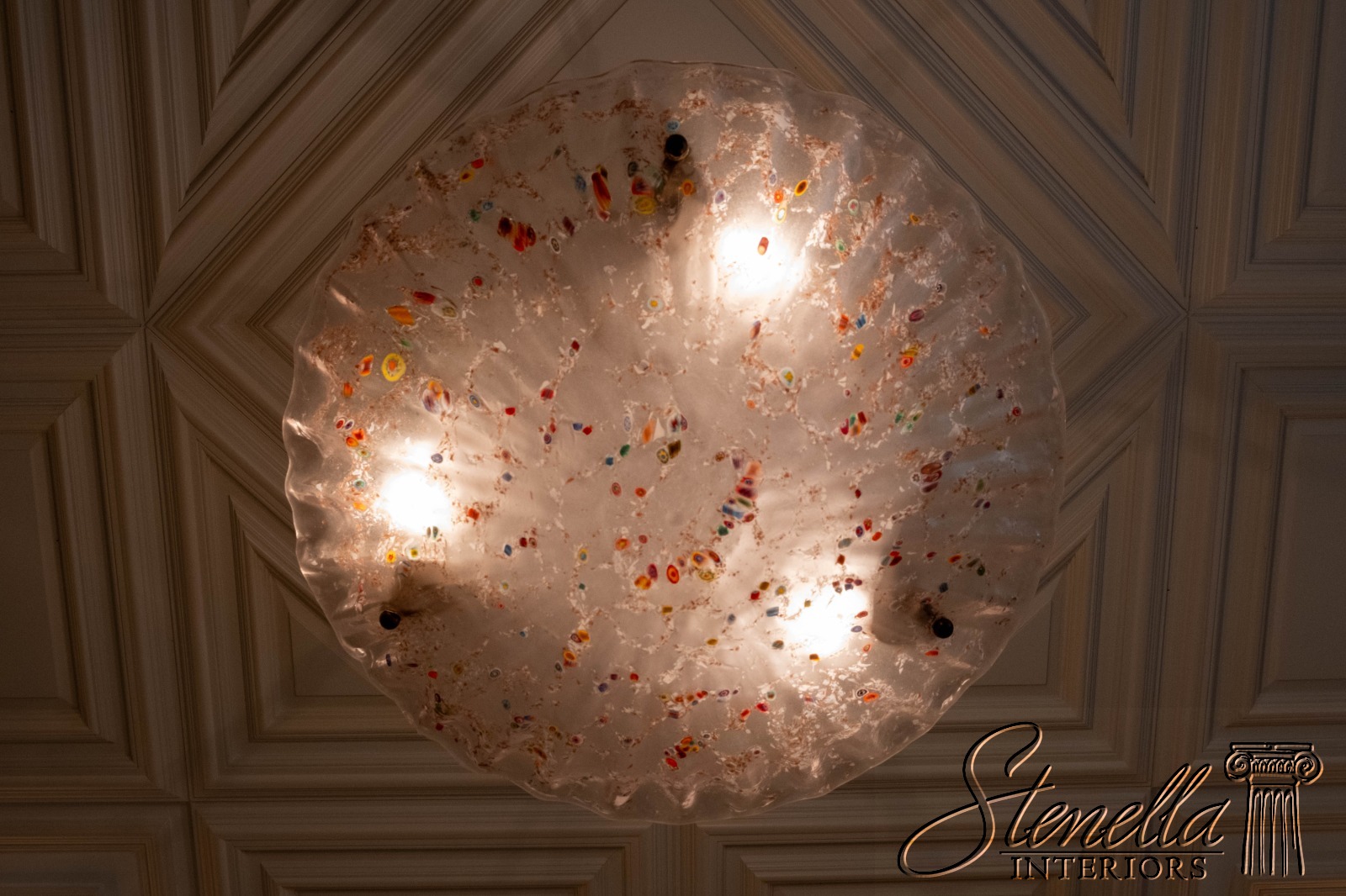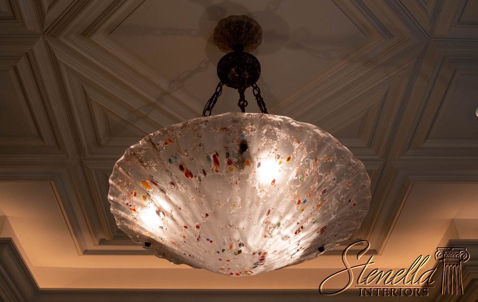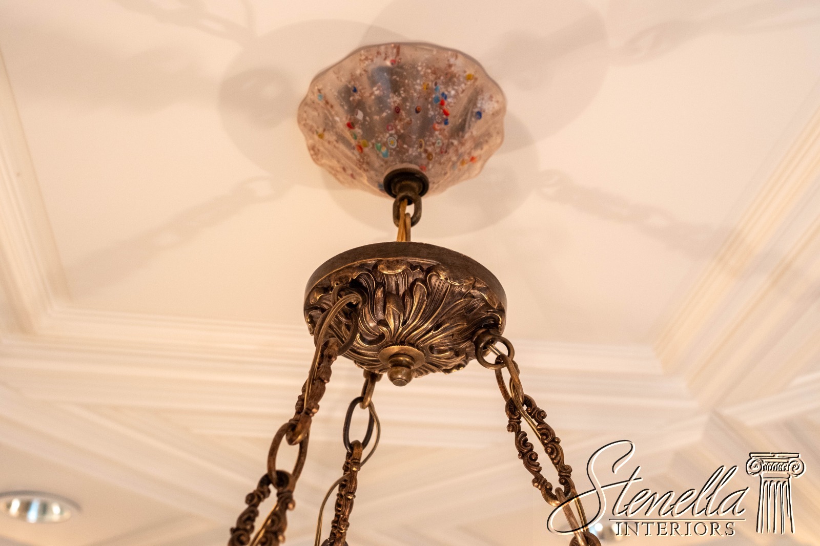 F68896: Vintage Italian Art Glass Bronze Ceiling Chandelier