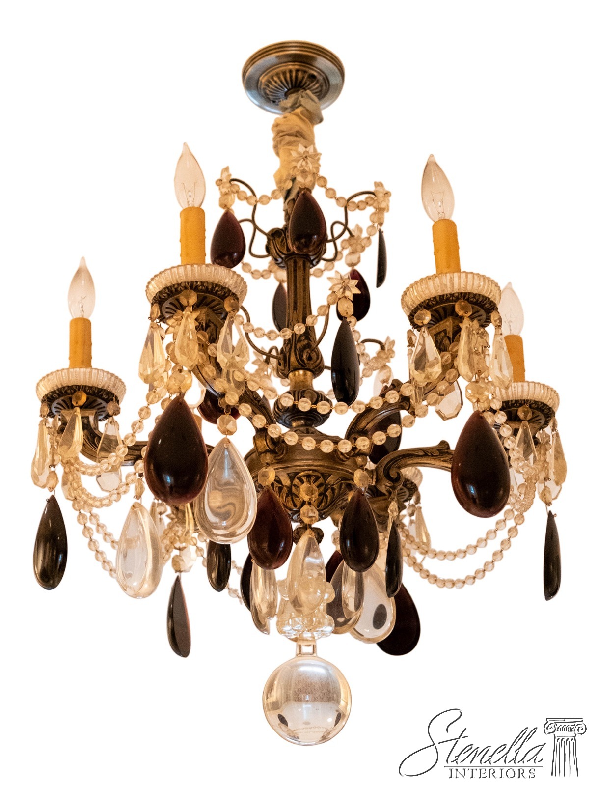 F68916: Hollywood Regency Ceiling Chandelier w/ Purple Crystal Prisms