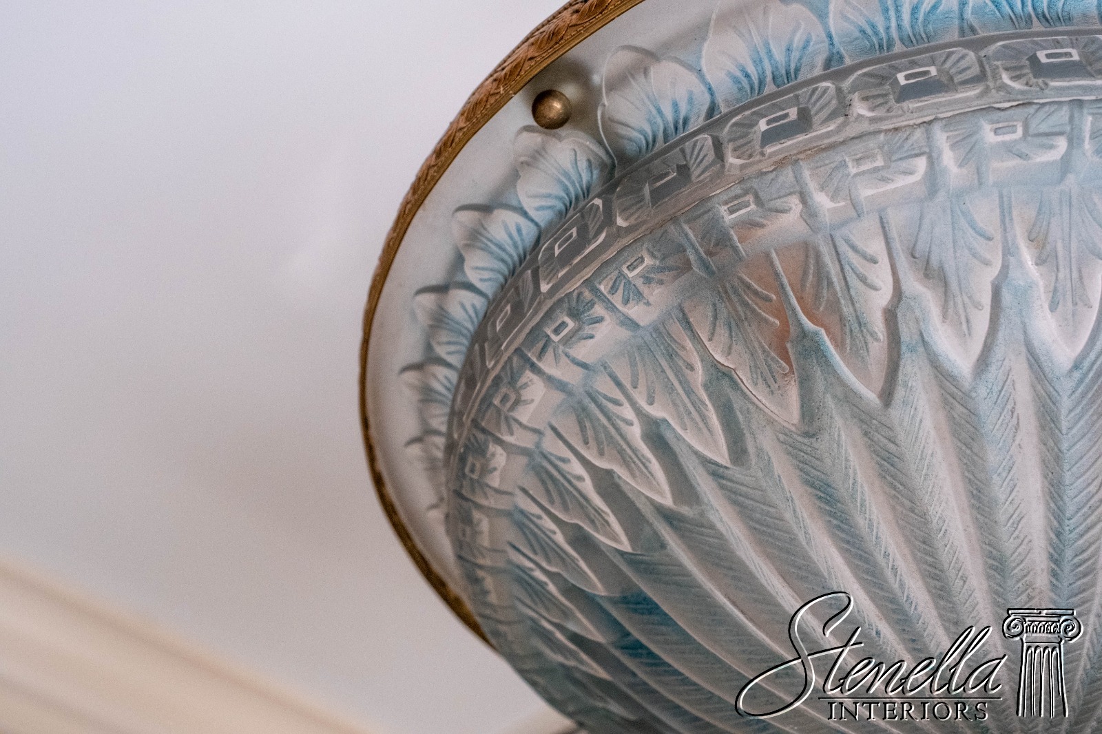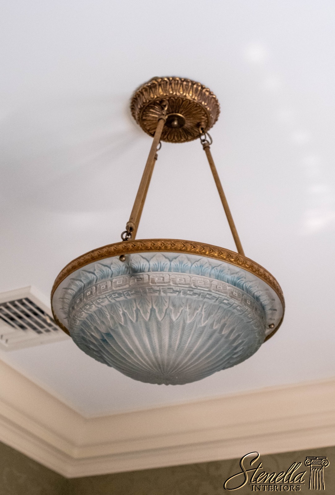 Details: Bluish glass globe Stunning Vintage fixture French Art Deco style