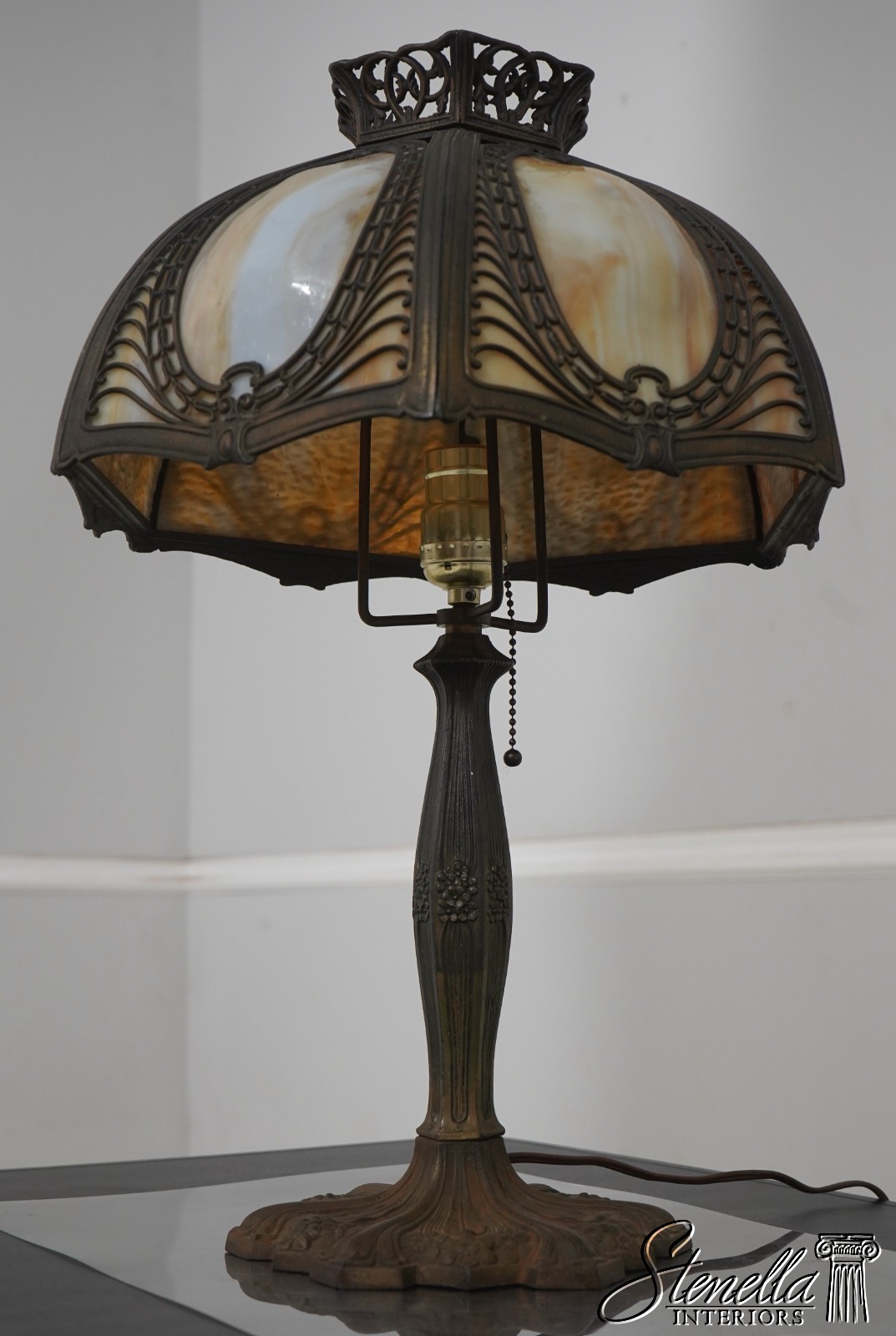 F69075: Vintage Early 1900’s Slag Glass Table Lamp