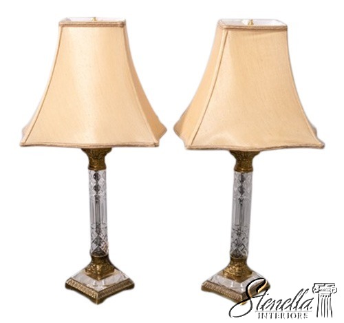 F69606: Pair Of Neoclassical Column Crystal Glass Table Lamps