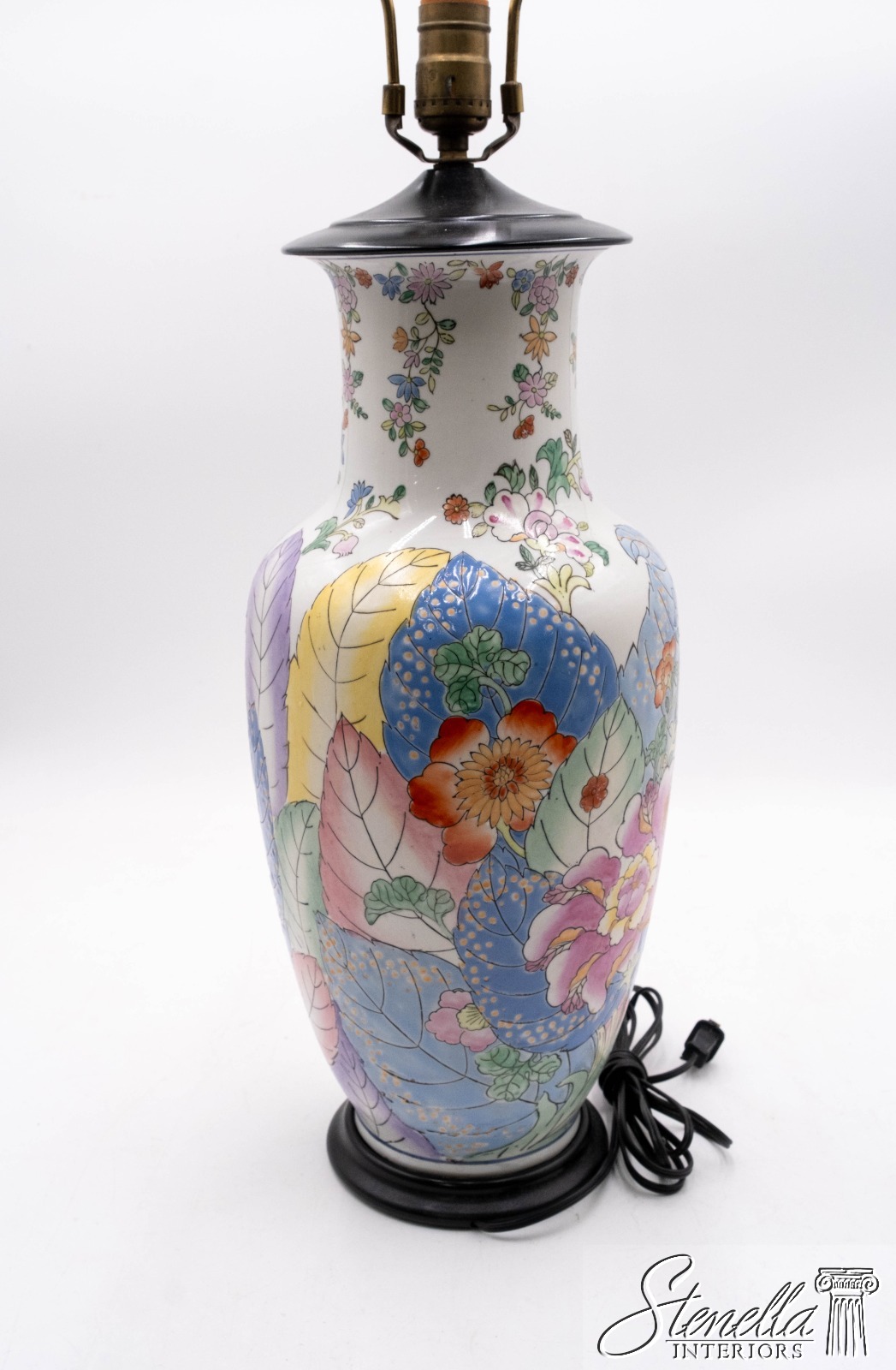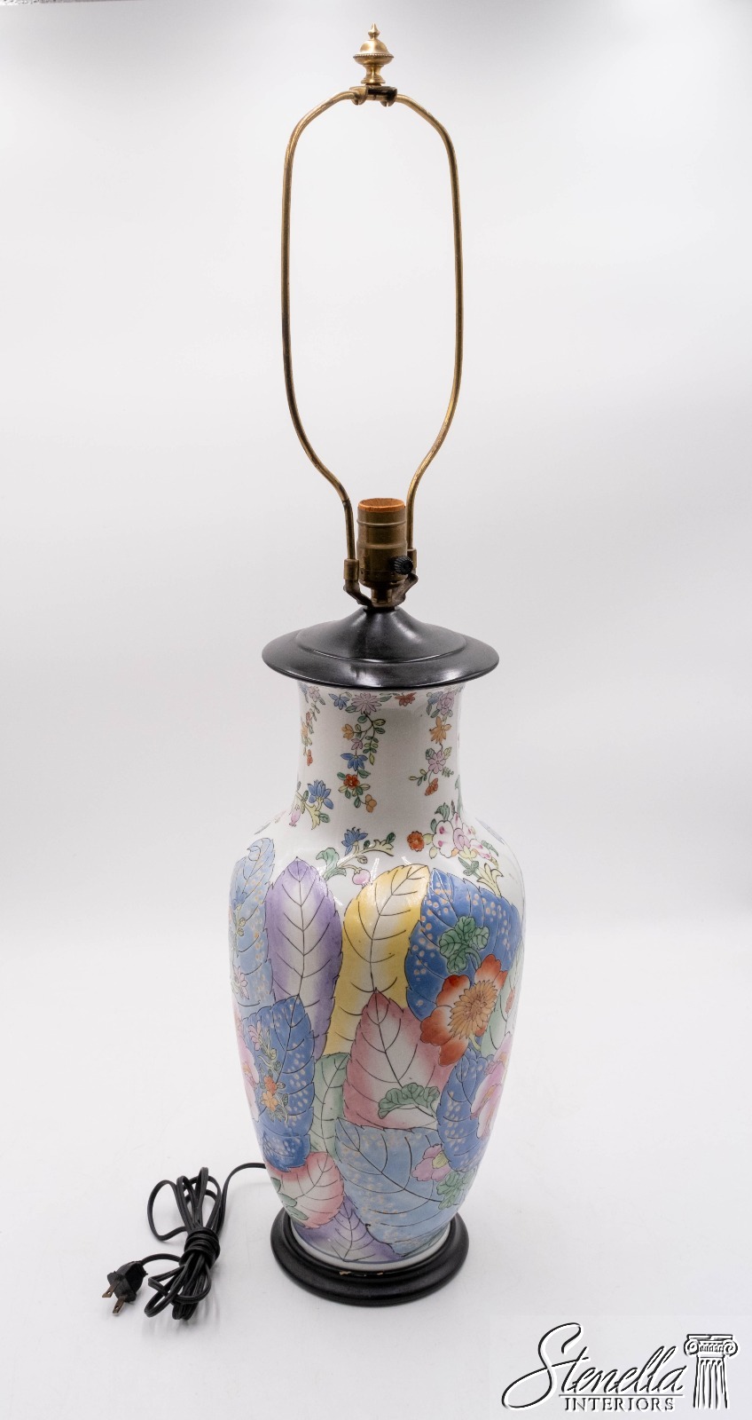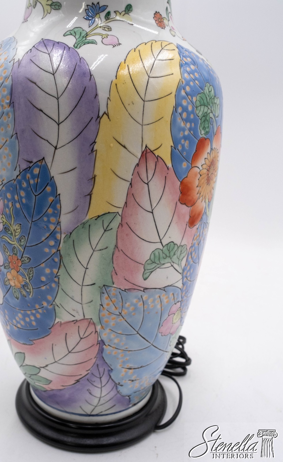 F69645: Mid Century Chinoiserie Tobacco Leaf Table Lamp
