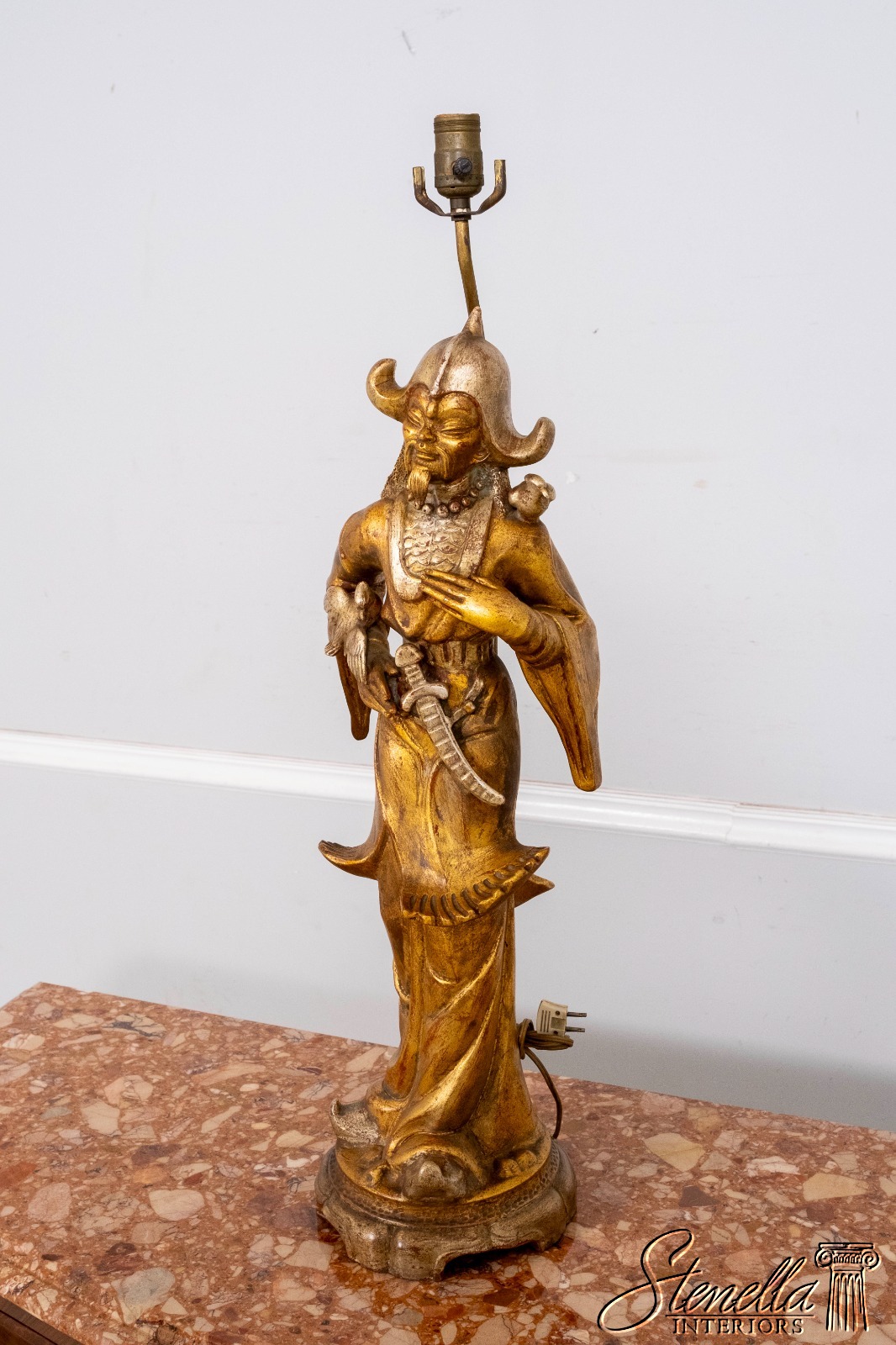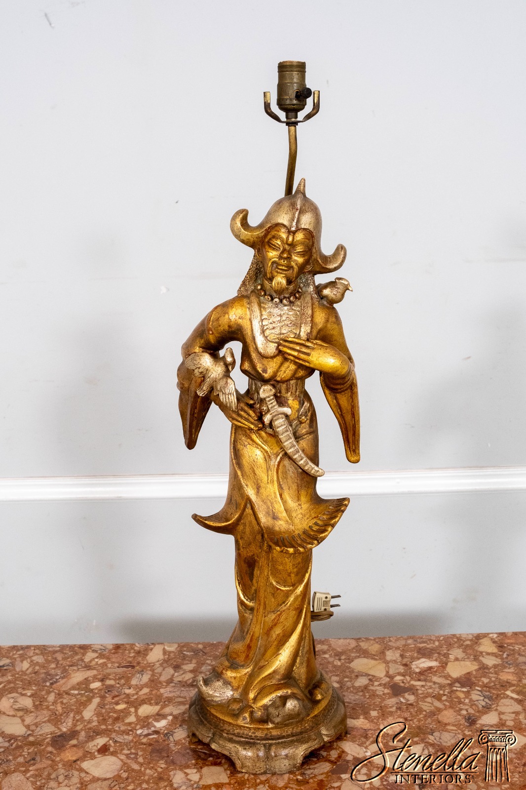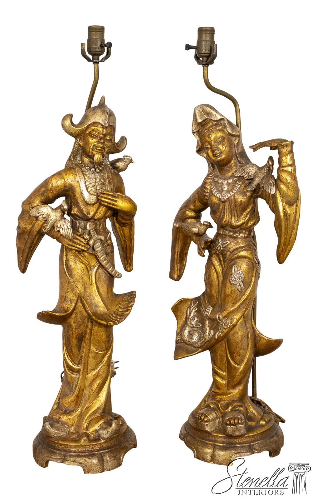 F69864: Pair ARDALT Chinese Figural Gold Finish Lamps