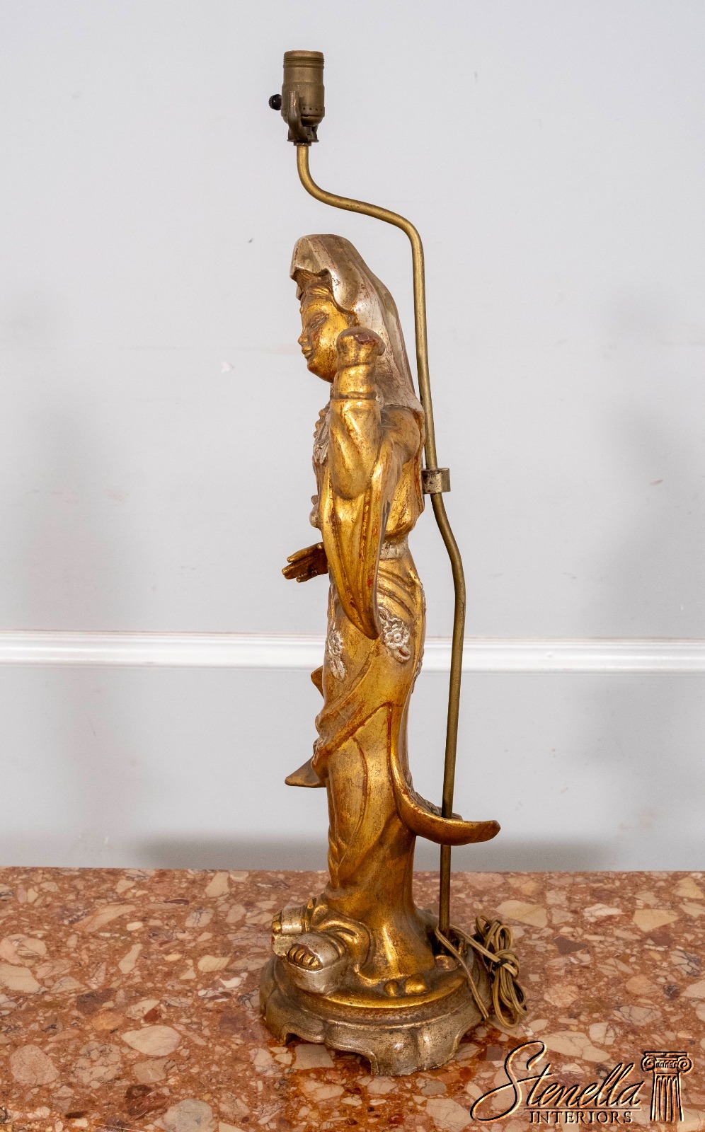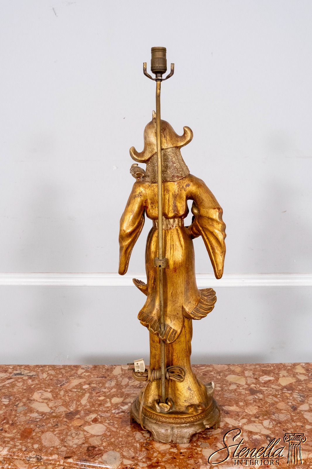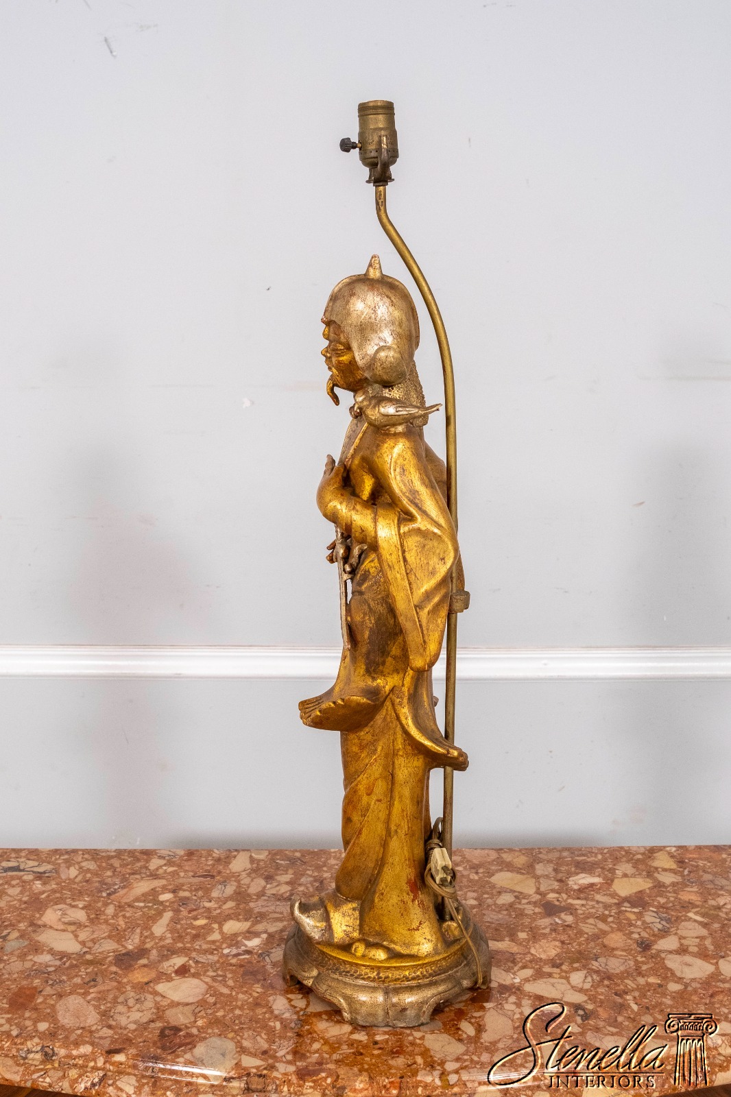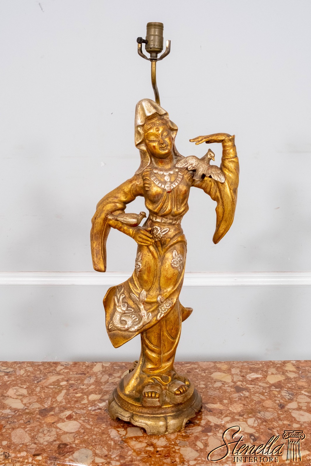 F69864: Pair ARDALT Chinese Figural Gold Finish Lamps