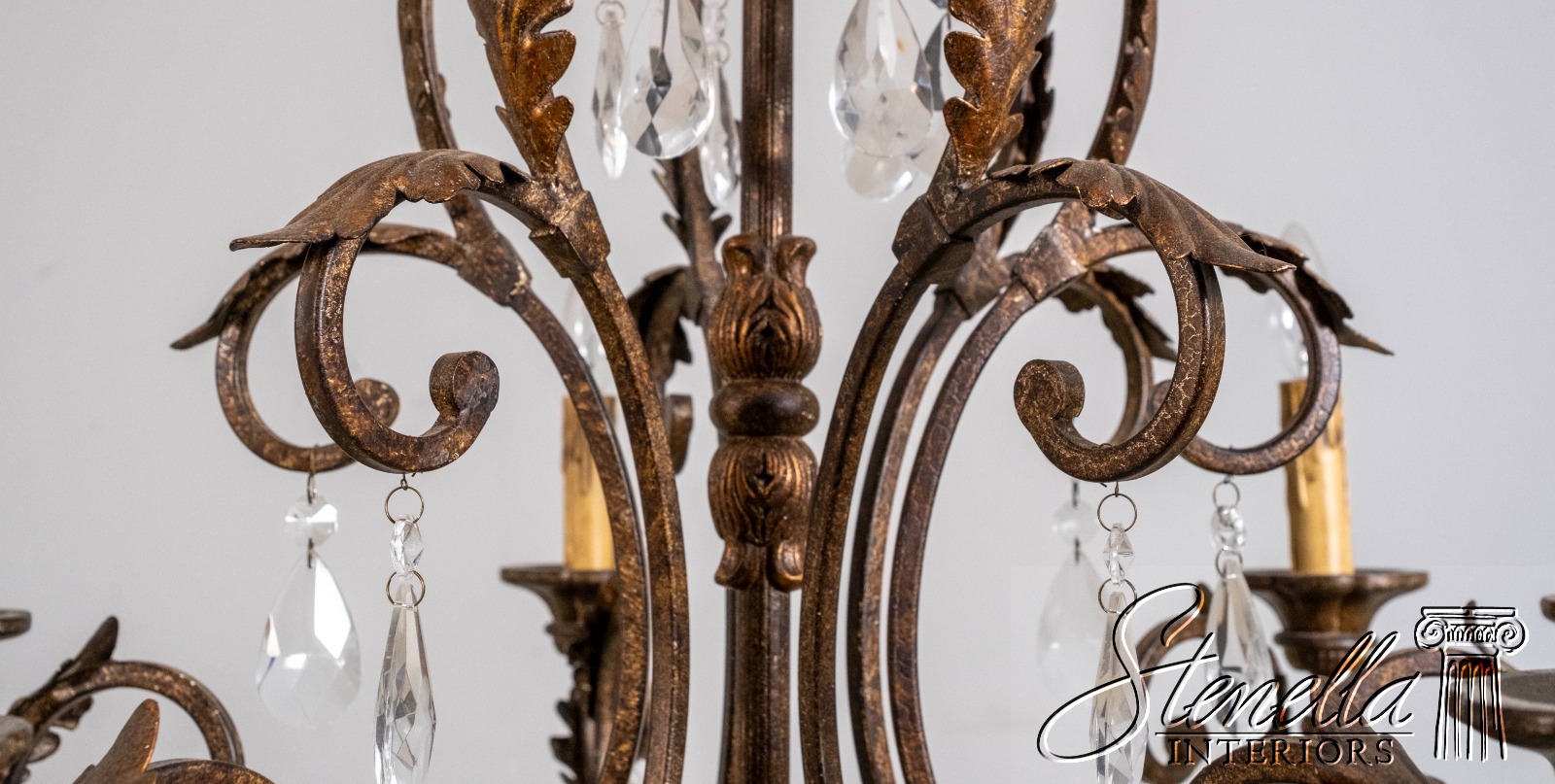 Details: High Quality Construction Bronze Painted Finish Crystal Prism Pendants Scrolled Arms Leaf Accents Ornate Drip Cup Un-Marked As To Manufacture Offered @ Fraction Original Retail Cost