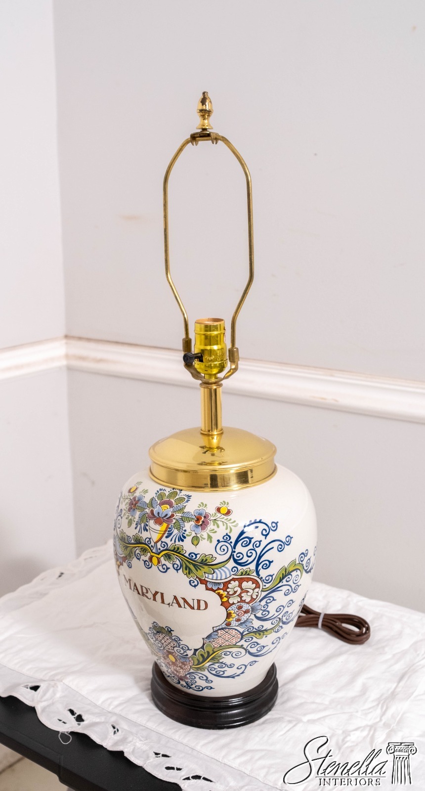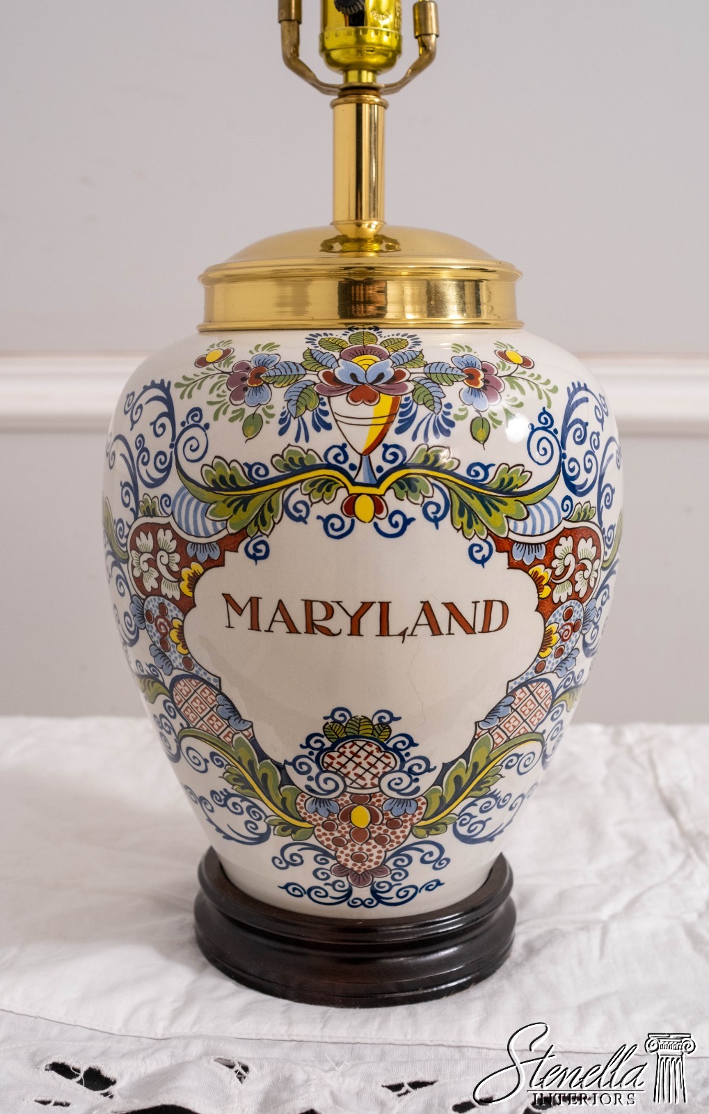 Details: ‘Maryland’ High Quality Construction 18 C. Design Traditional Style Solid Brass Hardware Polychrome Decoration Un-Marked As To Manufacture Wood Base Acorn Final No Shade Offered @ Fraction Original Retail Cost