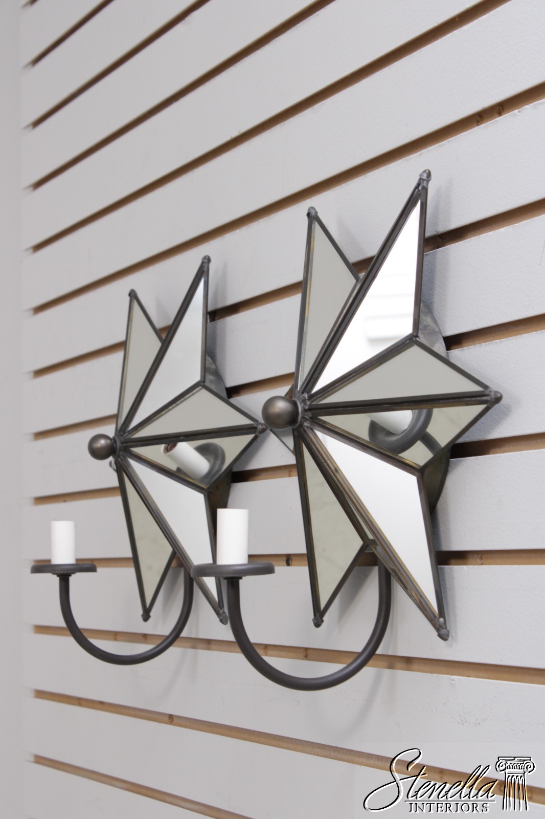 F72126: Pair Of MEYDA Mirrored Star Electric Wall Sconces