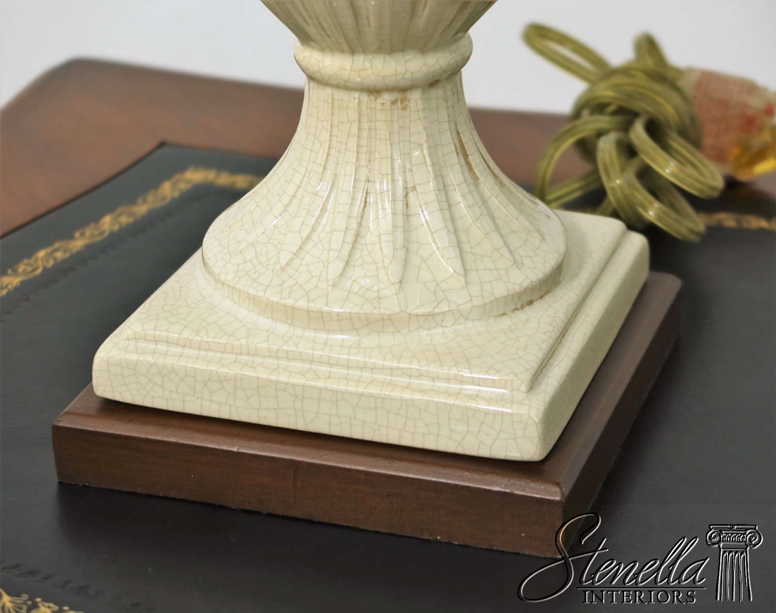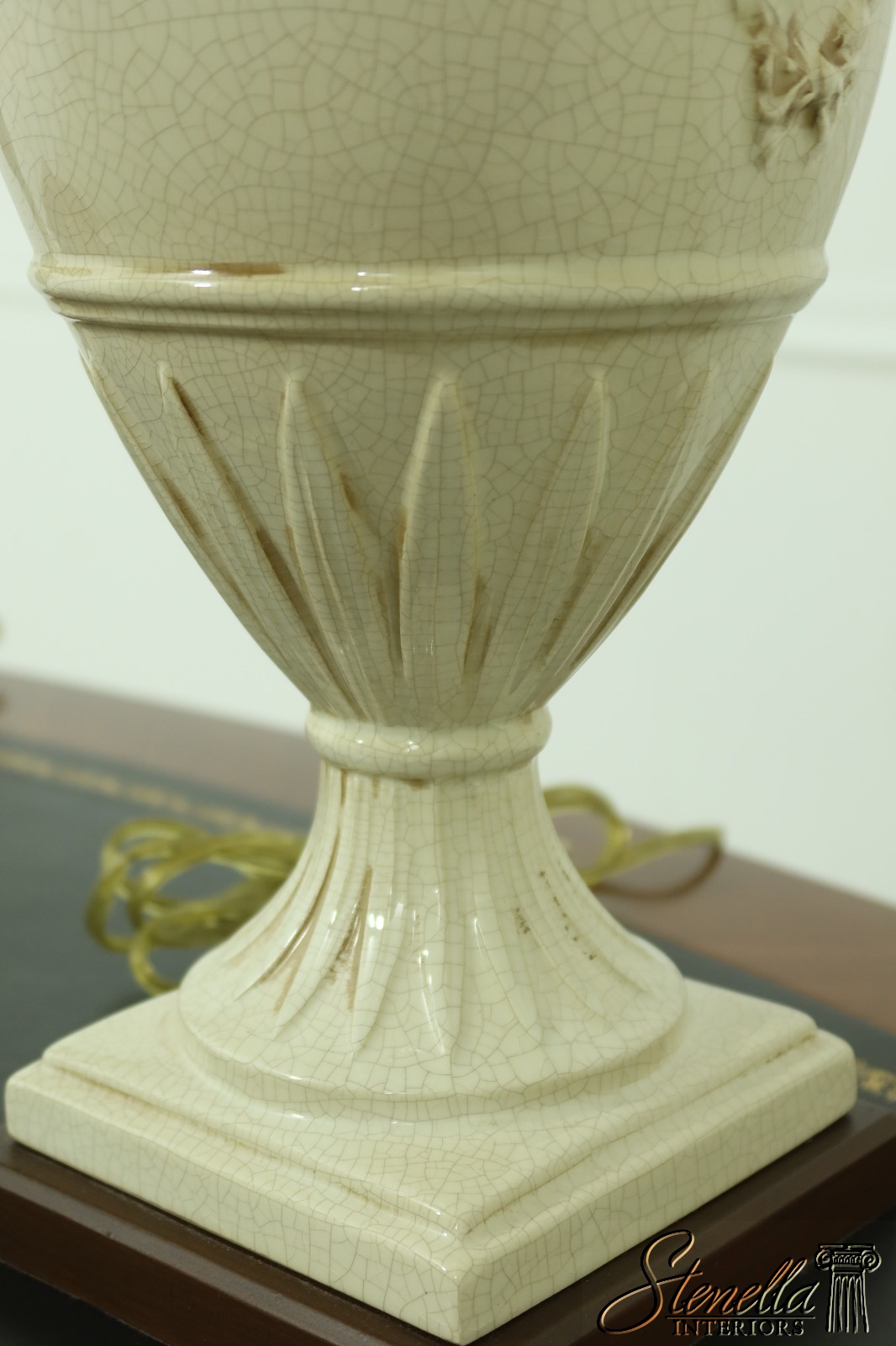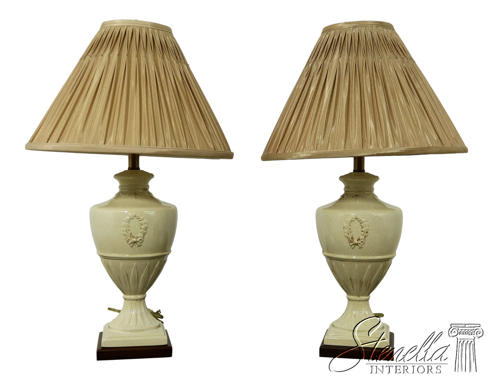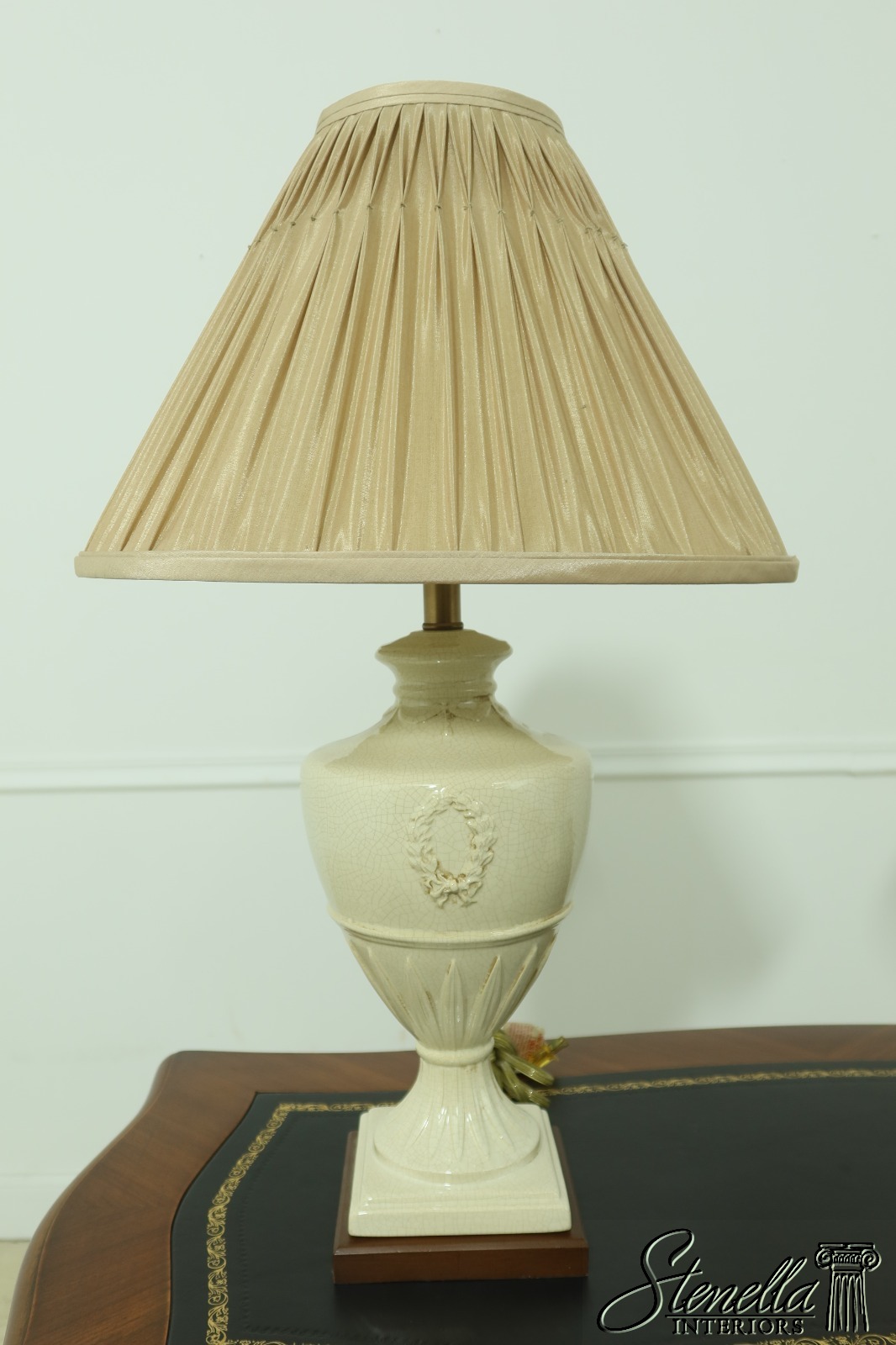 LF54435: Pair ETHAN ALLEN Crackle Porcelain Wreath Table Lamps