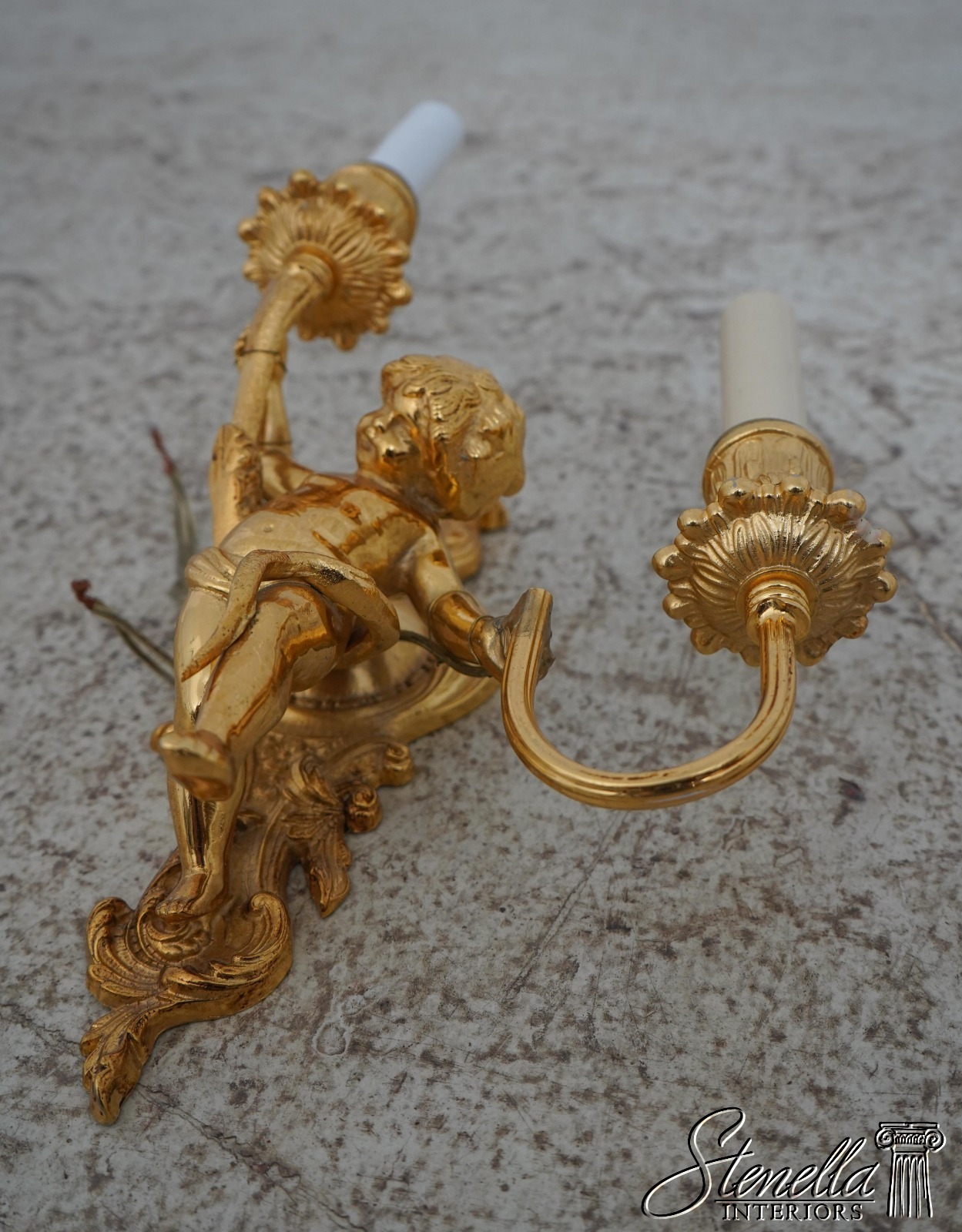 LF61642EC: Pair Cherub 2 Arm Lighted Brass Wall Sconces