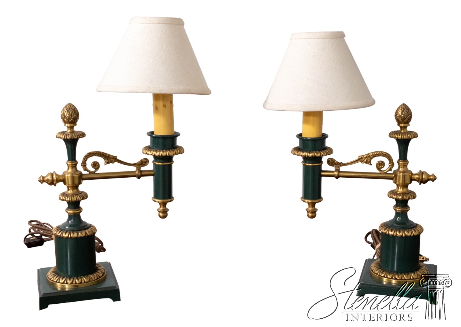 LF70665: Pair French Bouillotte Small Table Lamps w. Shade