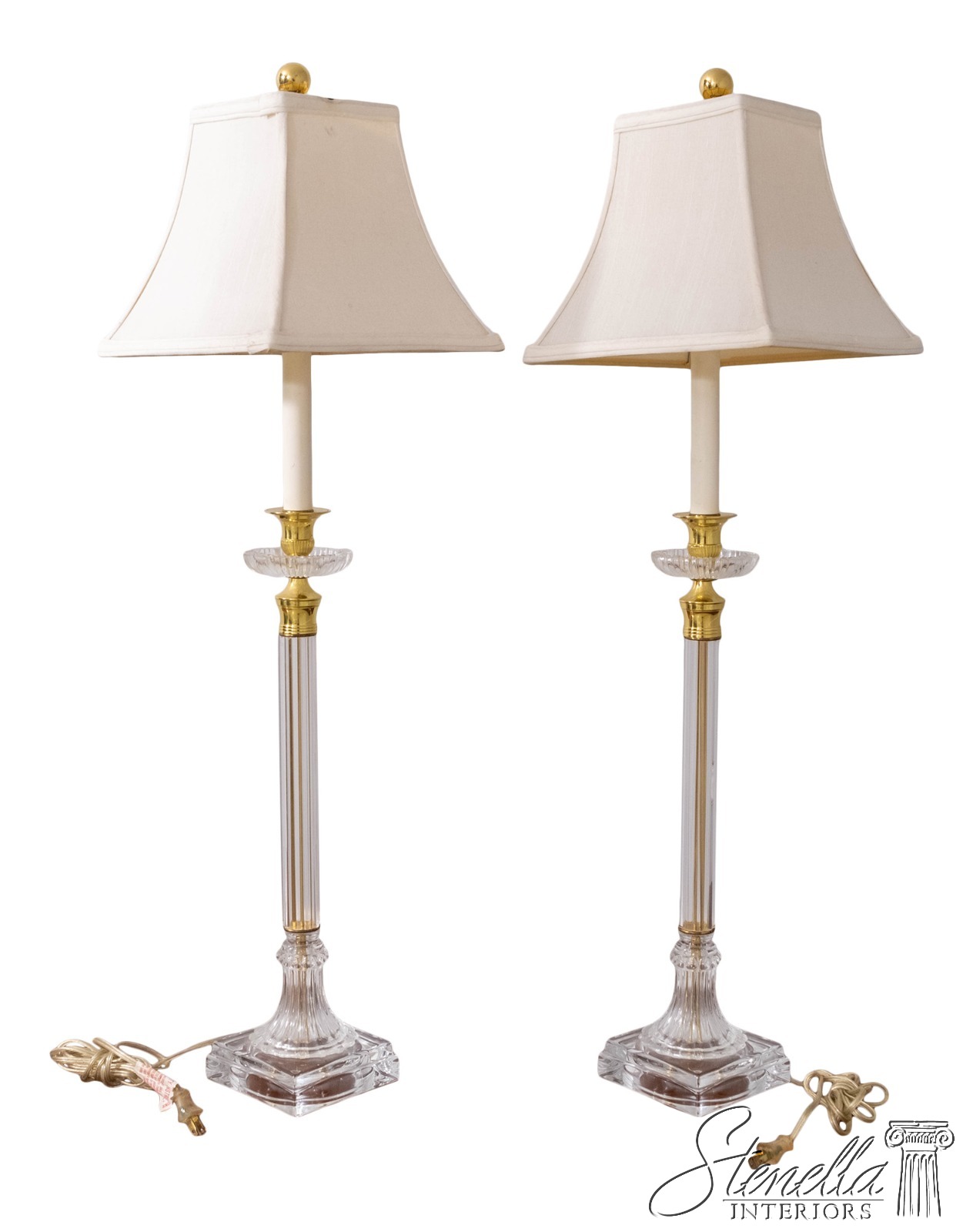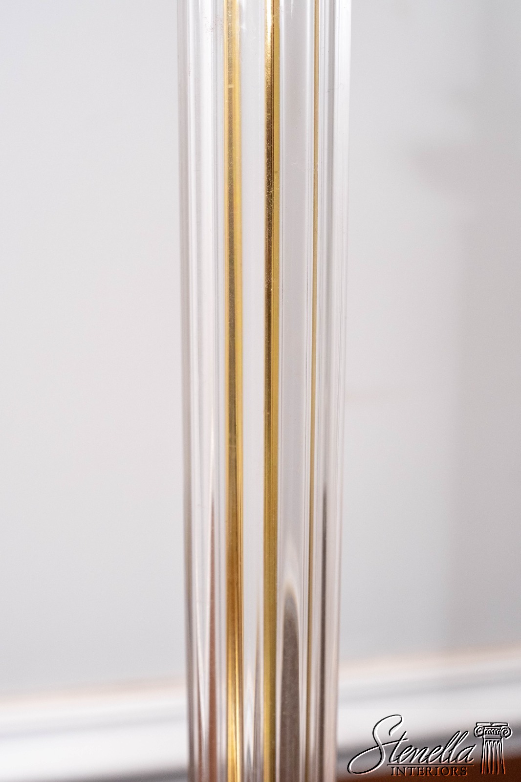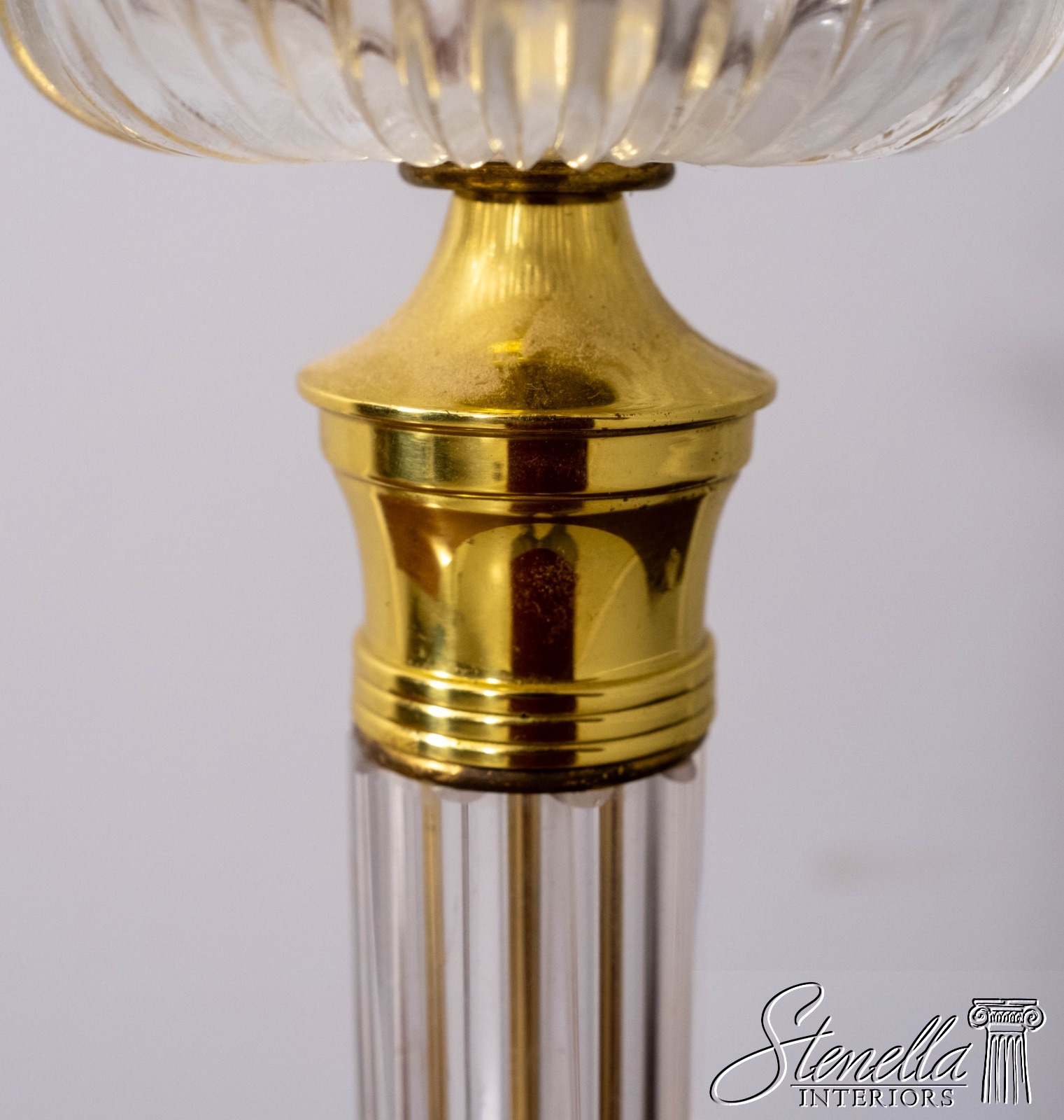LF70668: Pair Vintage Glass Column Design Table Lamps w. Brass Accents
