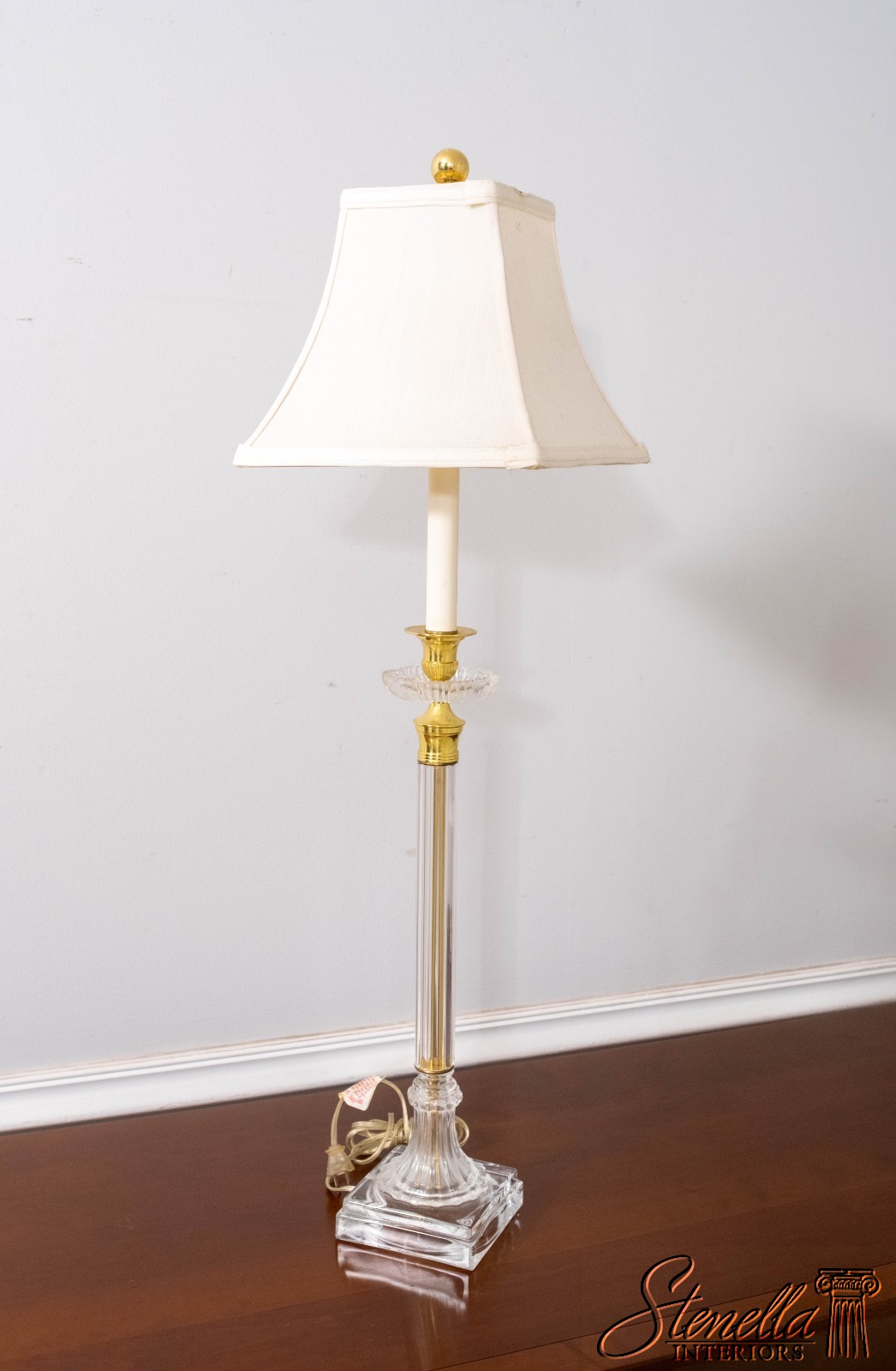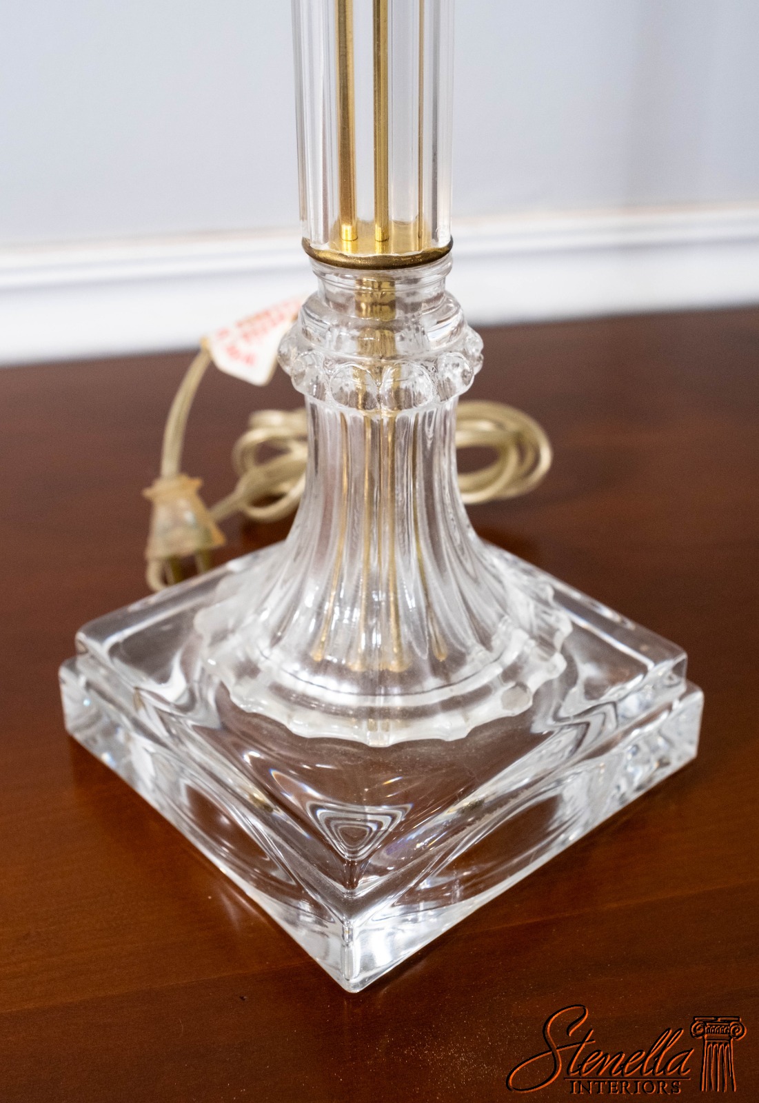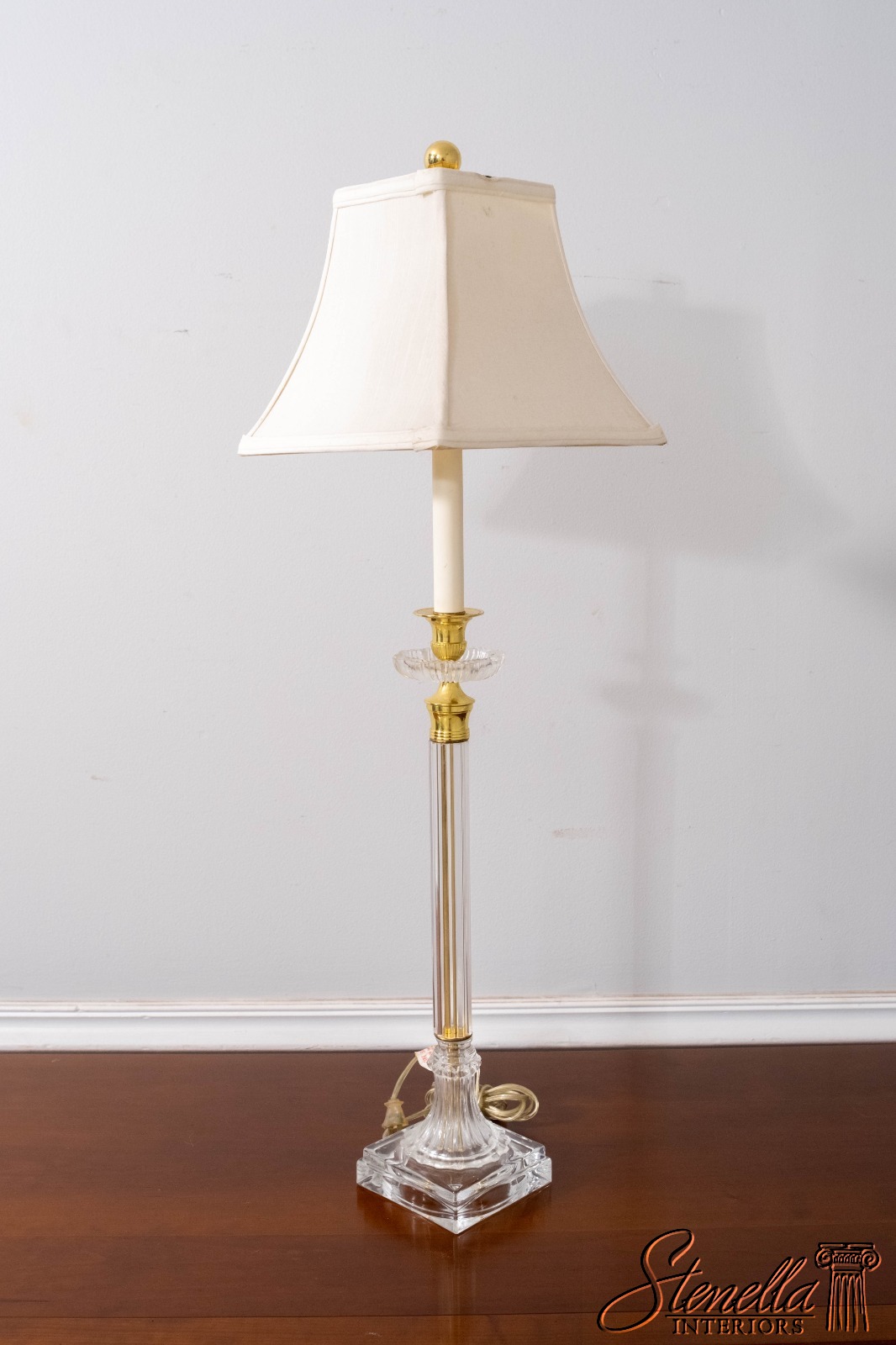 LF70668: Pair Vintage Glass Column Design Table Lamps w. Brass Accents