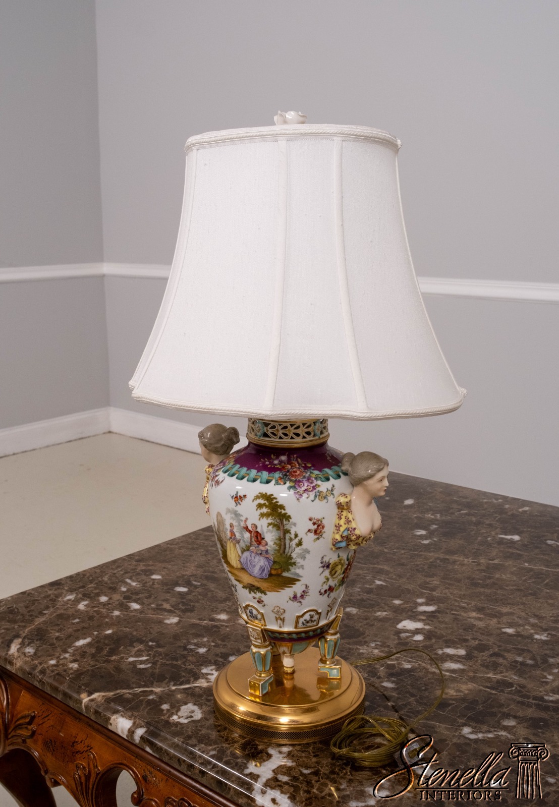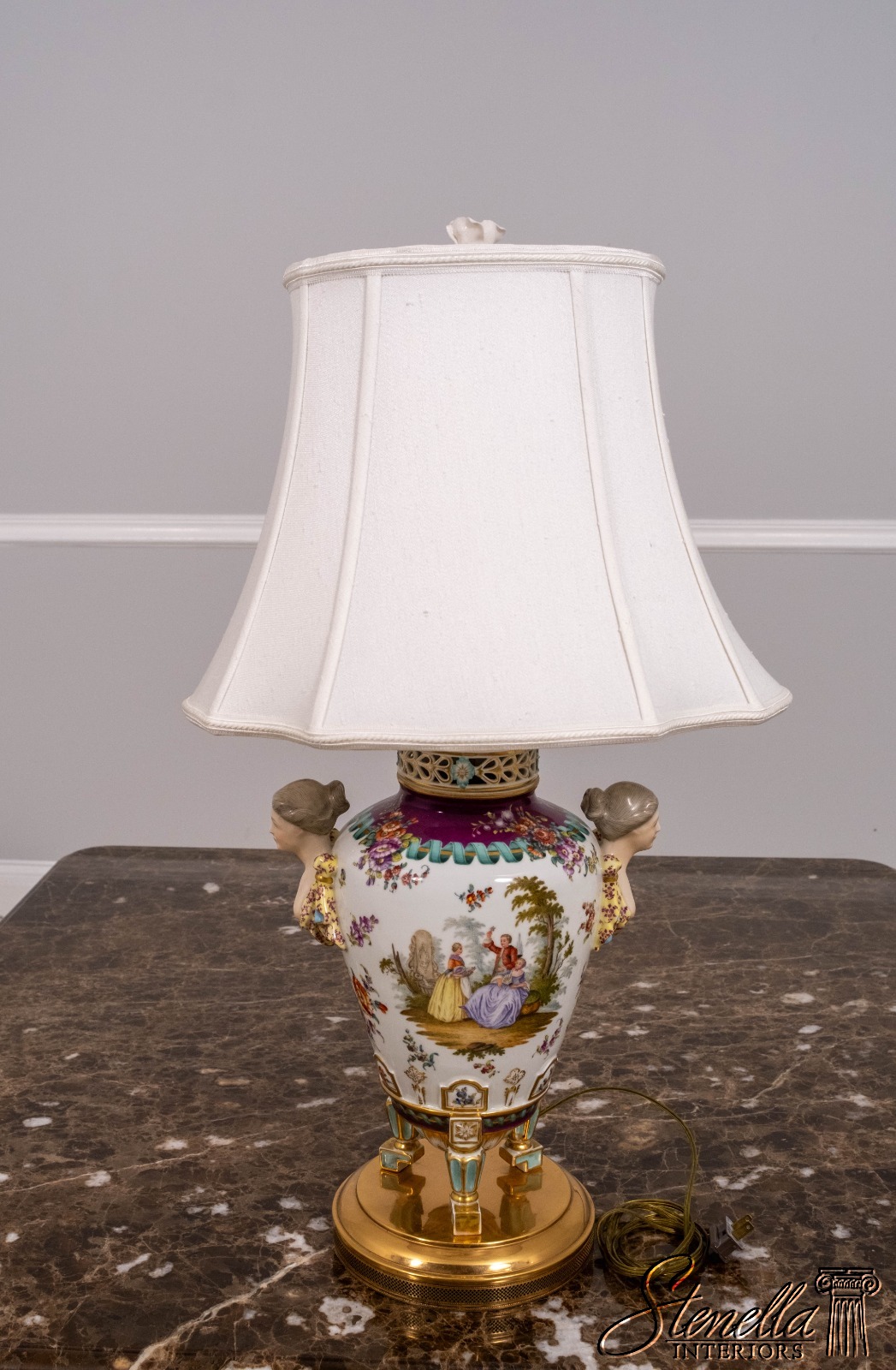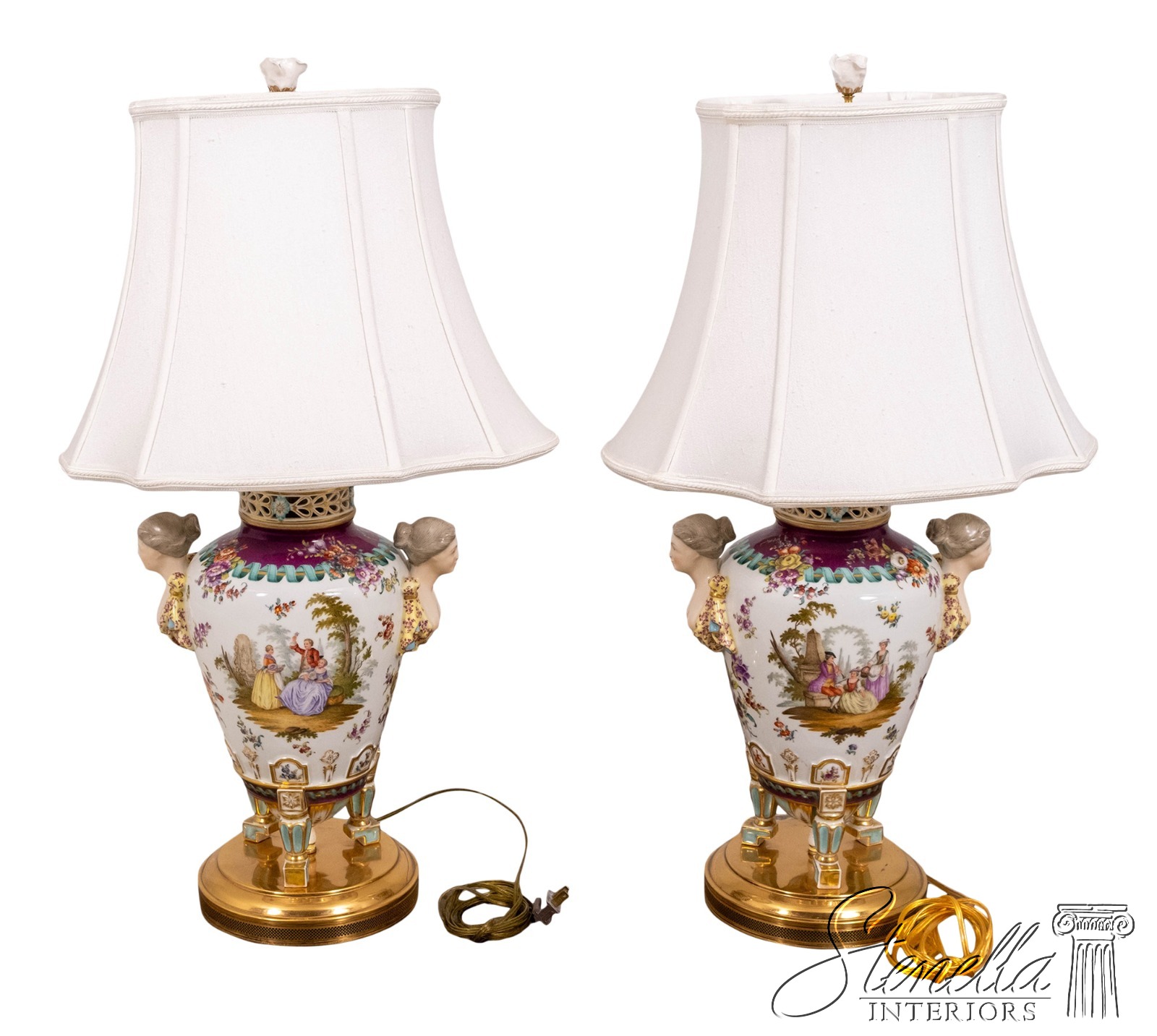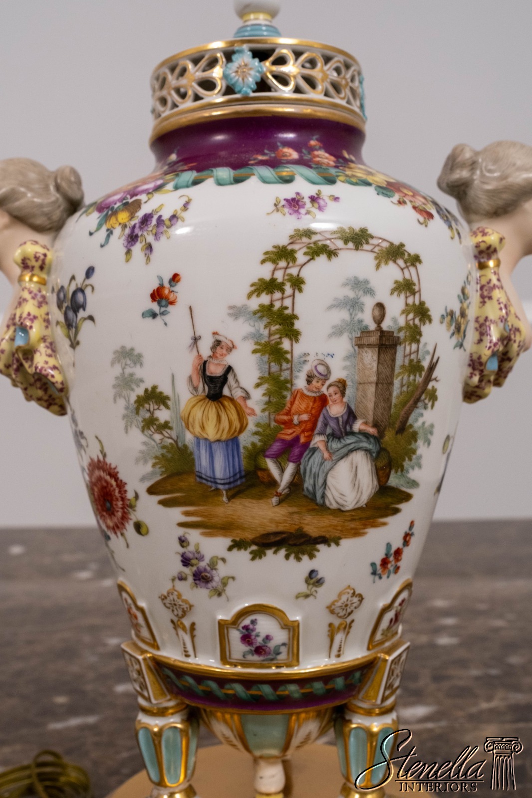 - LF71303: Pair Of DRESDEN Style Urn-Shaped Hand Gilt Porcelain Table Lamps