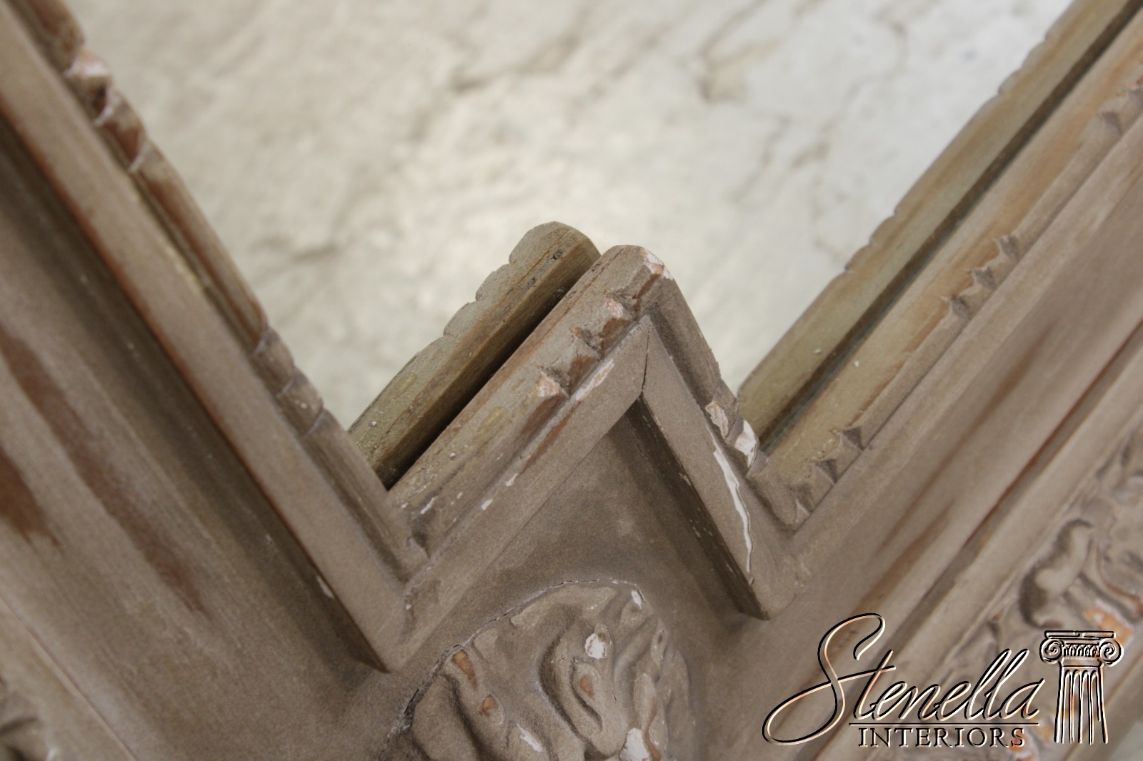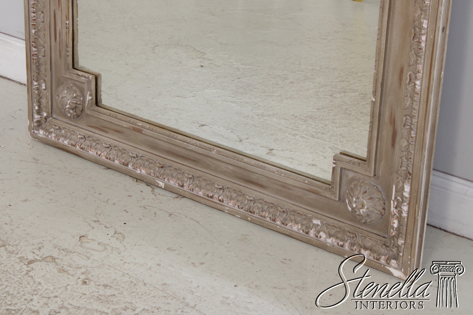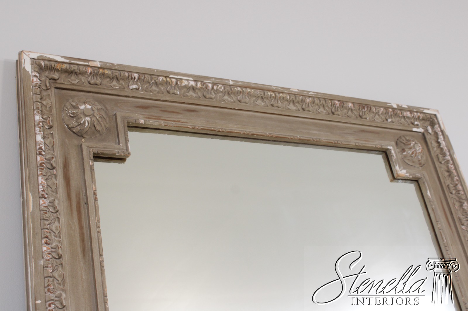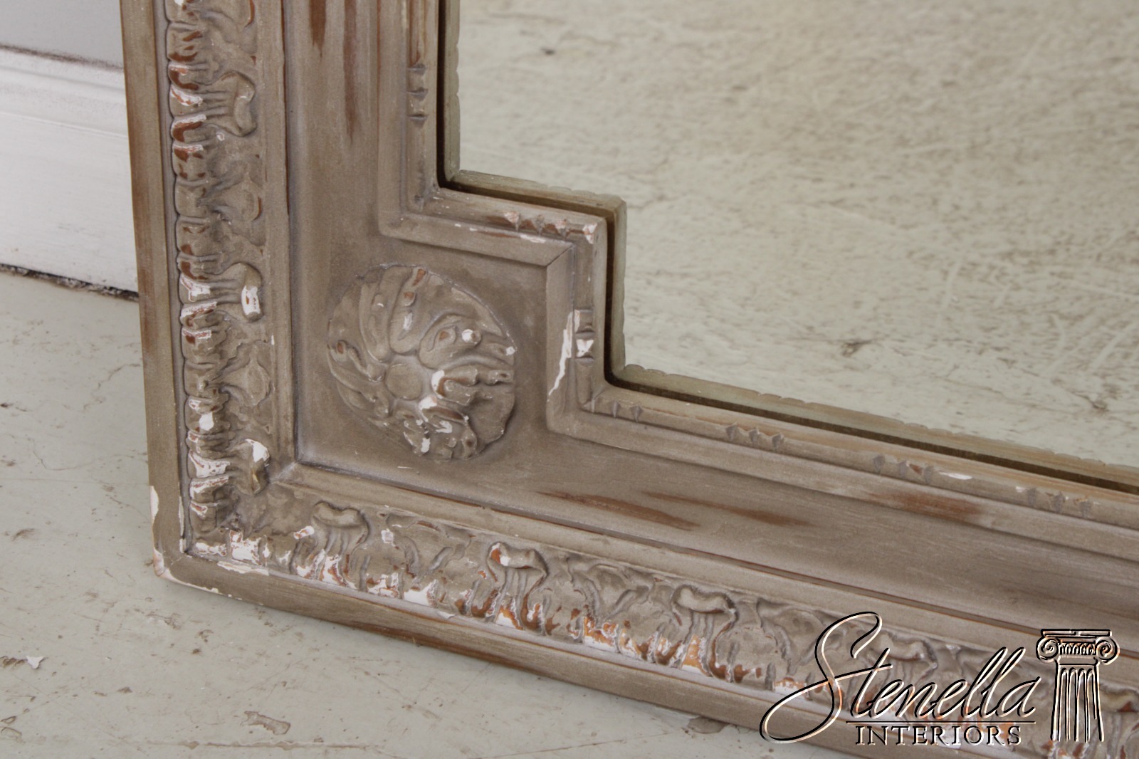 Details: Fine Carved Details Quality Construction Looks & Shows Like An Antique Mirror Large Impressive Mirror Distressed Painted Finish Distressed Finish French Style Offered @ Fraction Original Retail Cost