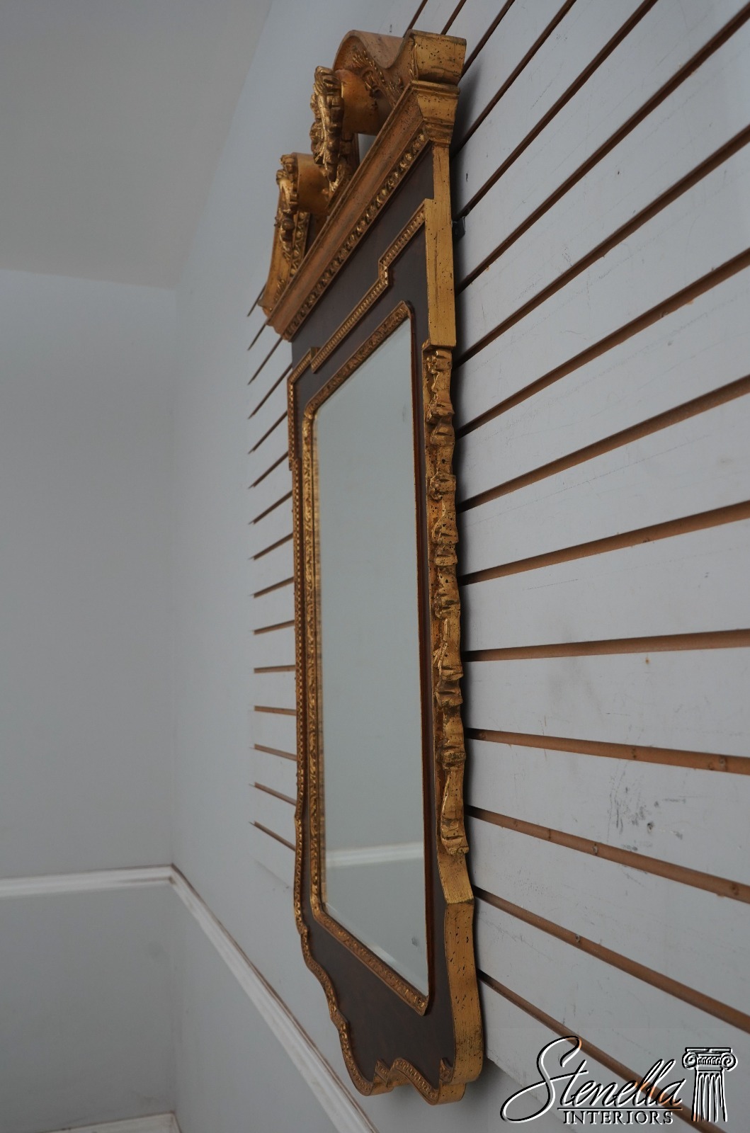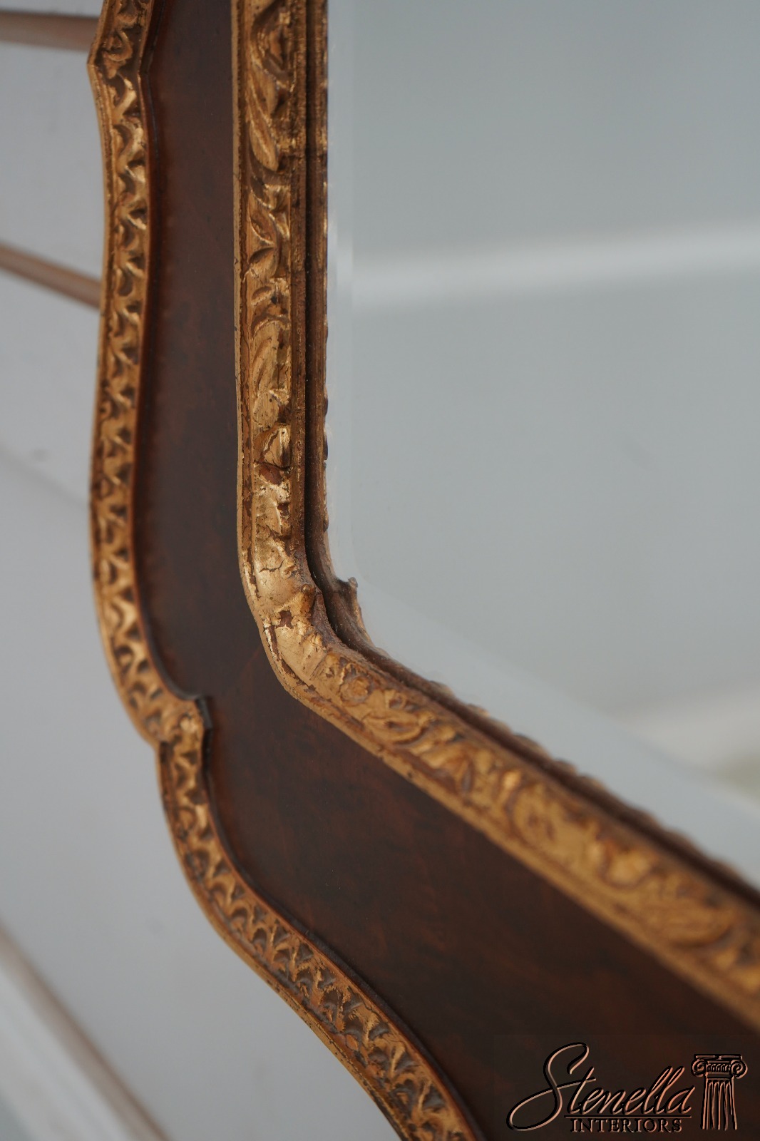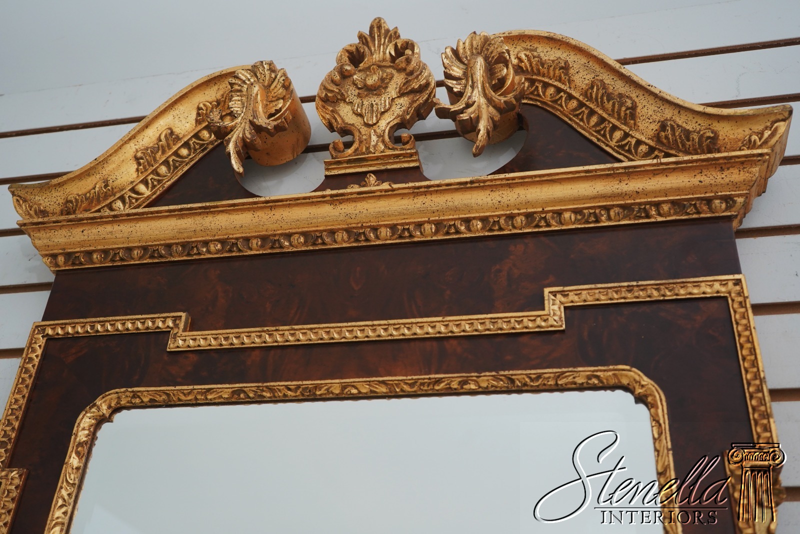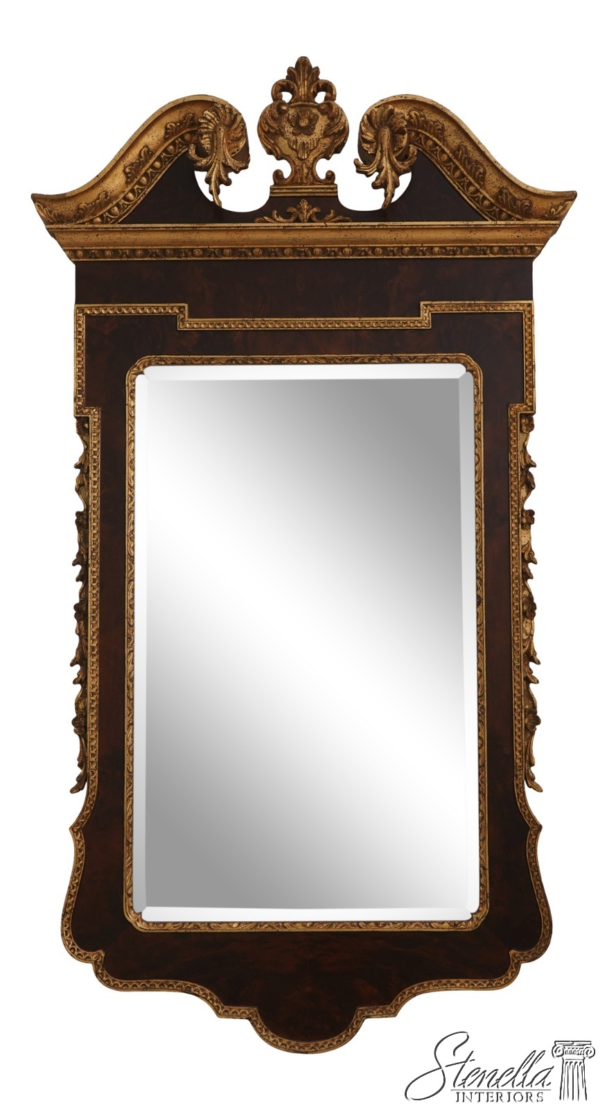 69135: Georgian Style Burl Walnut & Gold Mirror