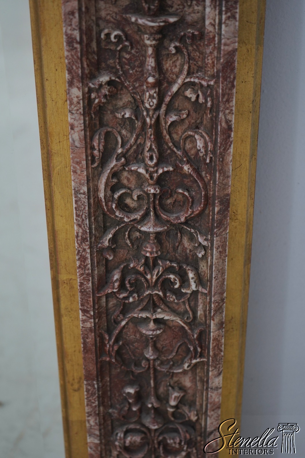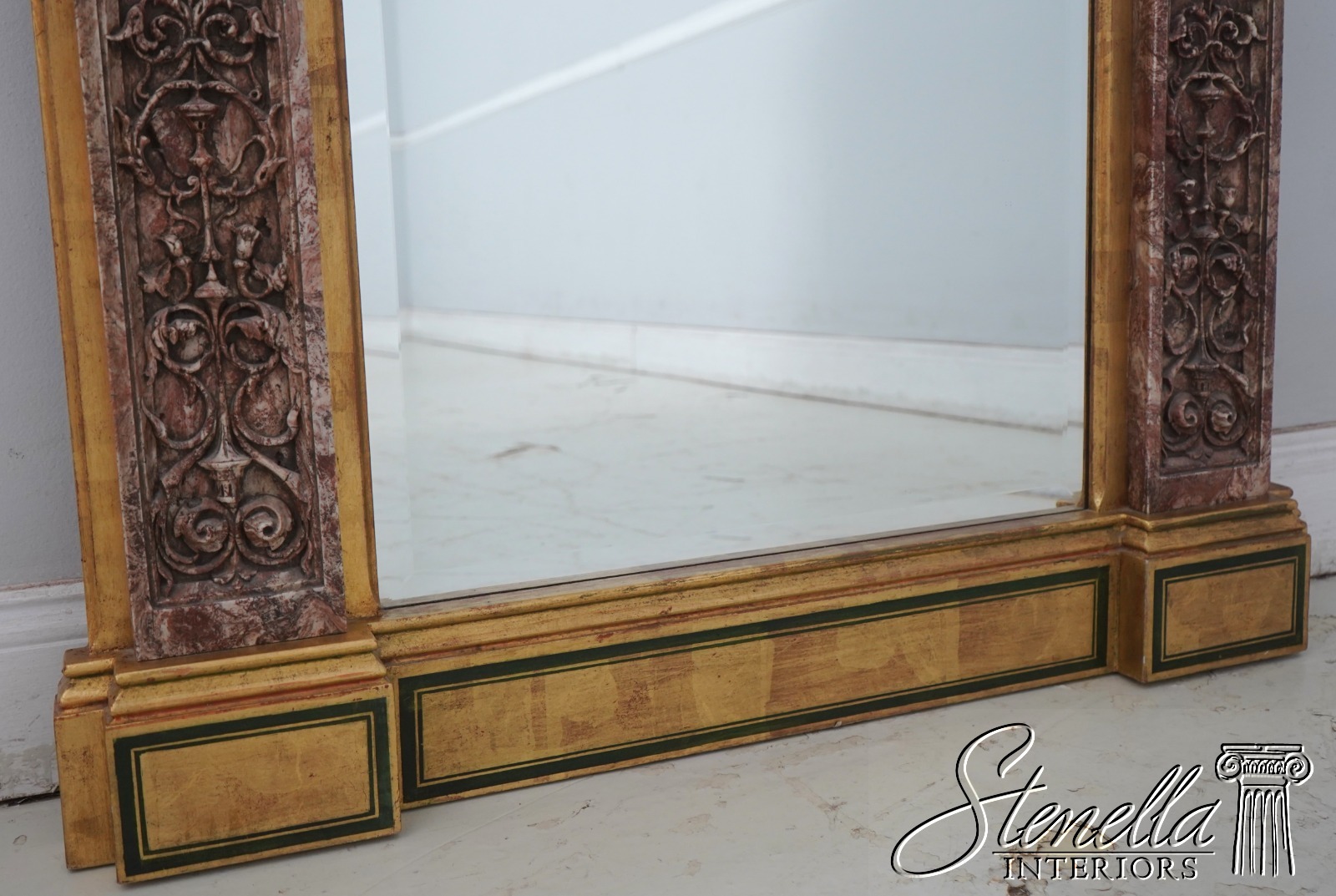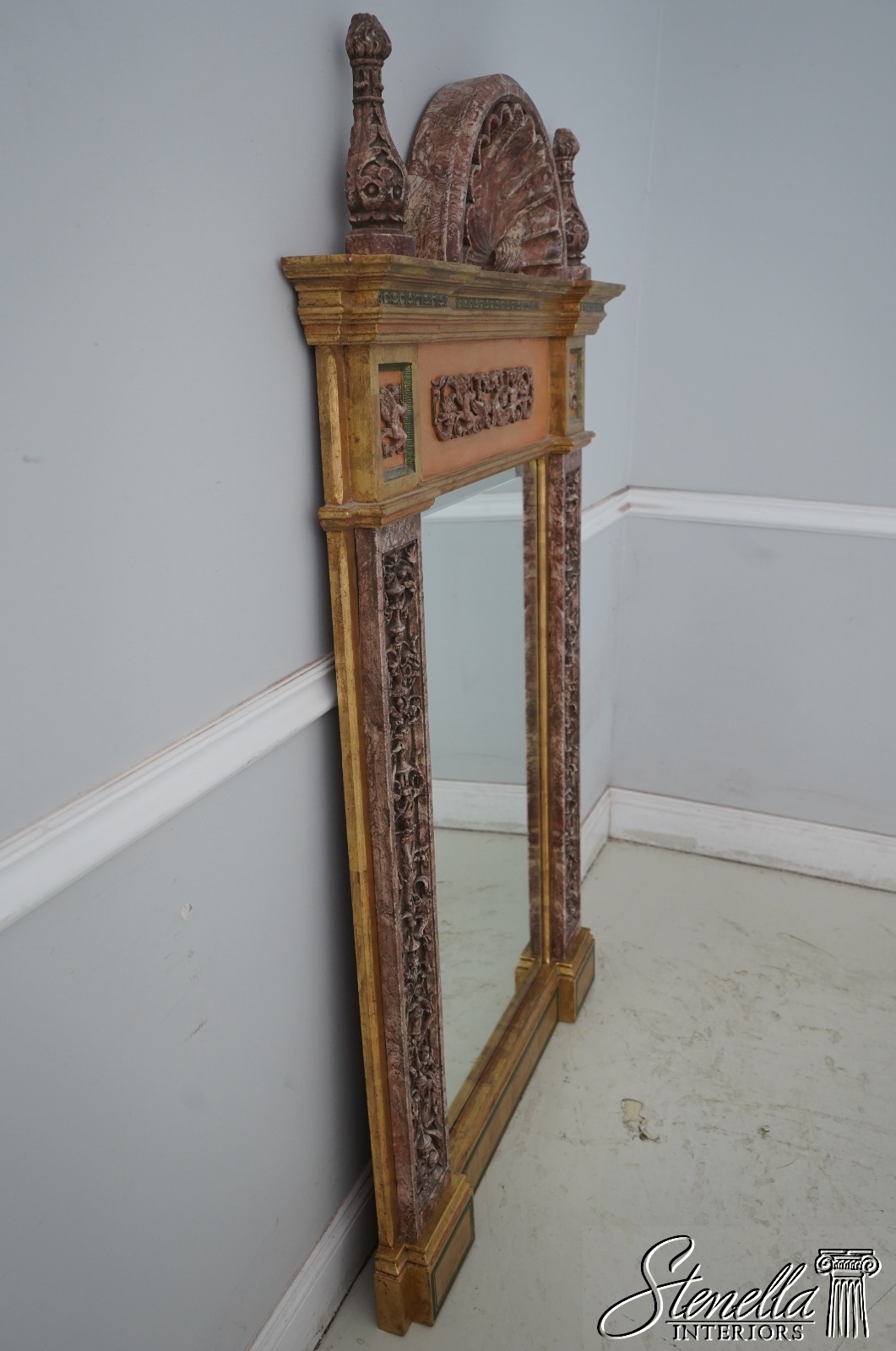 69429: Italian Marble Trimmed Gold Gilt Mirror