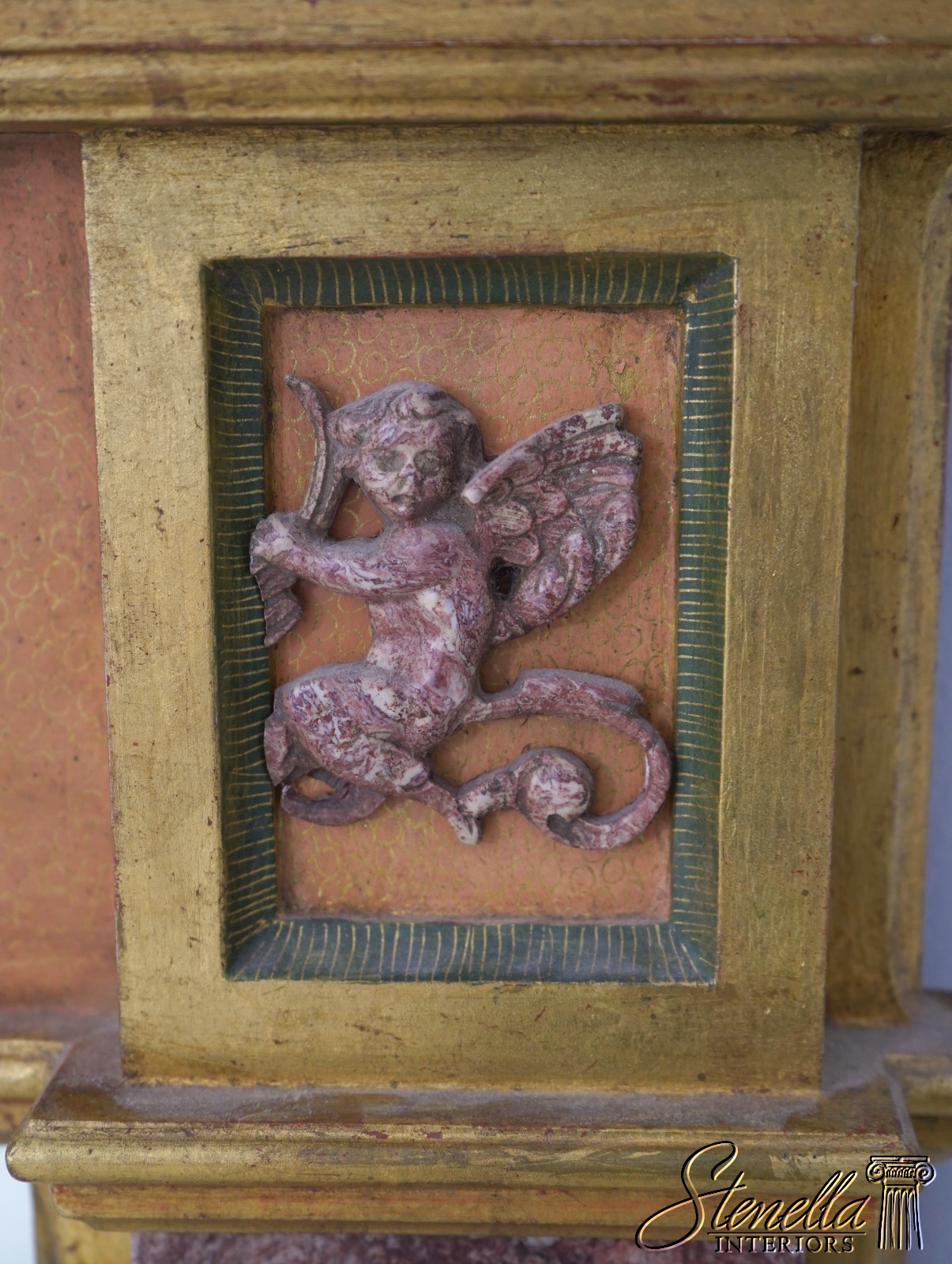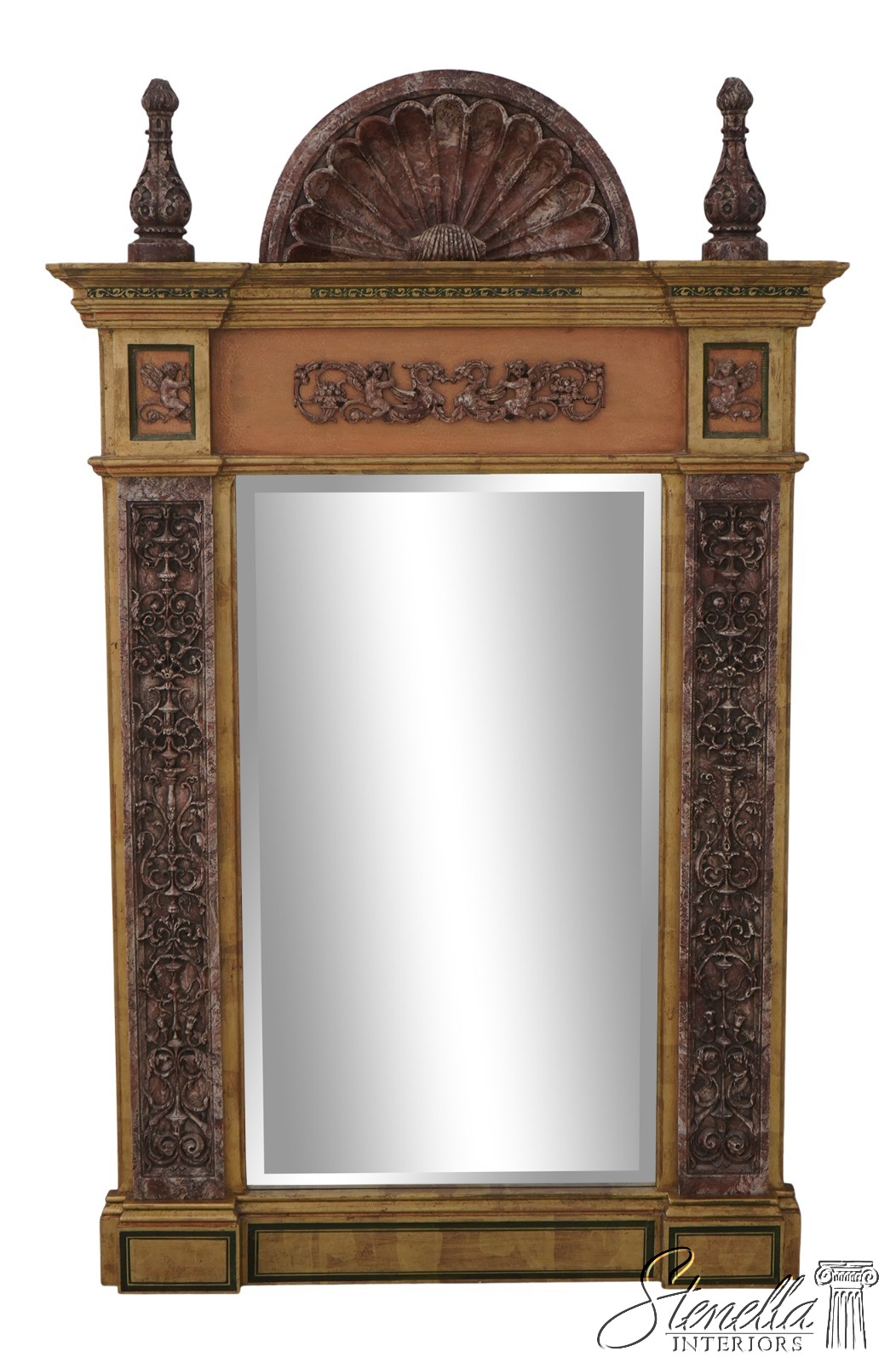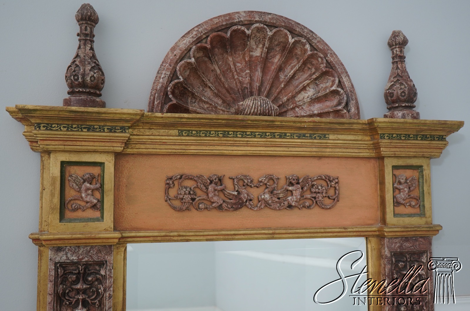 69429: Italian Marble Trimmed Gold Gilt Mirror