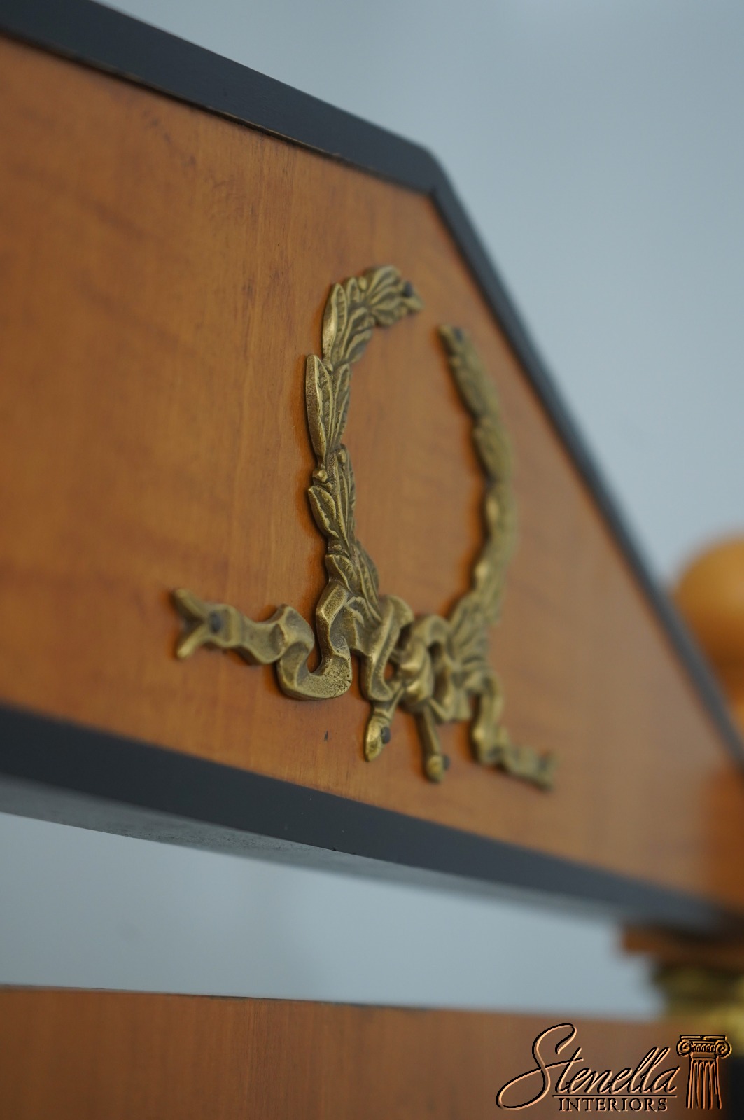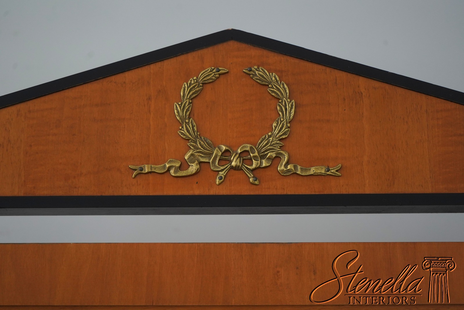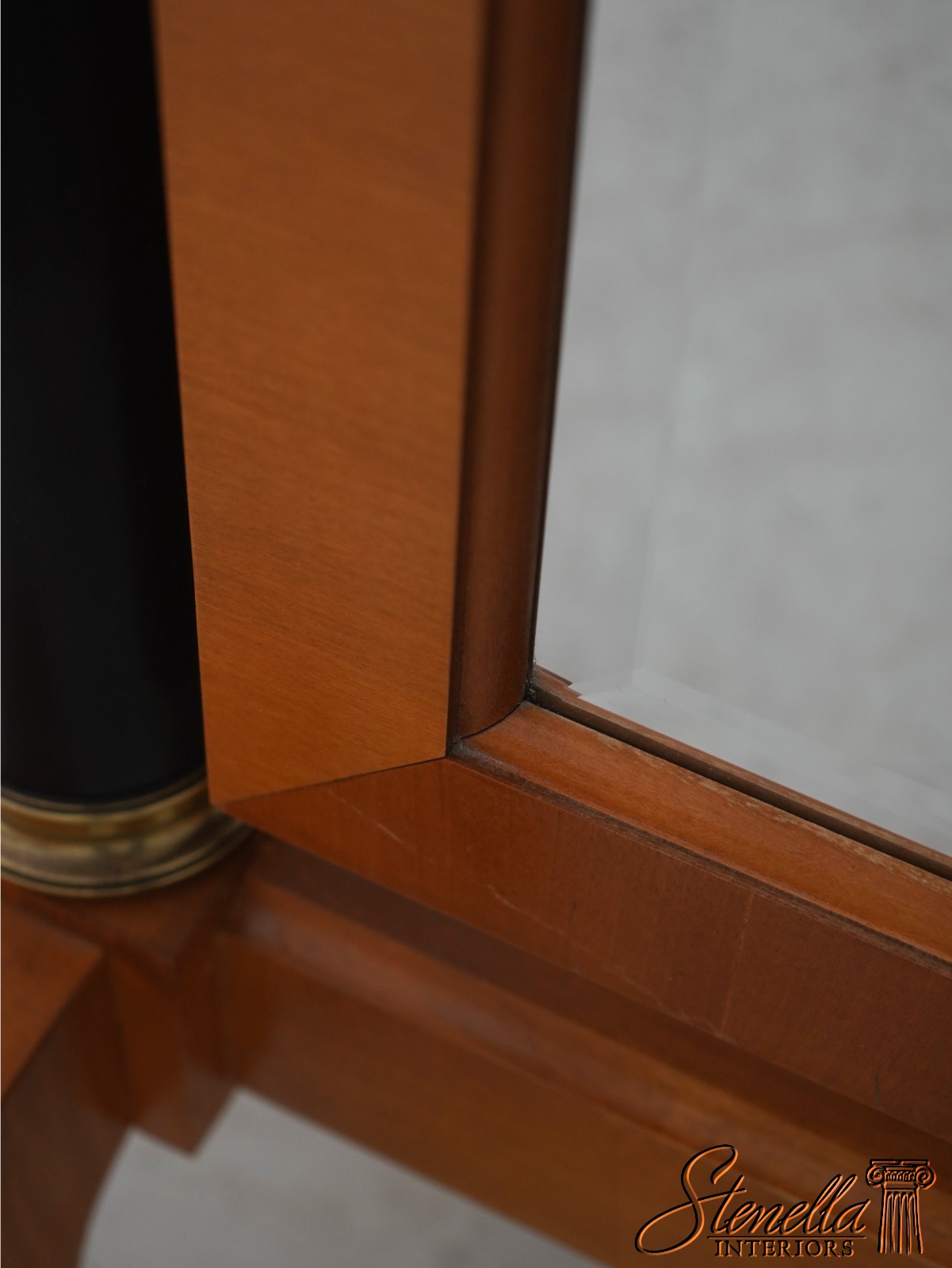 Details: Grand Classics Collection Satinwood w. Black Columns Beveled Glass Quality Construction Pediment Top Solid Brass Hardware & Casters Acorn/Pineapple Finials French Empire Style Tilt Adjustable Splayed Legs Un-Marked As To Manufacture Offered @ Fraction Original Retail Cost