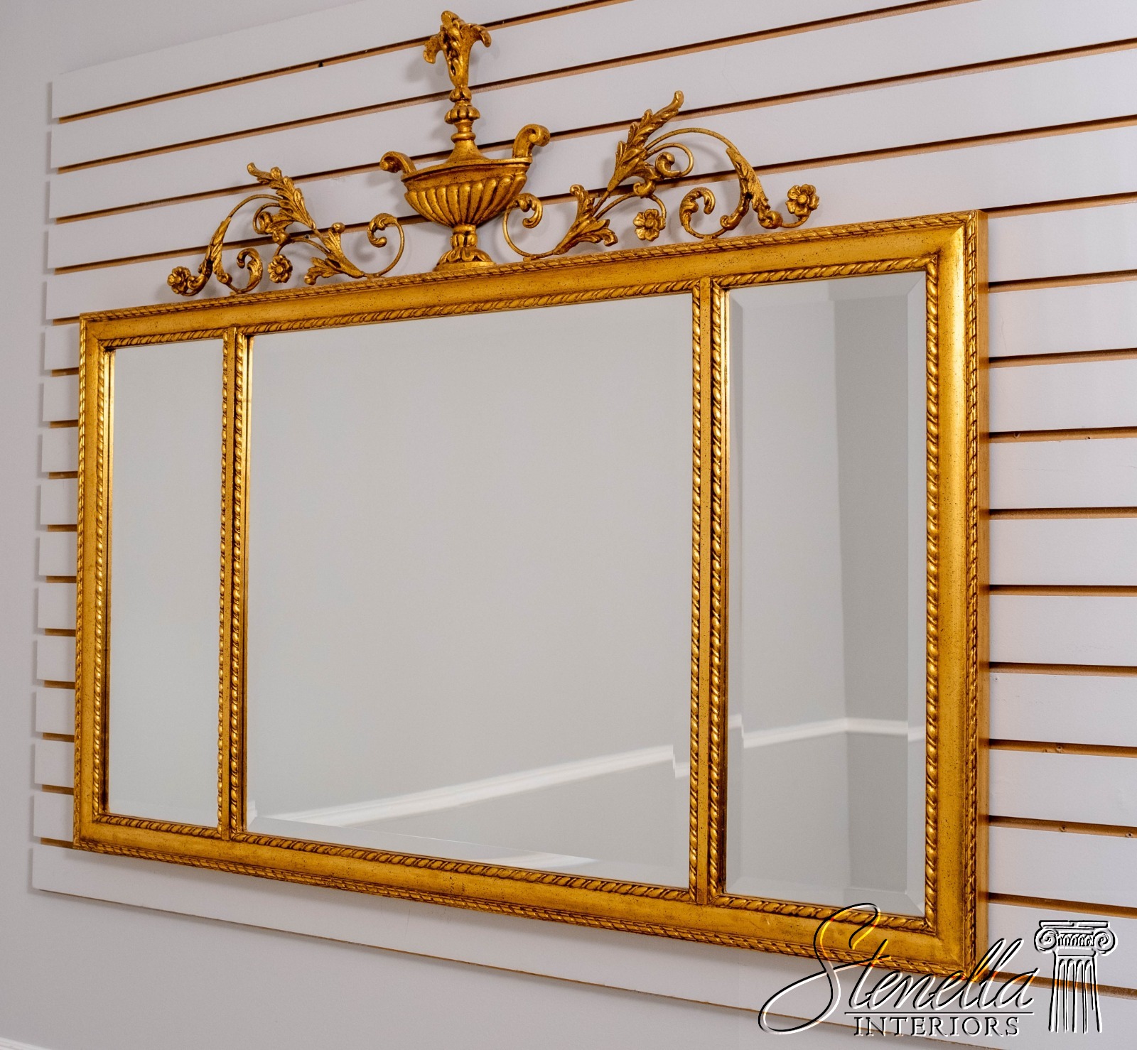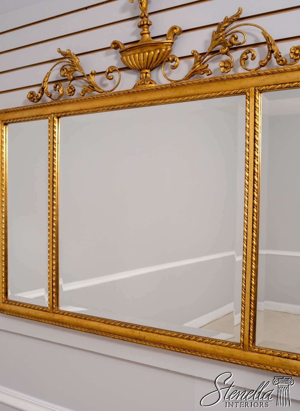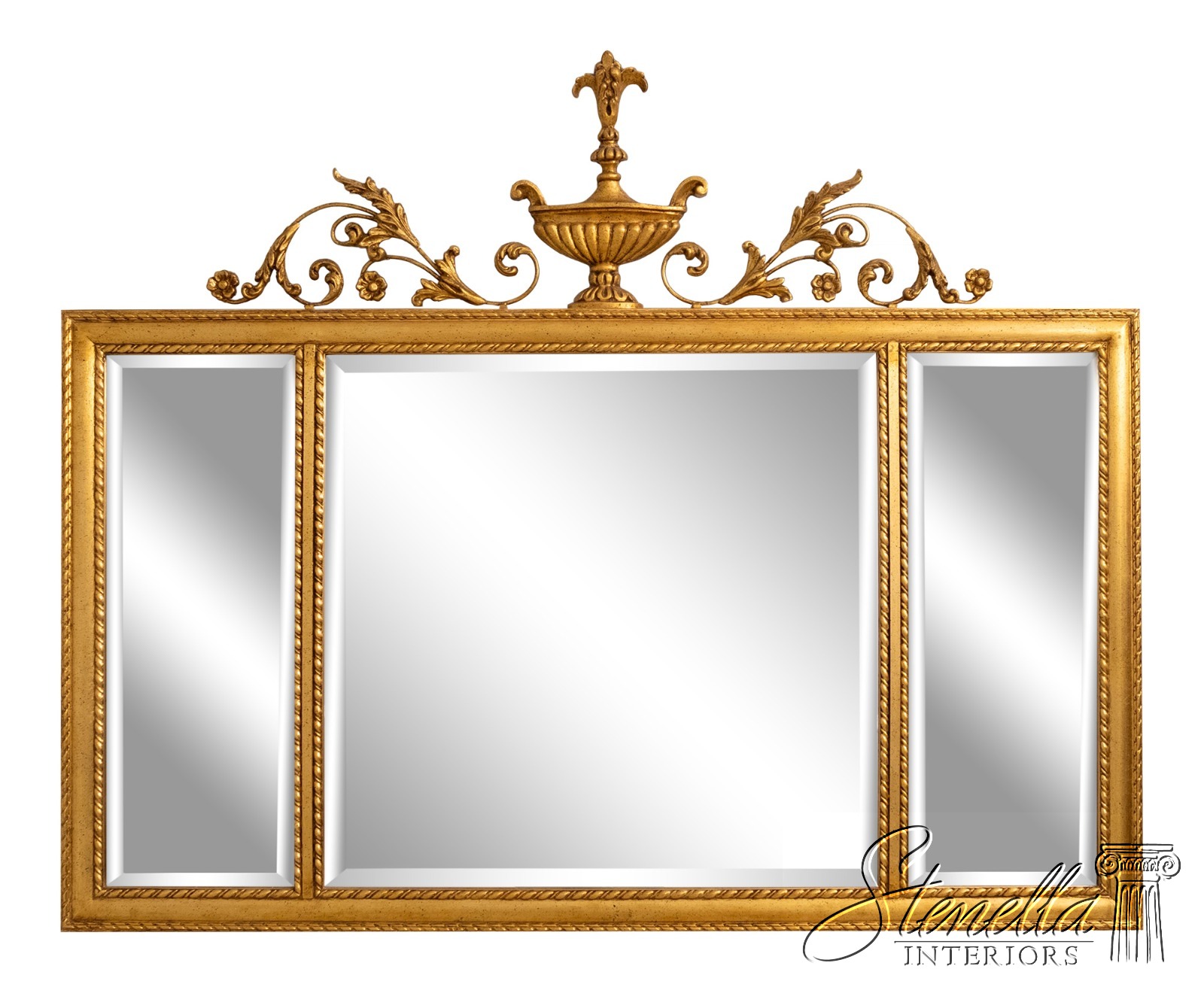 Details: Beveled Glass Federal Style Ornate Scrolled Top Nice Urn Top 3 Panel Mirror Traditional Style