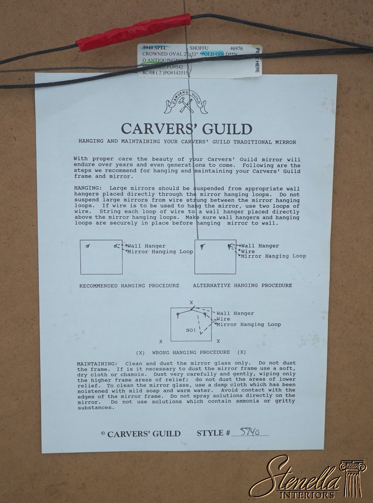 72418: CARVERS GUILD Oval Gold Gilt Wall Mirror