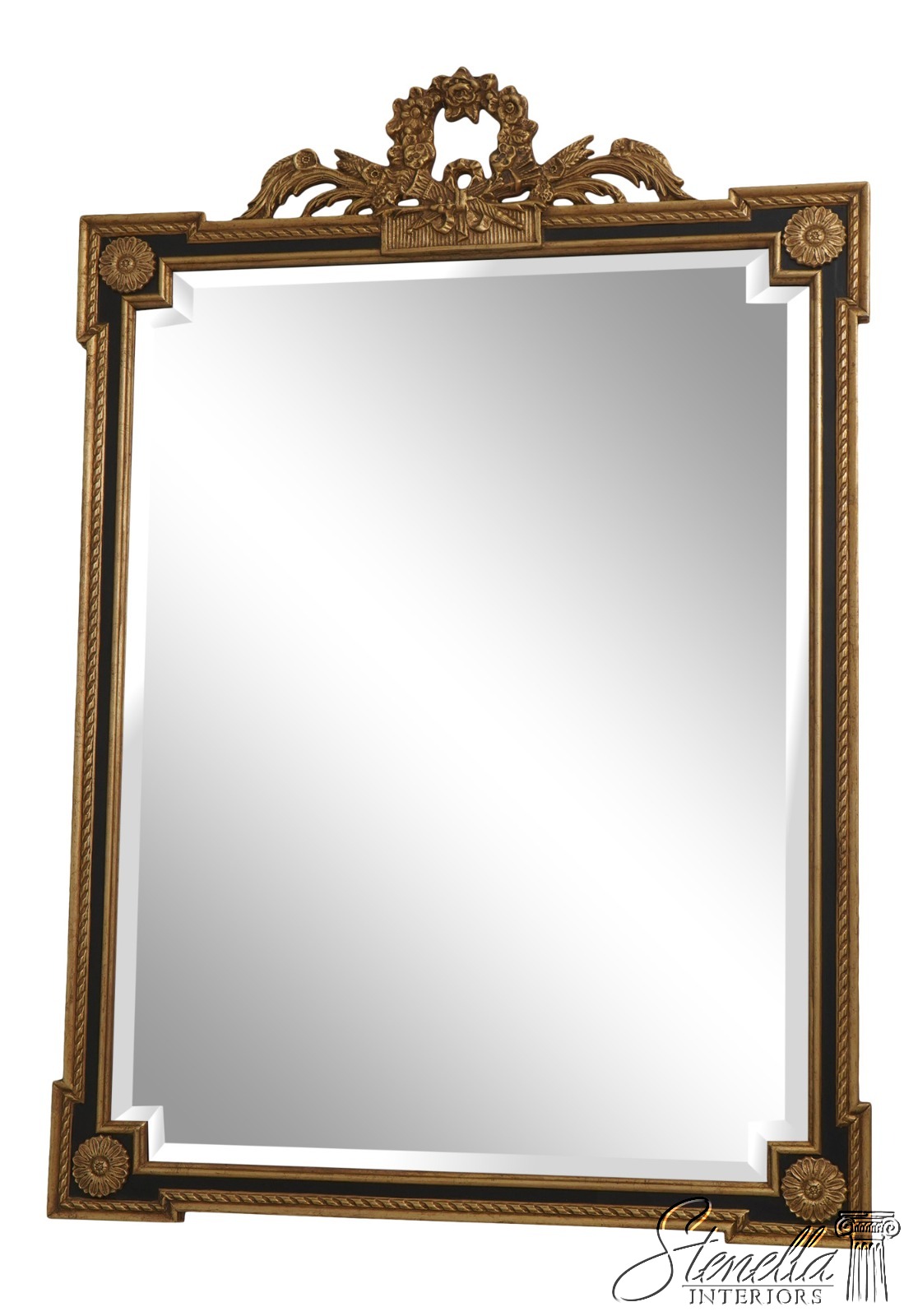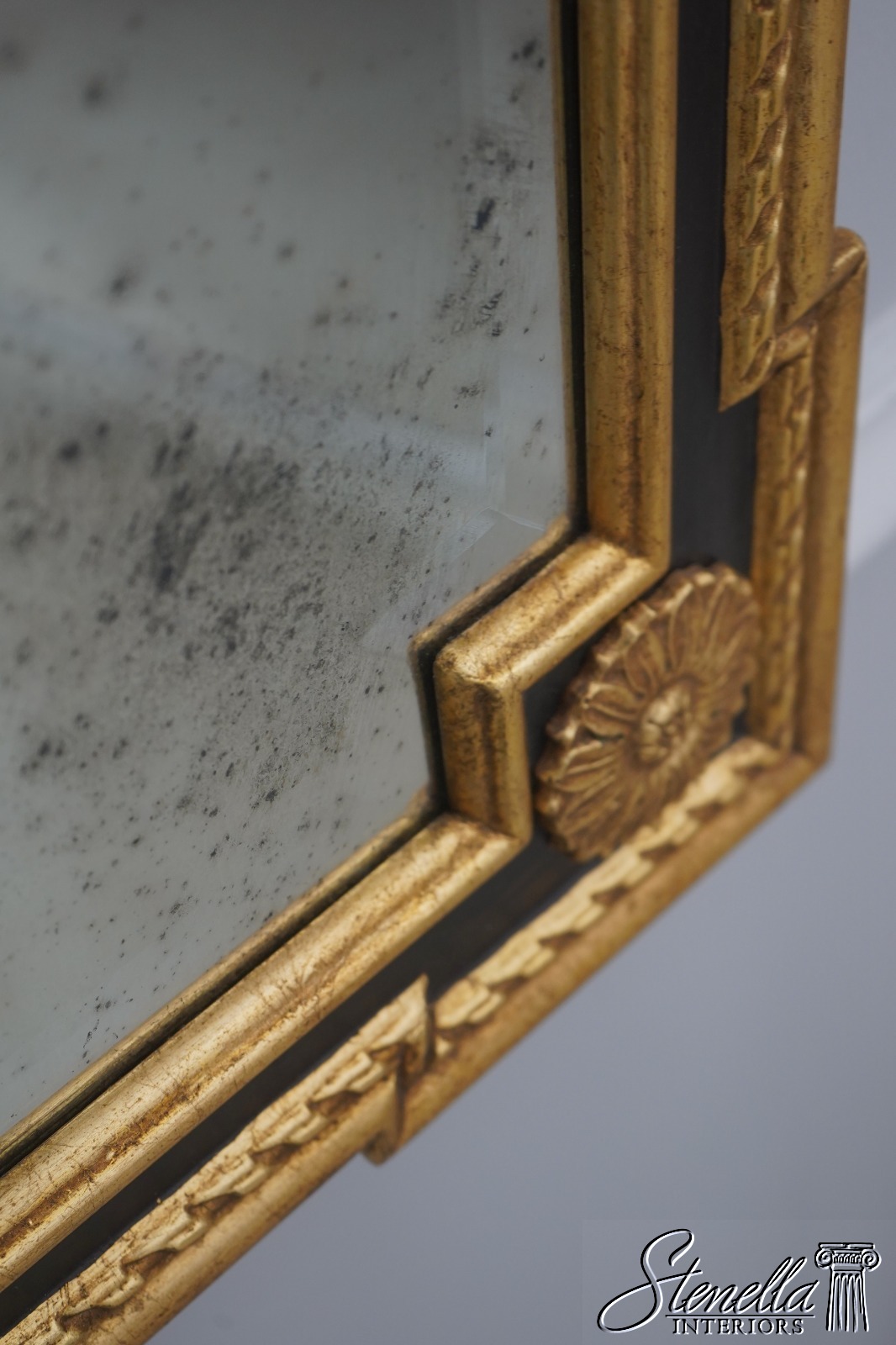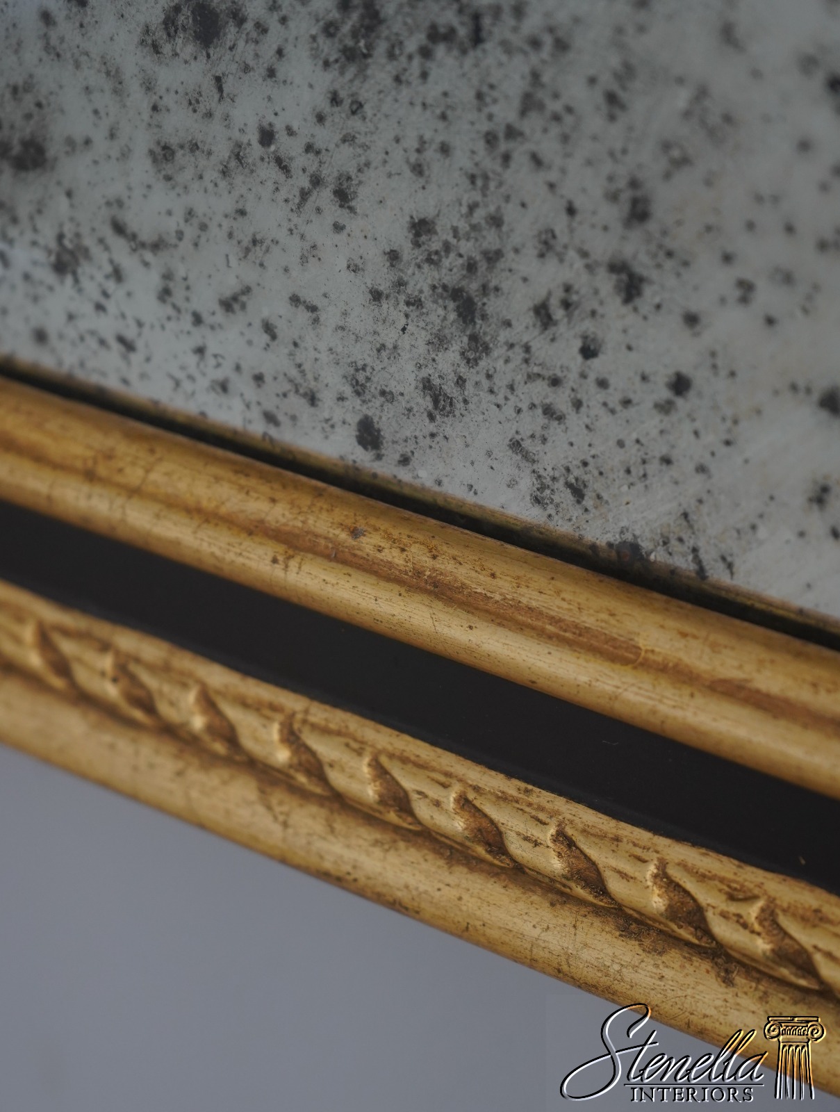 Details: 9D Gold w. Black Beveled Glass High Quality Construction Neoclassical Style Factory Distressed Mirror Glass Intentional Foxing To Glass Gold Gilt Frame Offered @ Fraction Original Retail Cost