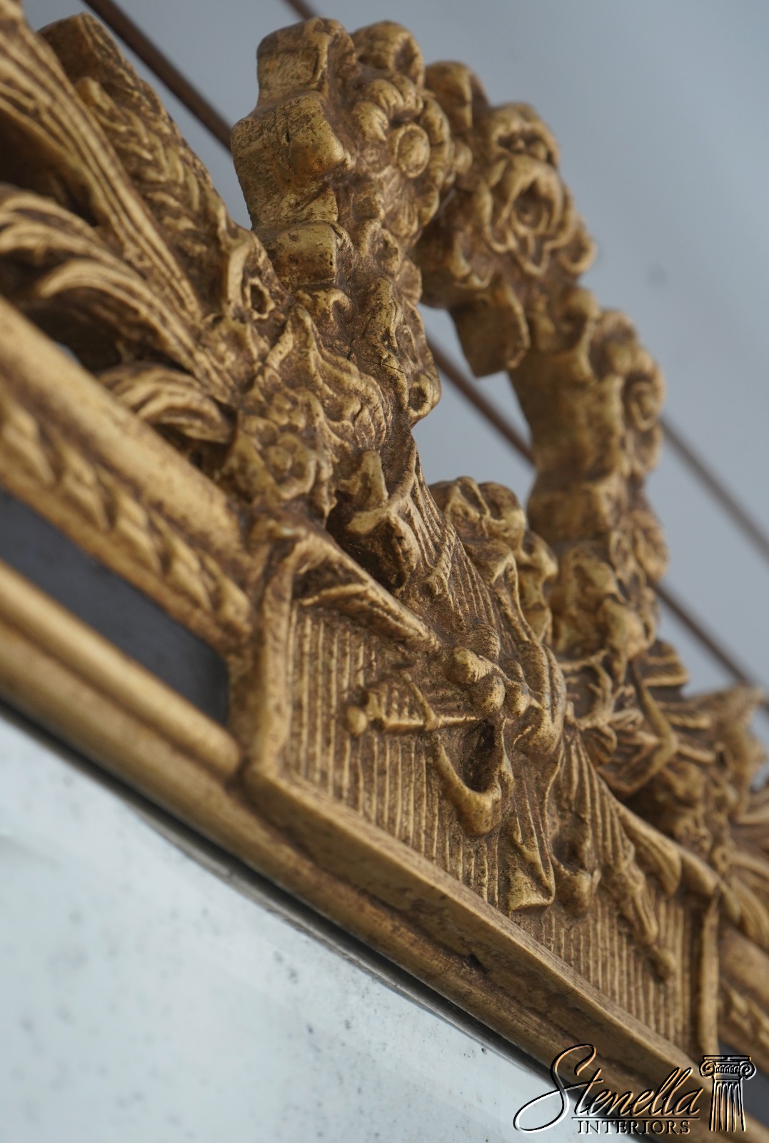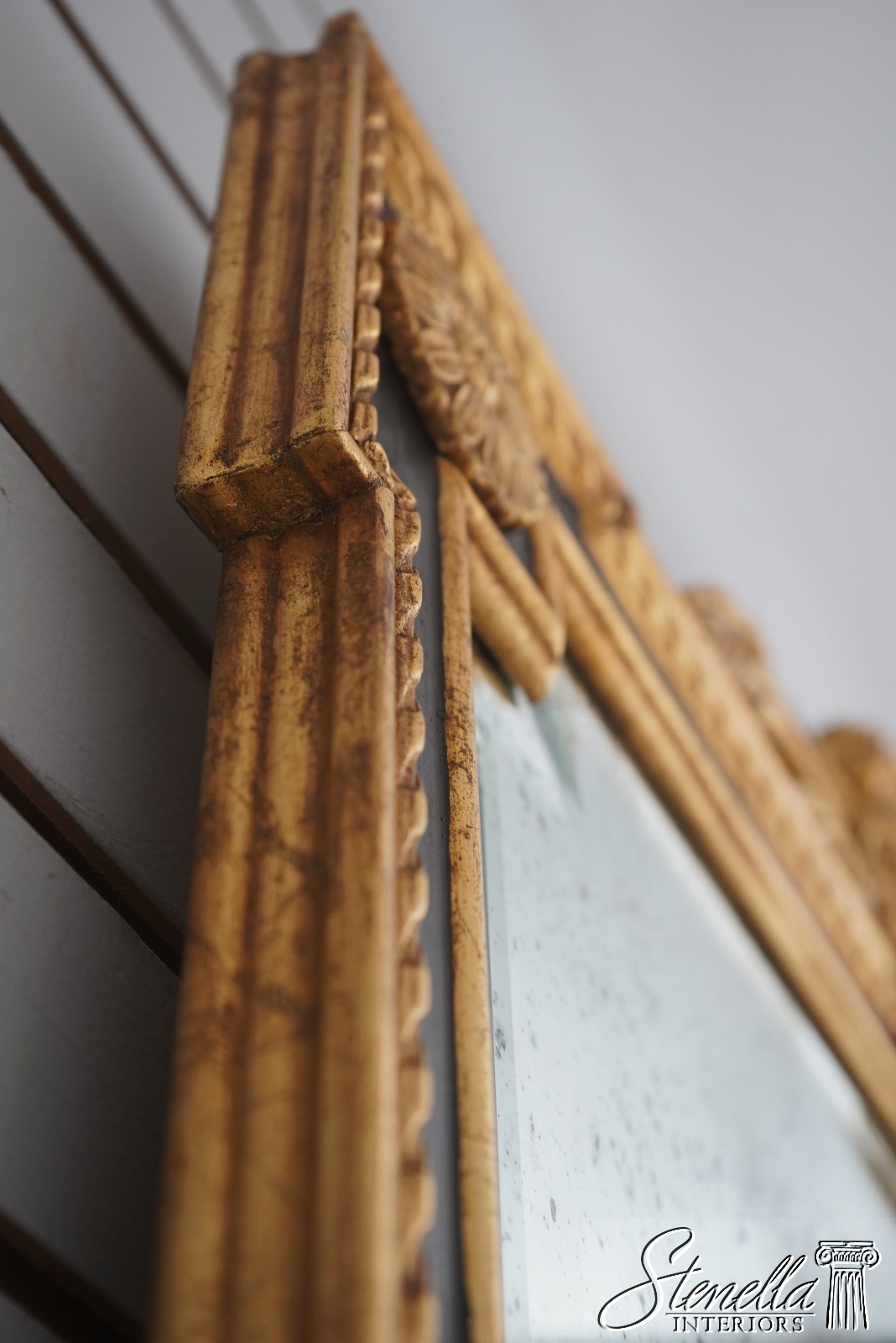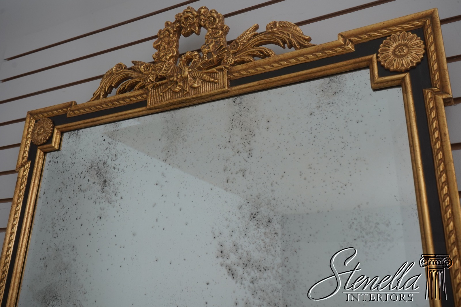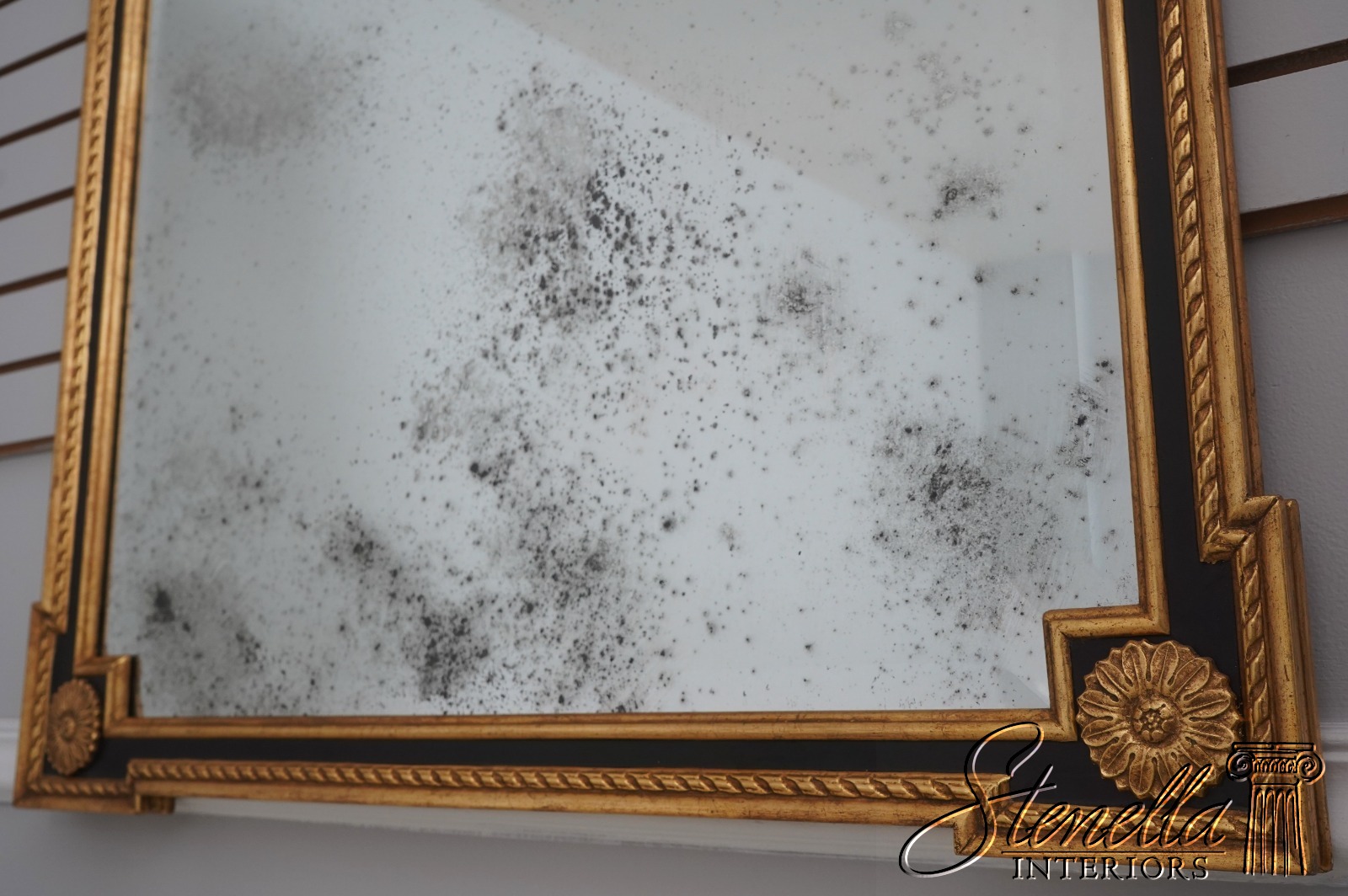 Details: 9D Gold w. Black Beveled Glass High Quality Construction Neoclassical Style Factory Distressed Mirror Glass Intentional Foxing To Glass Gold Gilt Frame Offered @ Fraction Original Retail Cost