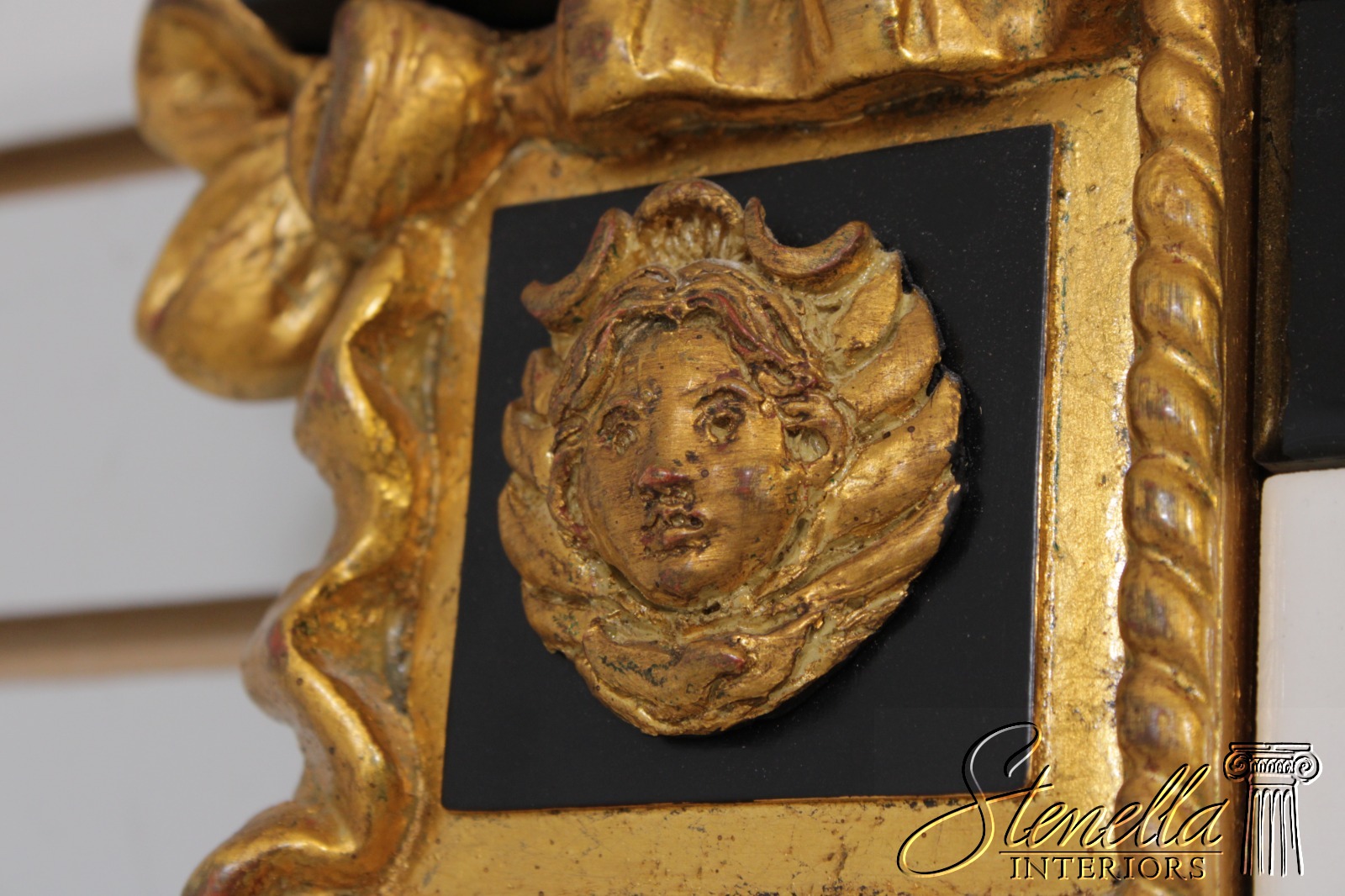 Details: Beveled Glass Nice Ribbon Carved Top Fine Carved Details High Quality Construction Hand Carved Crest In The Manner Of Mackenzie Childs Sculpted French Bow Un-Marked As To Manufacture Antique Gold Leaf Angel Heads In Corners Un-Marked As To Manufacture Offered @ Fraction Original Retail Cost