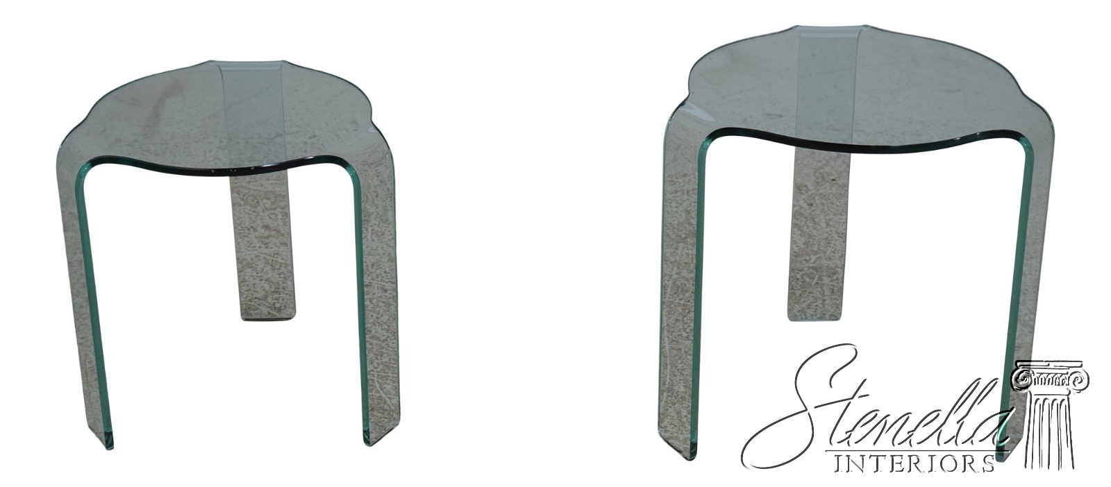 F67858: Pair FIAM Italian Bent Glass Modern Design End Tables