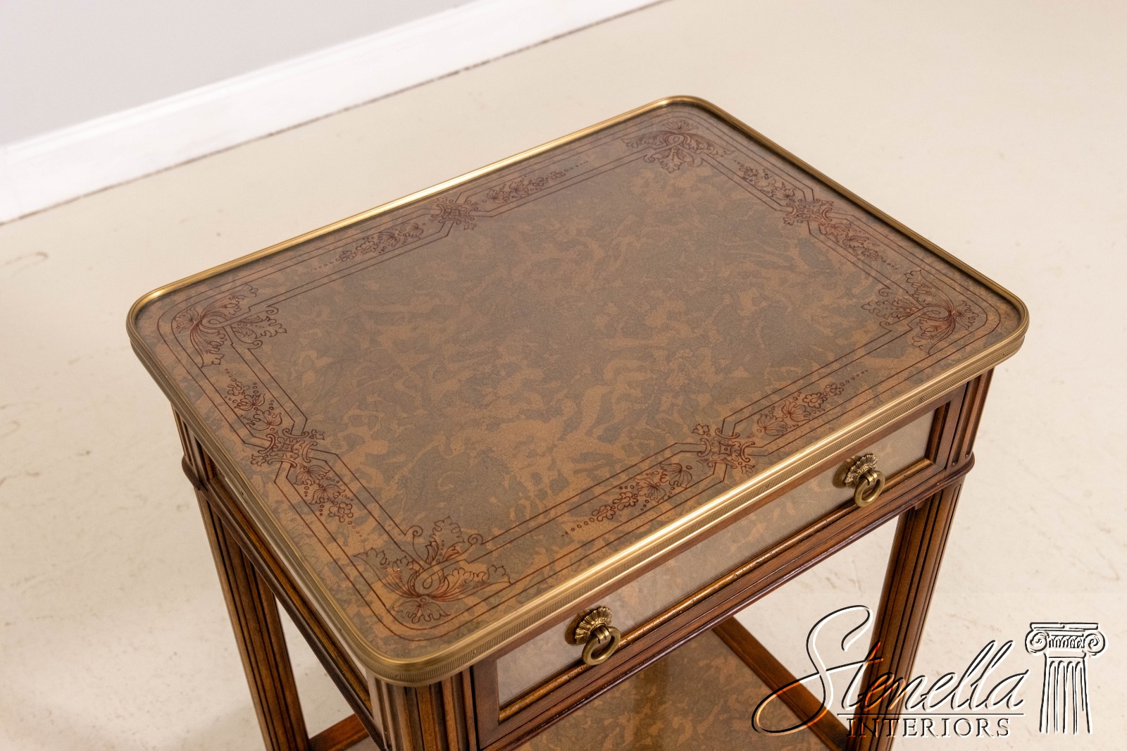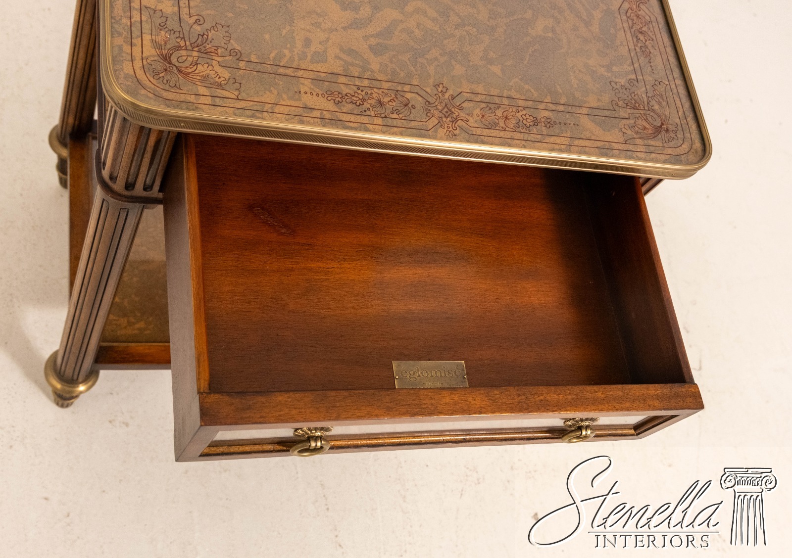 THEODORE ALEXANDER Eglomise Hollywood Regency Nightstand