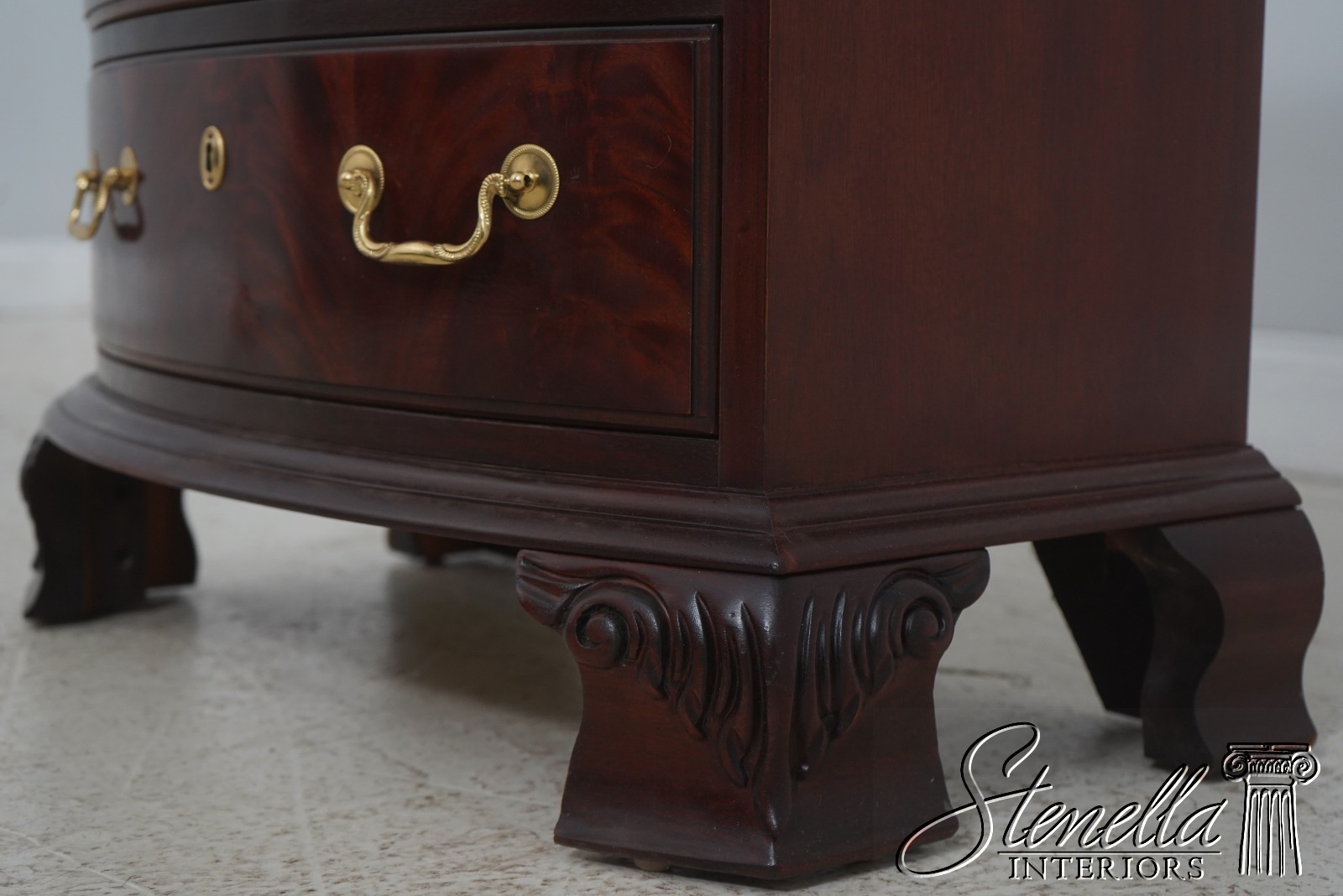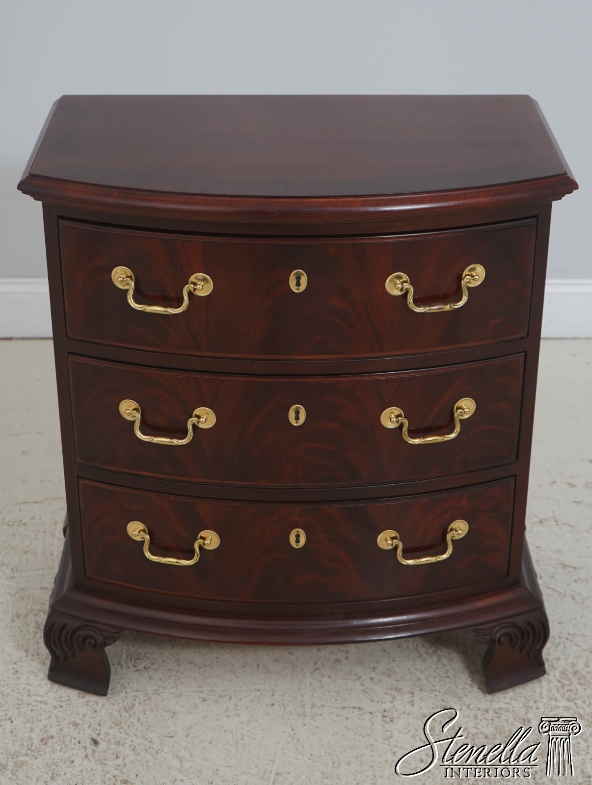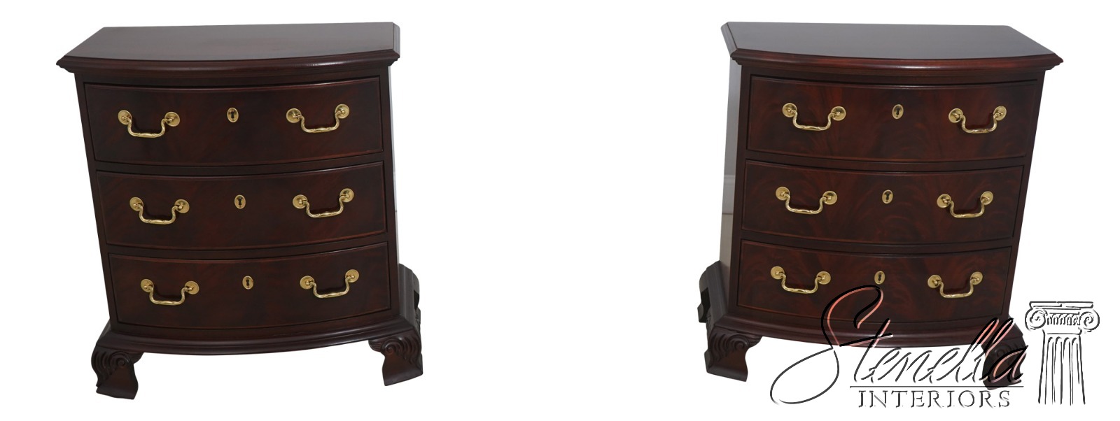 71793: Pair THOMASVILLE 3 Drawer Mahogany Bowfront Nightstands