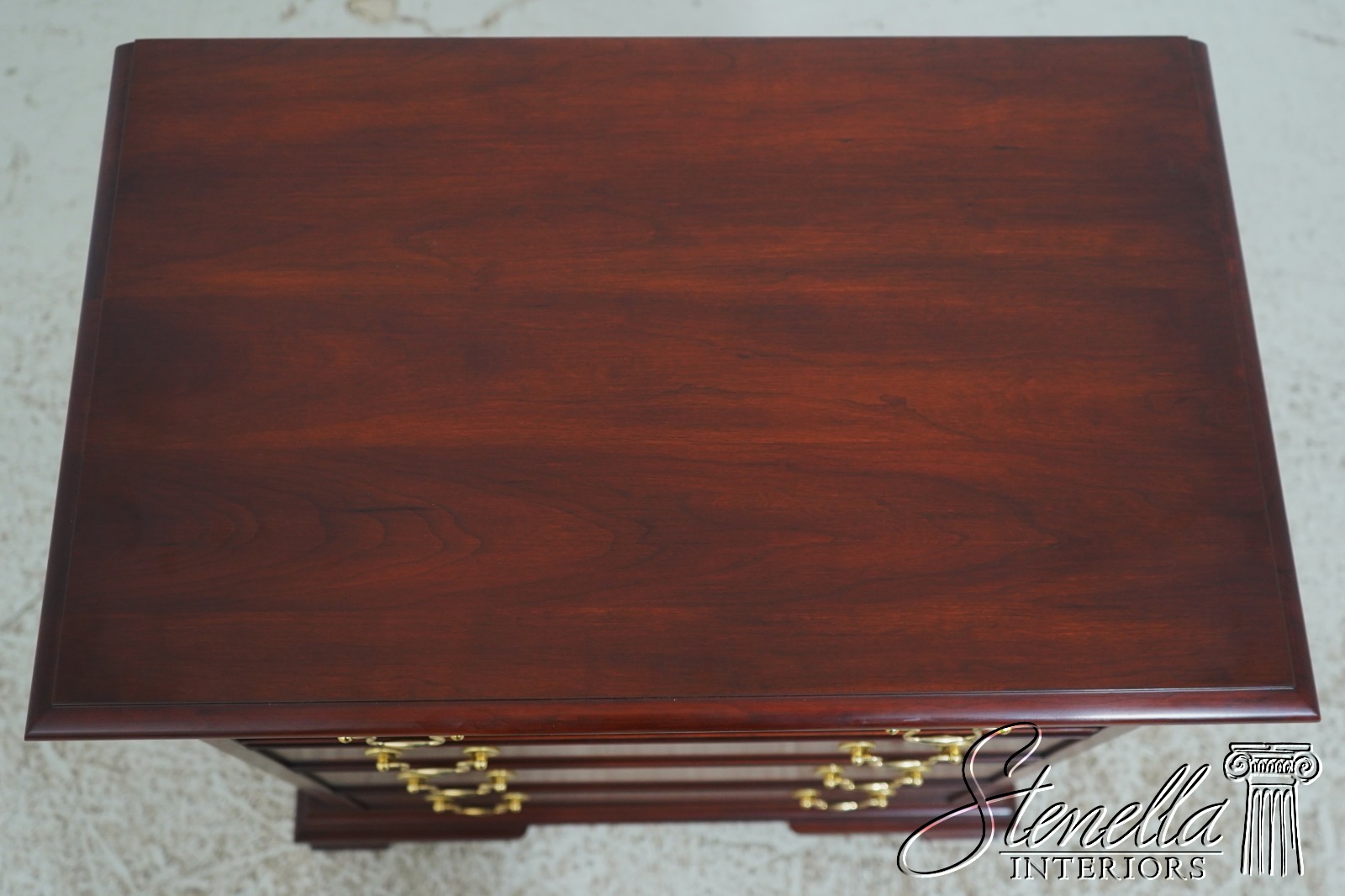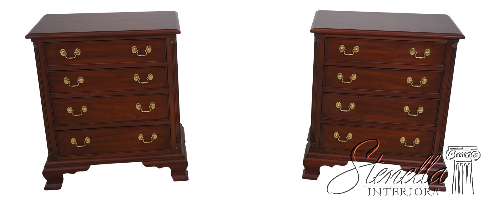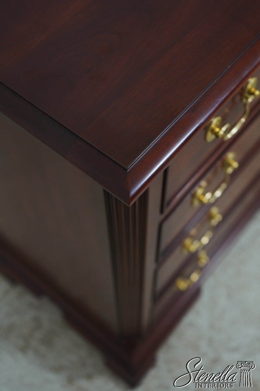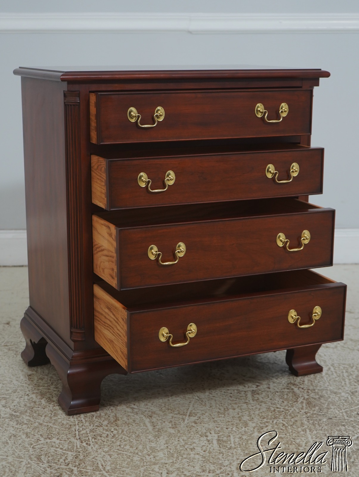 Details: Model 116 Finish no.24 Cherry Bracket Feet Dovetailed Drawer Construction Fine Carved Details High Quality Construction Quarter Column Sides Chippendale Style 4 Drawers Solid Brass Hardaware Fluted Columns Offered @ Fraction Original Retail Cost