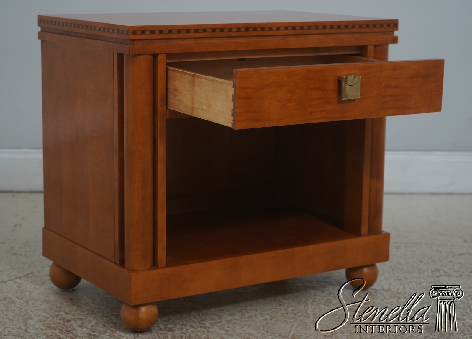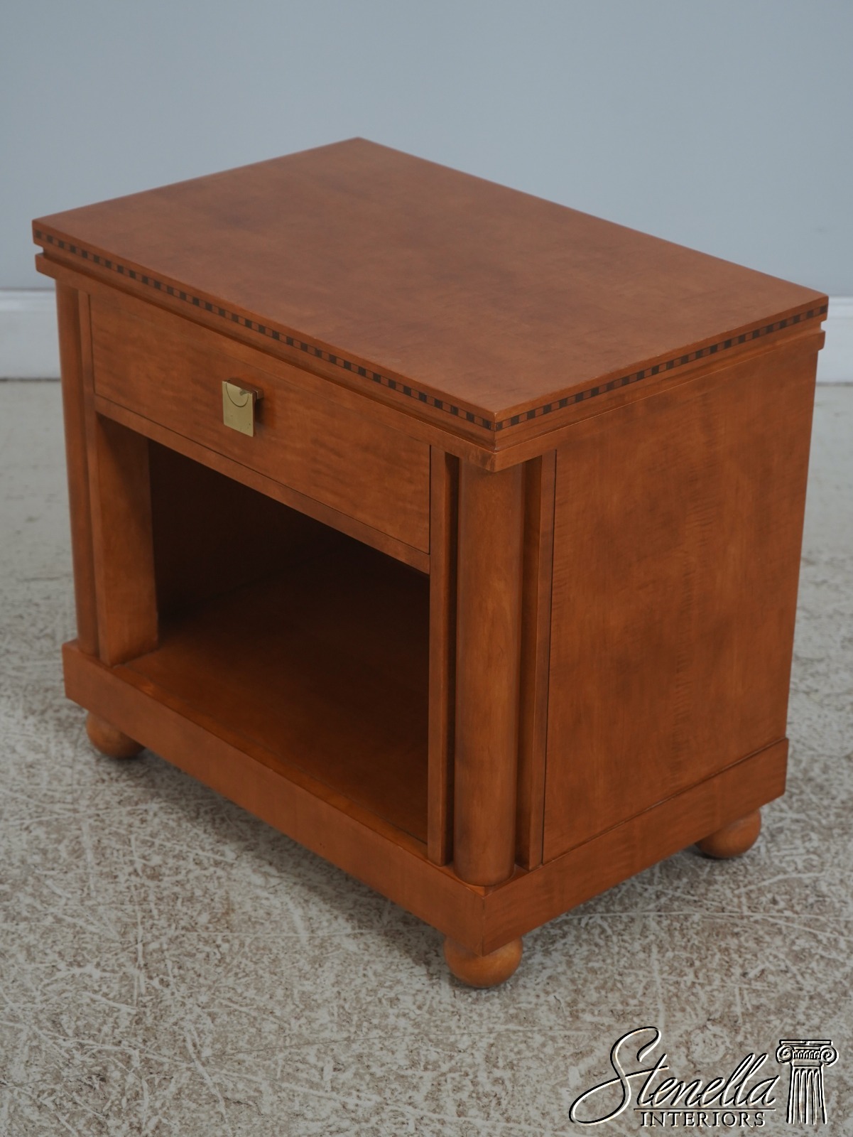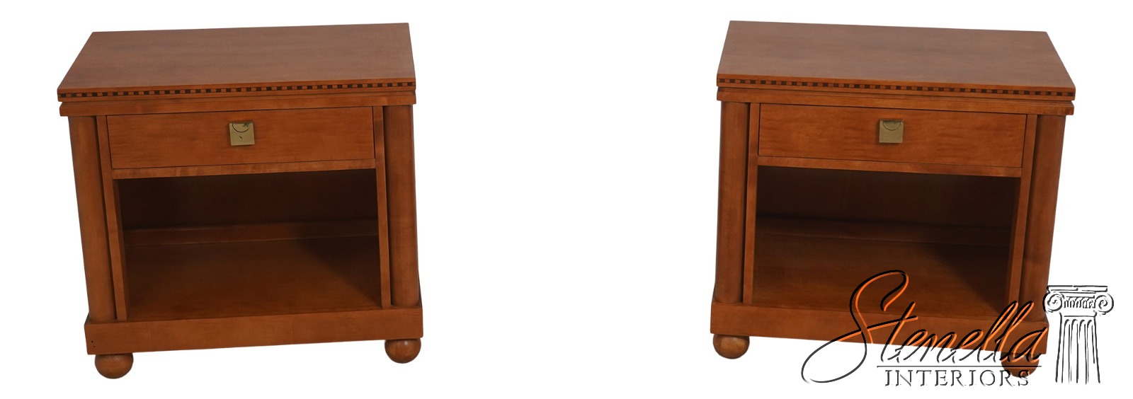 72457: Pair HICKORY White 1 Drawer Tiger Maple Inlaid Nightstands