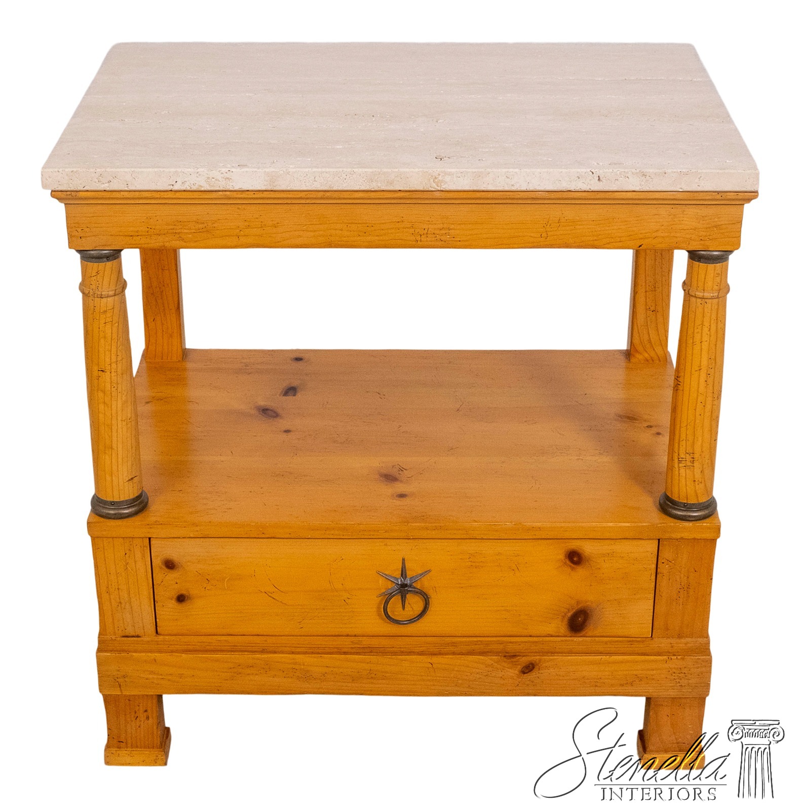 L69896: BAKER Milling Road Tavertine Top Pine Nightstand