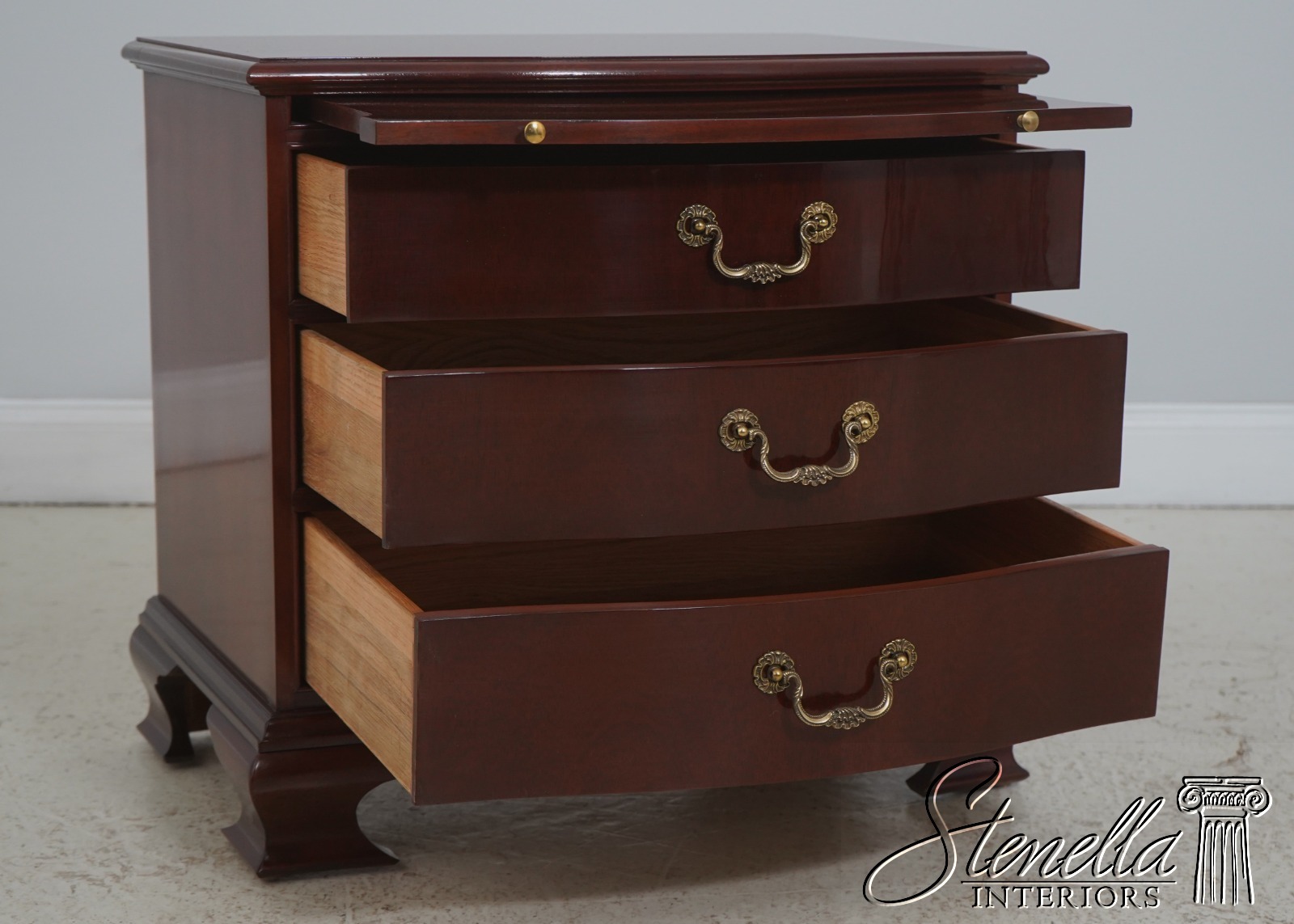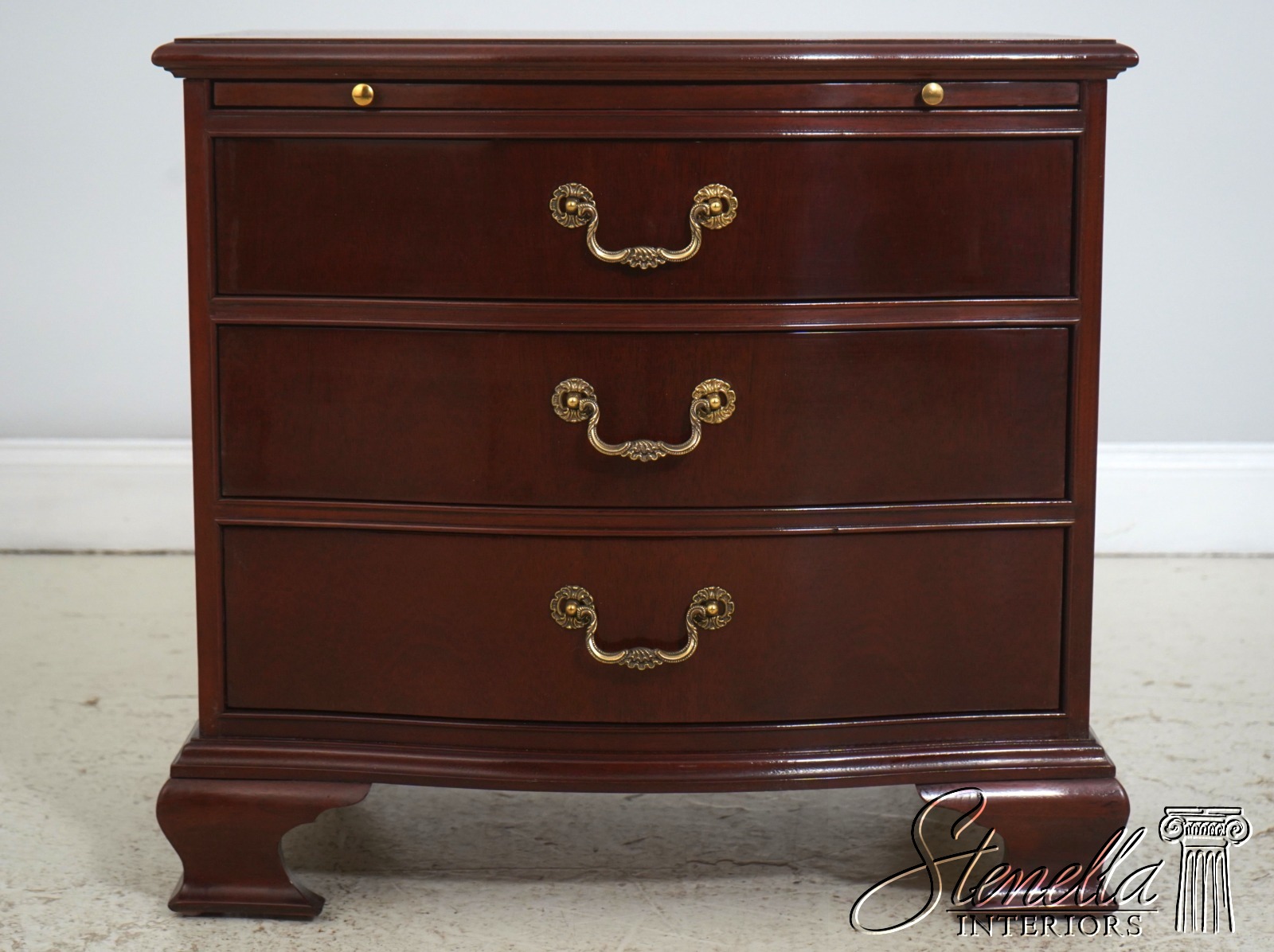 Details: Serpentine Curved Front High Quality Construction 18 C. Design Chippendale Style Traditional Style Solid Brass Hardware Rich High Sheen Reddish Mahogany Finish Offered @ Fraction Original Retail Cost