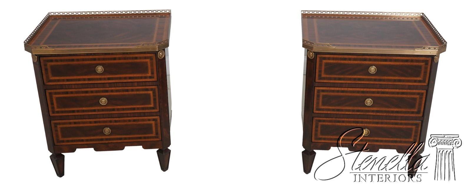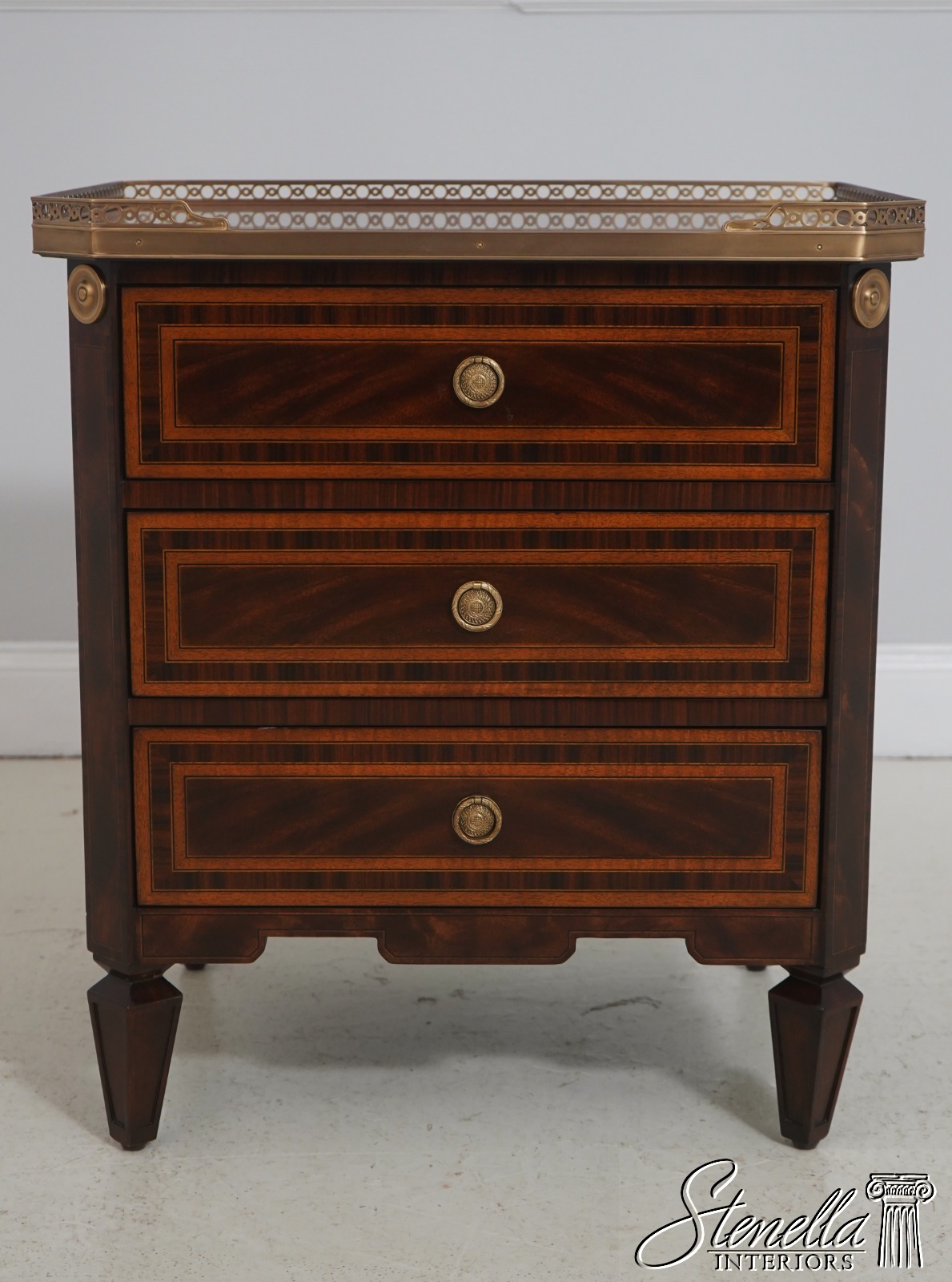 Details: Althorp Collection Model AL60057 Nice Inlay Work Throughout Brass Gallery Top & Hardware French Louis XVI Style