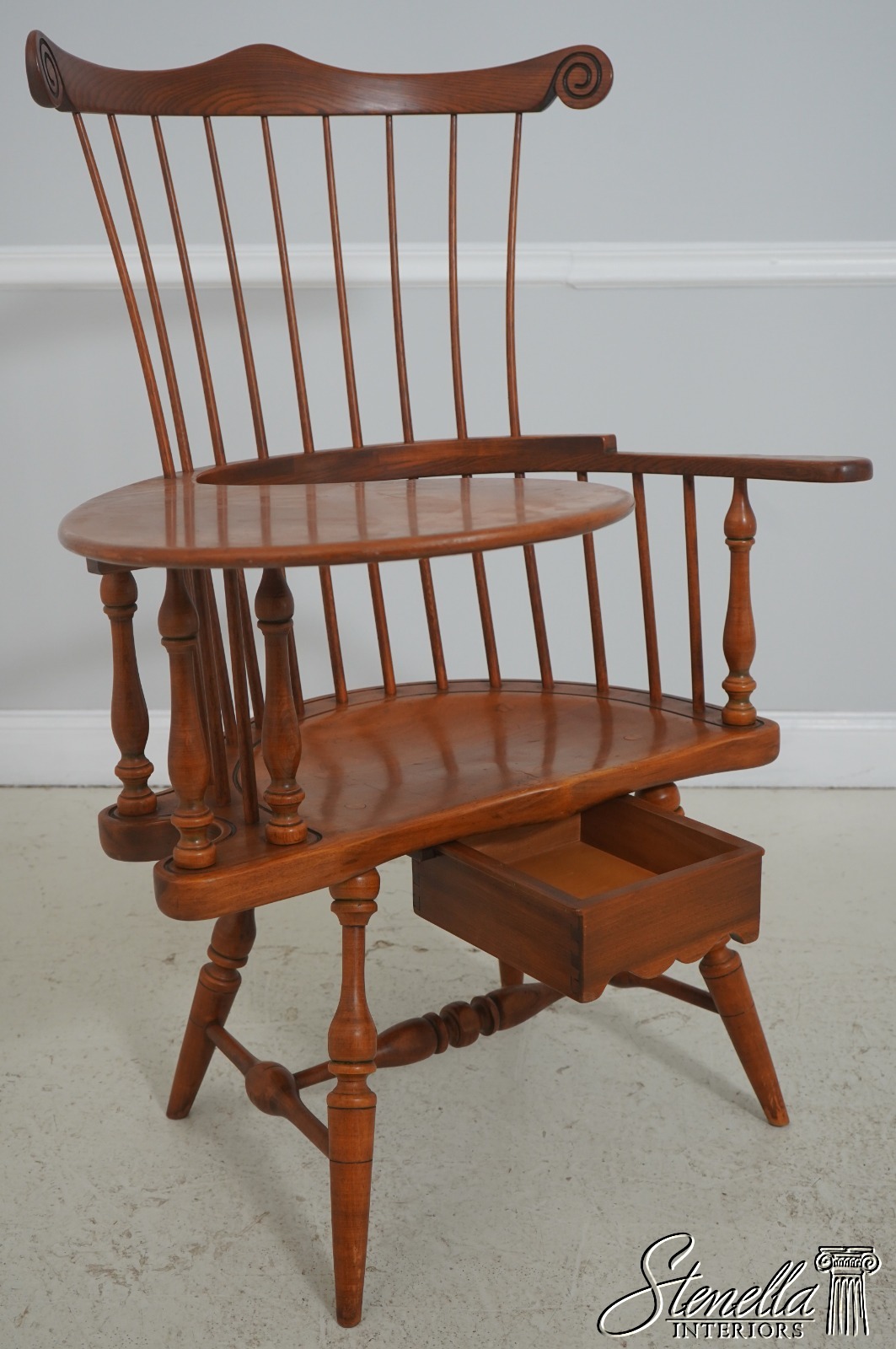 • 71526: FREDERICK DUCKLOE Oak, Cherry, And Walnut Comb-Back Windsor Desk Writing Chair