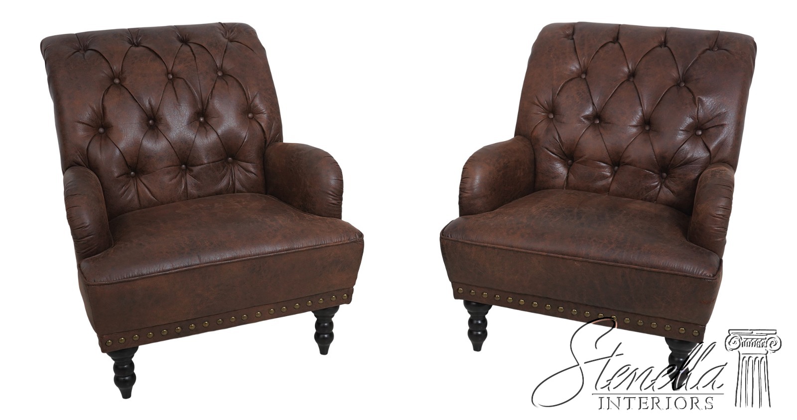 63937EC: Pair Tufted Back Faux Leather Club Chairs