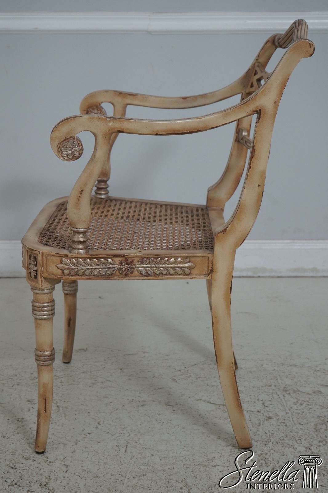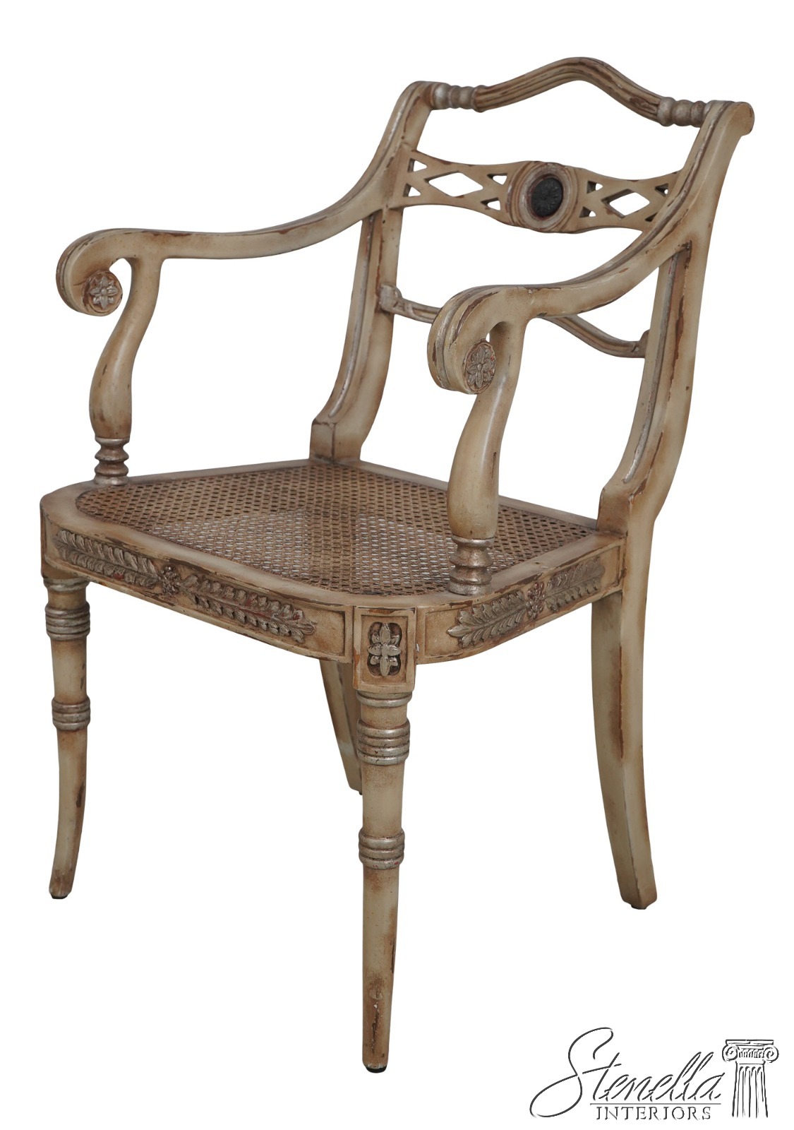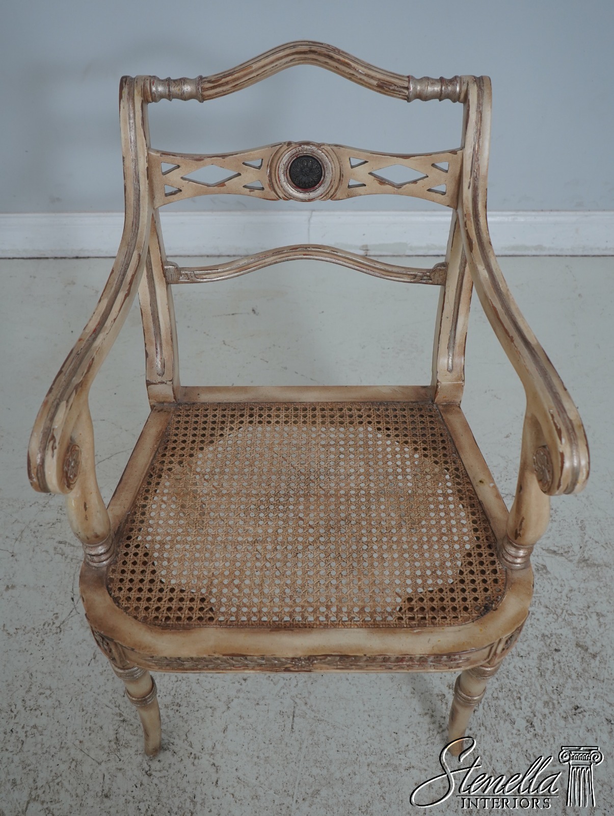 64125EC: Regency Style Distressed Painted Finish Armchair