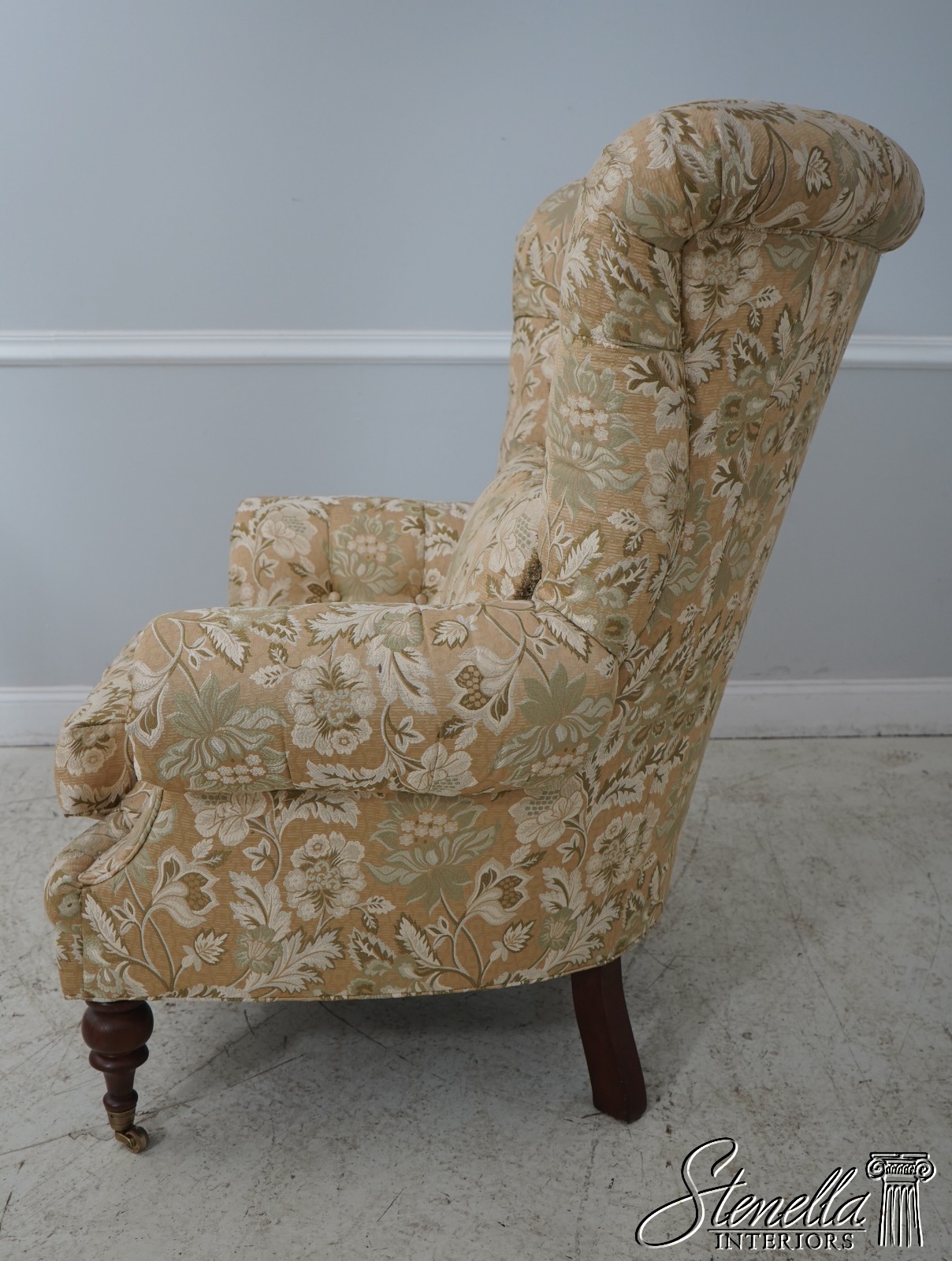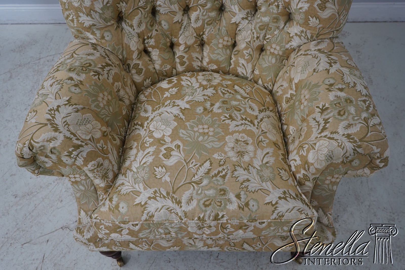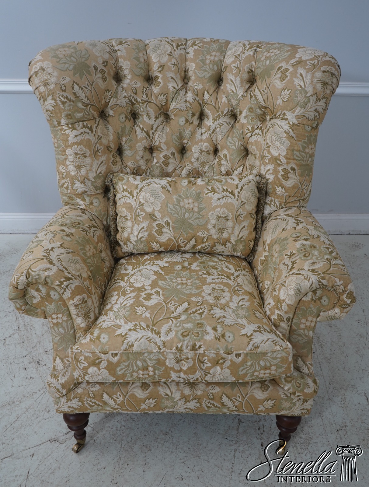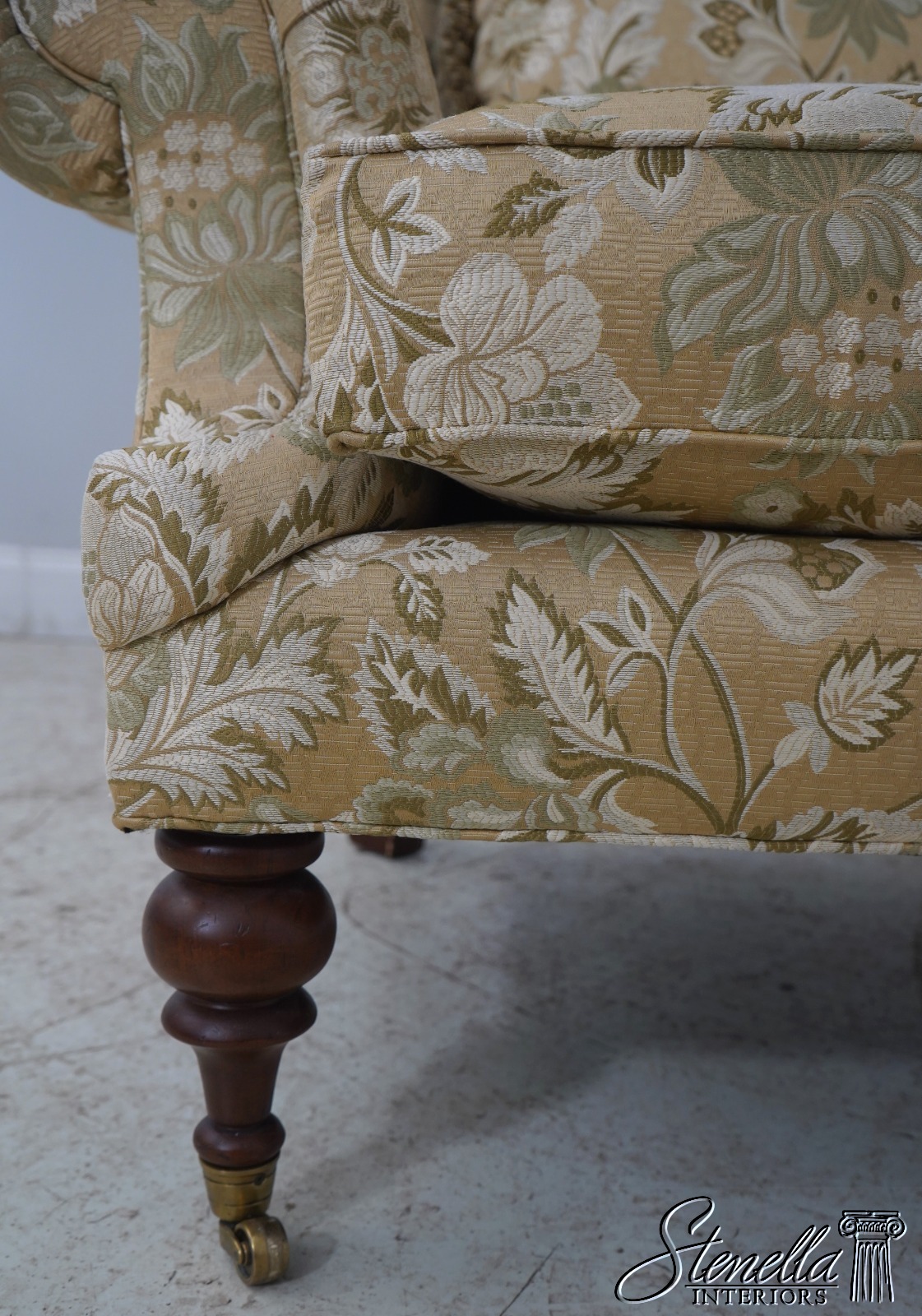 Details: Extremely Well Cared For Rarely Used Large Impressive Chair Nice Turned Legs w. Brass Caster Feet Offered @ Fraction Original Retail Cost