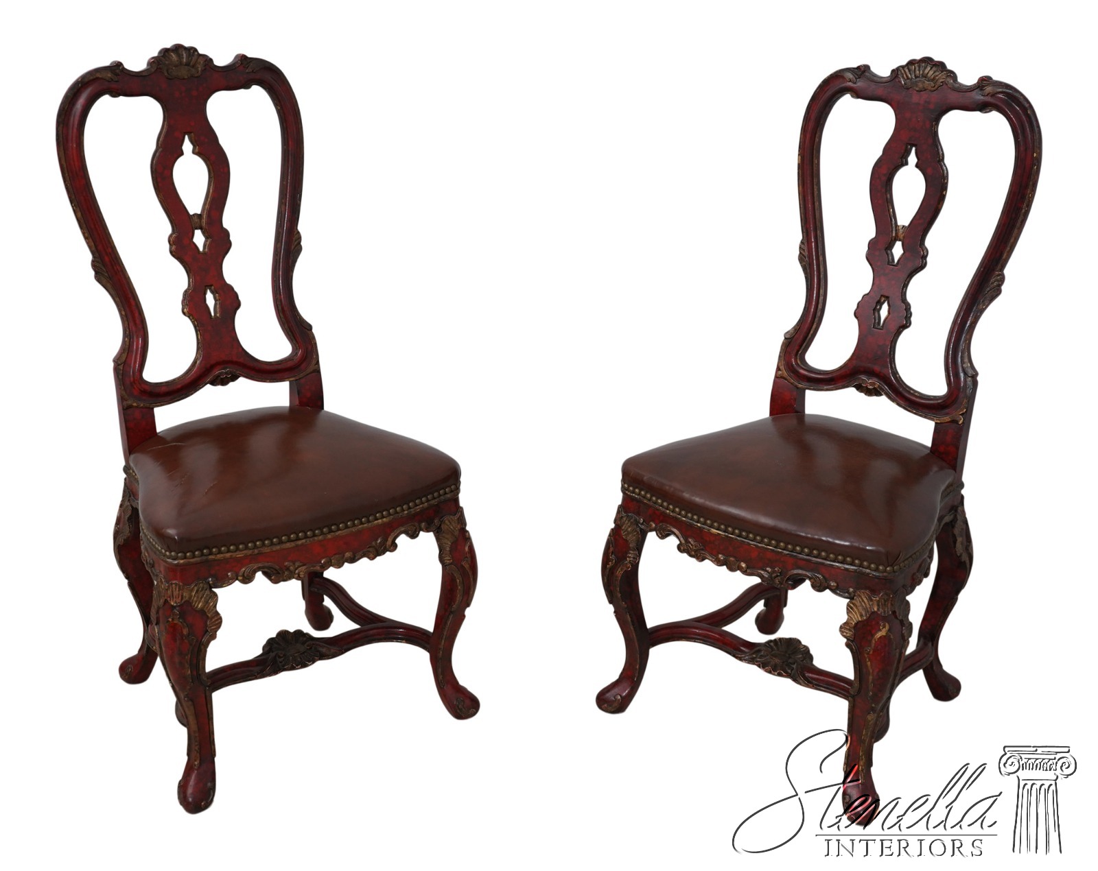 66580EC: Pair Vintage Flemish Baroque Painted Side Chairs