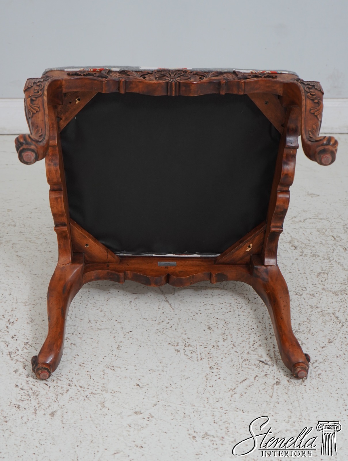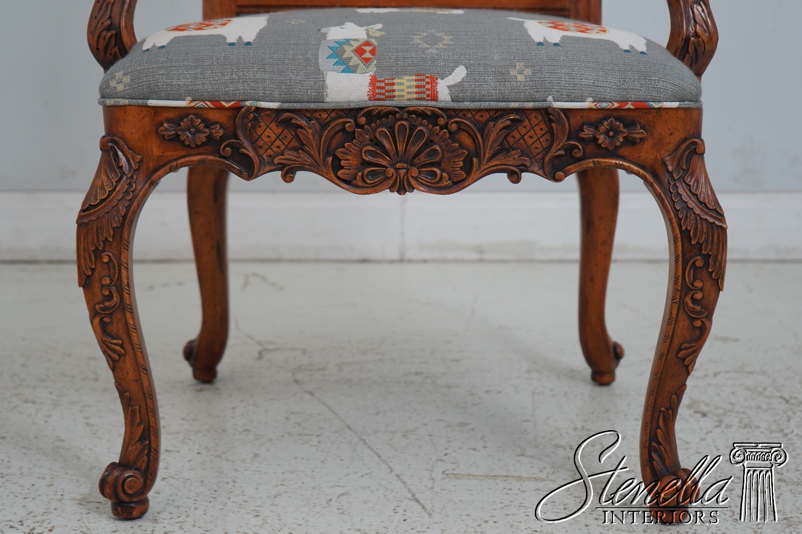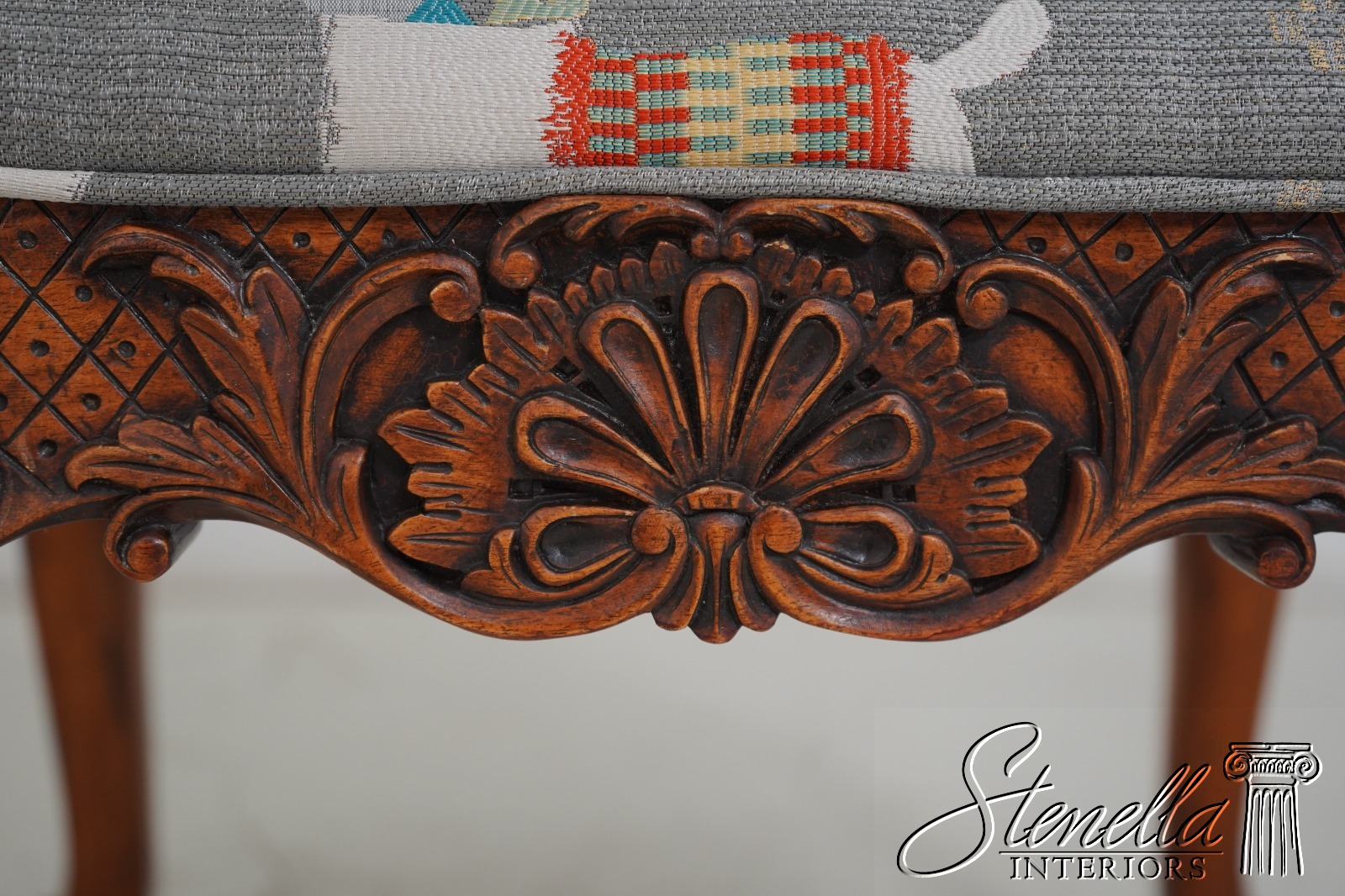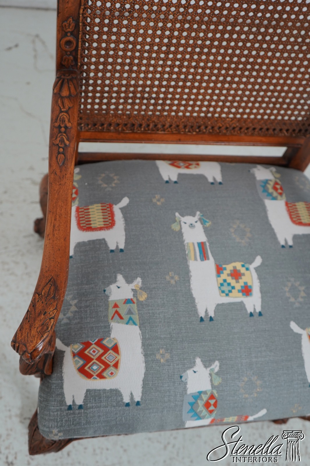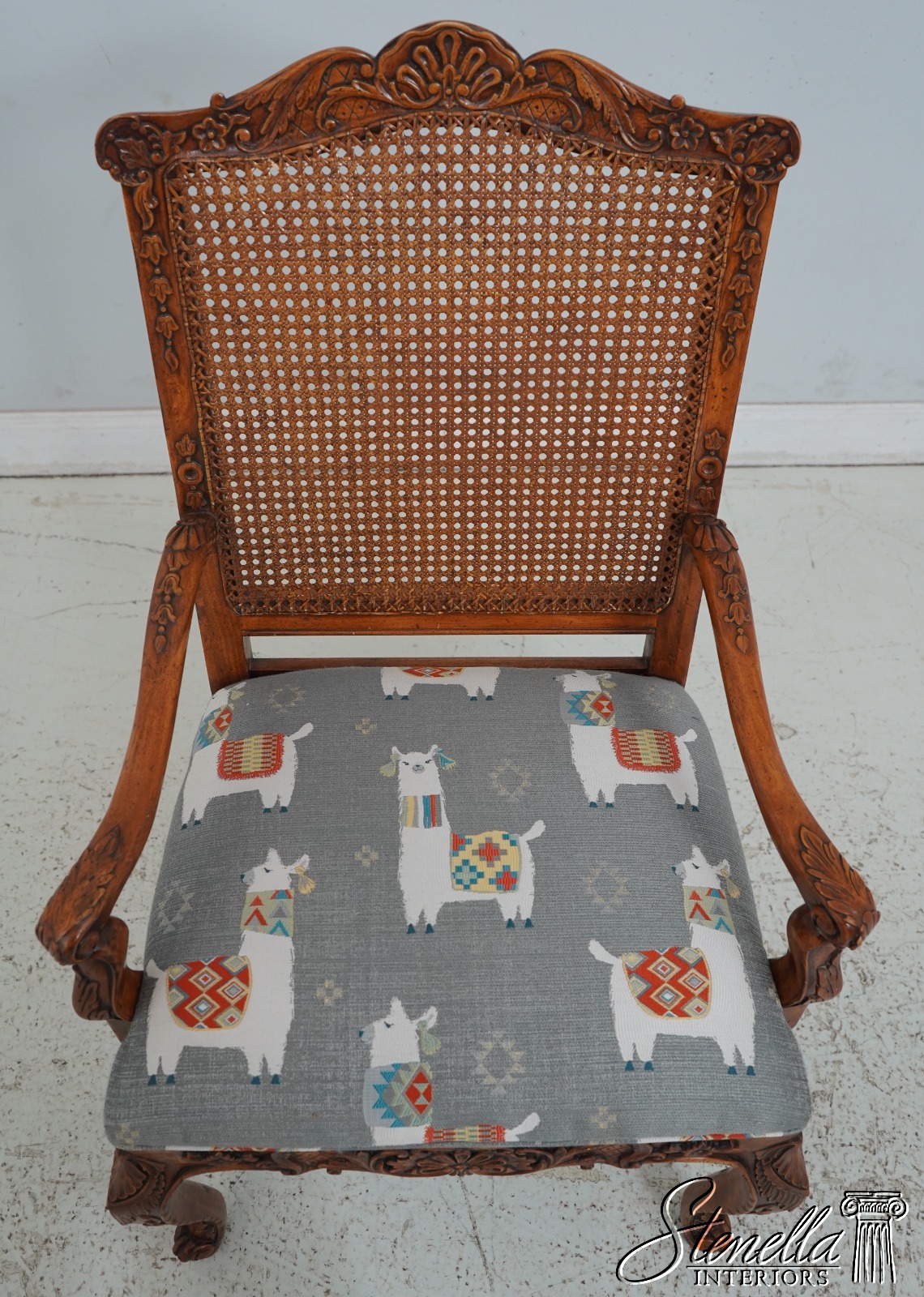 Details: Factory Distressed Walnut Fine Carved Details High Quality Construction Exceptional Quality Frames Queen Anne Legs & Pad Feet Newly Upholstered Seats Cane Backs Llama/Alpaca Fabric Scroll Feet