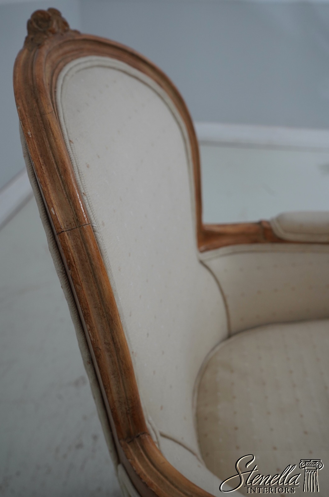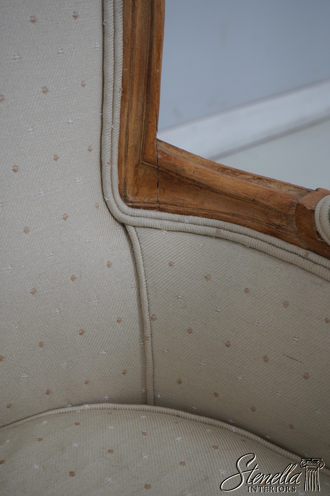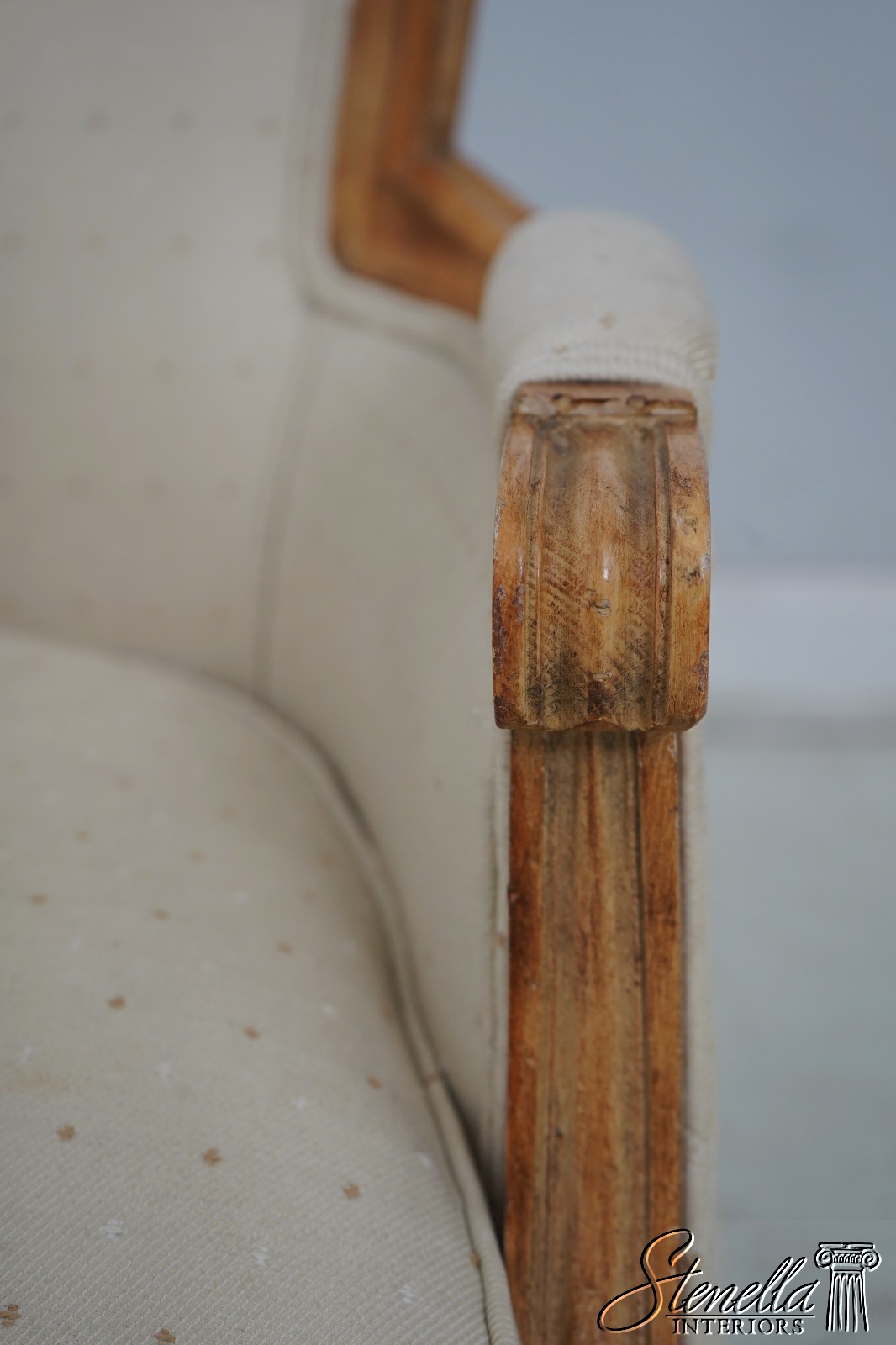 Sometimes upholstered items may show some wear or minor use. Or you may want to have recovered in different upholstery to match your decor’. Please feel free to contact us for information on having this or any of our items professionally re-upholstered in the fabric of your choice. We are able to make recommendations.