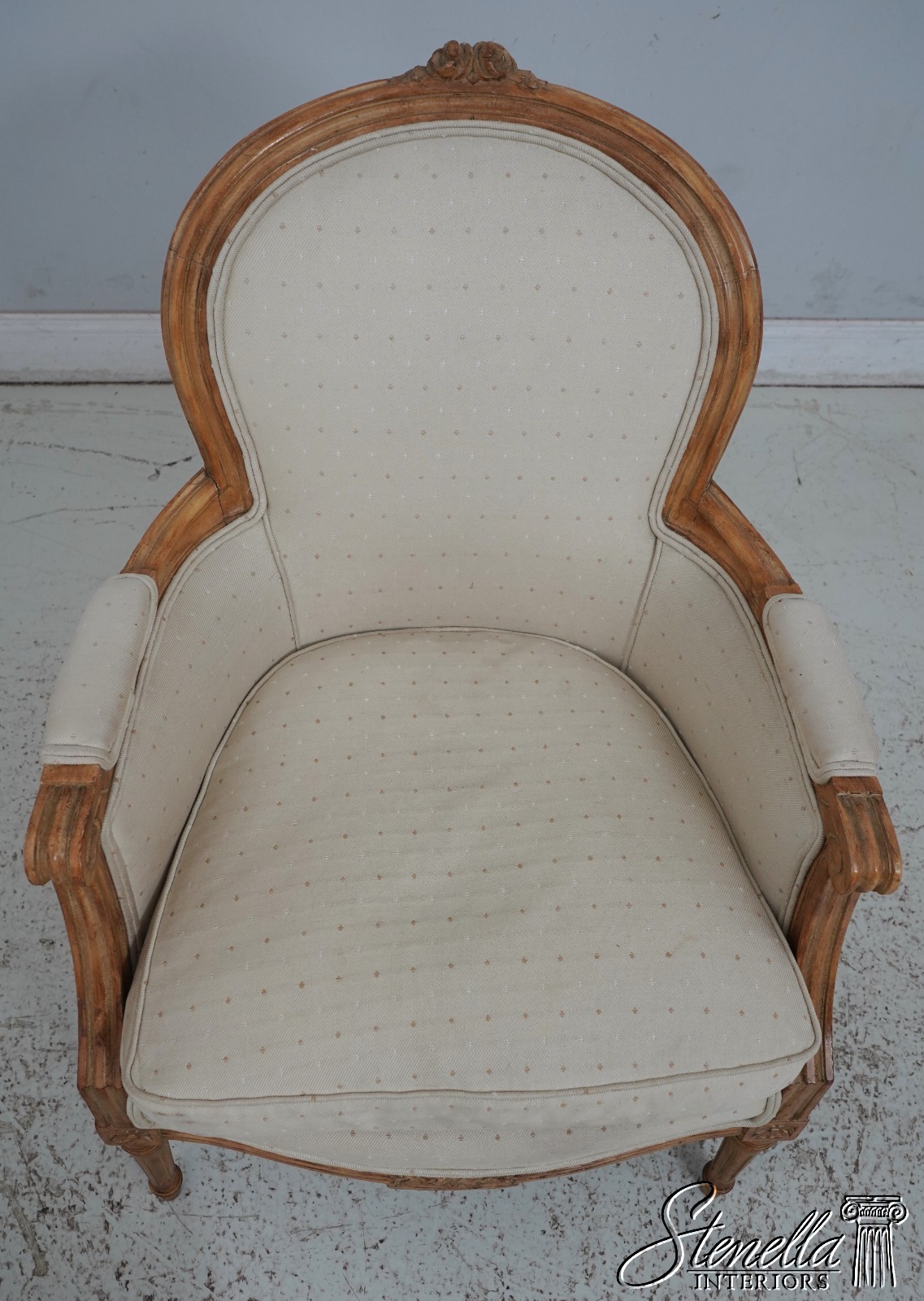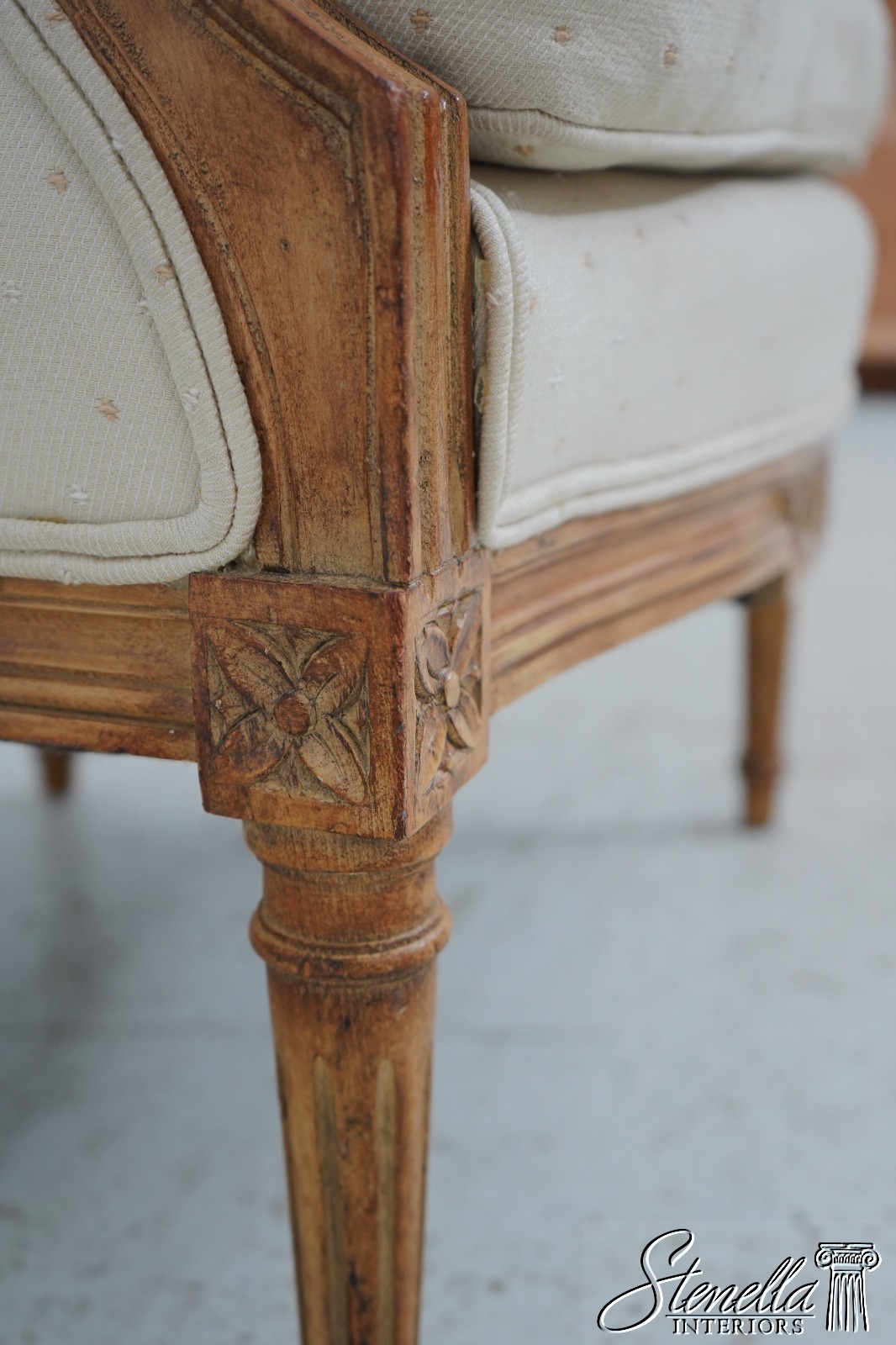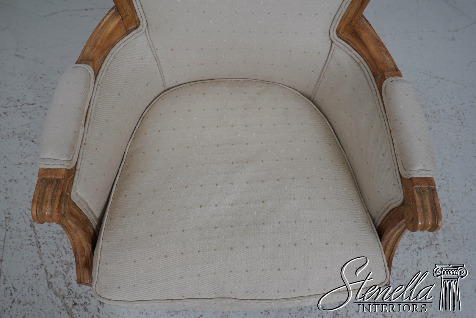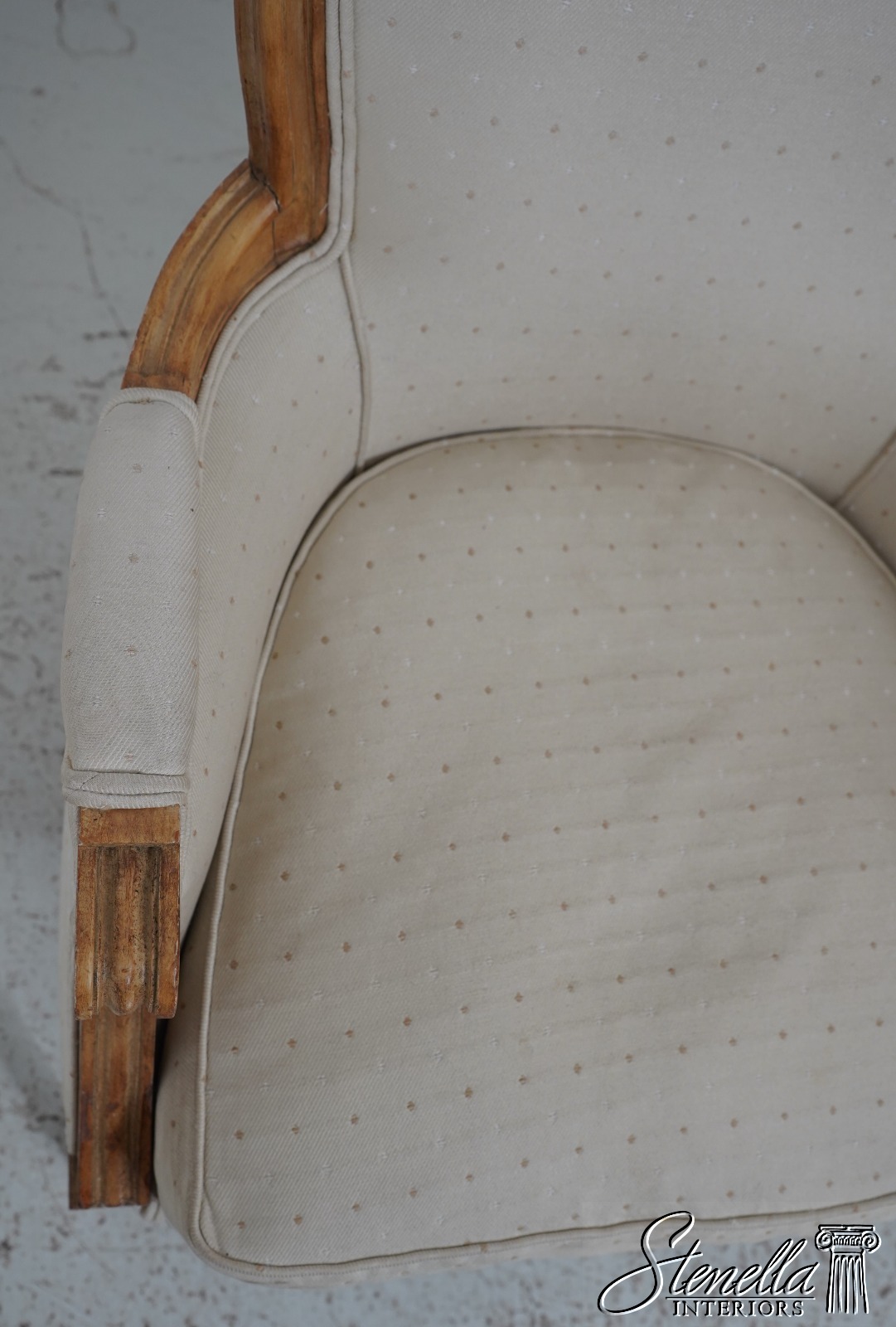 Sometimes upholstered items may show some wear or minor use. Or you may want to have recovered in different upholstery to match your decor’. Please feel free to contact us for information on having this or any of our items professionally re-upholstered in the fabric of your choice. We are able to make recommendations.