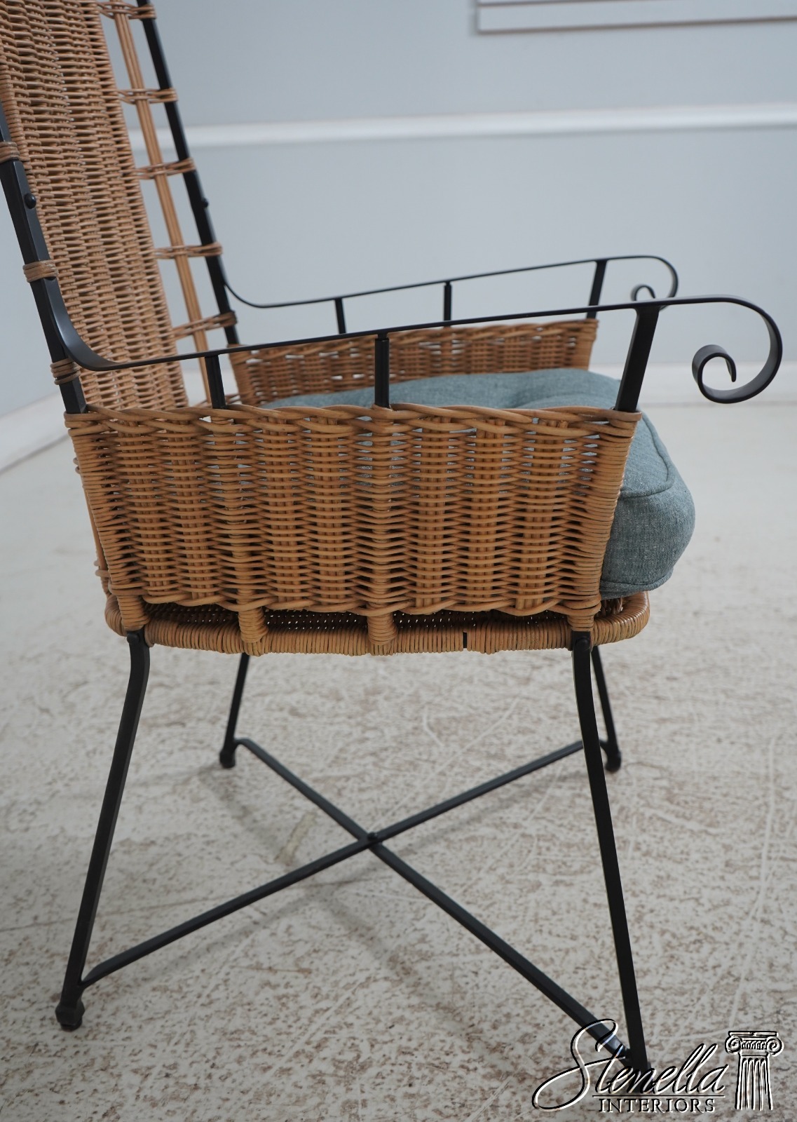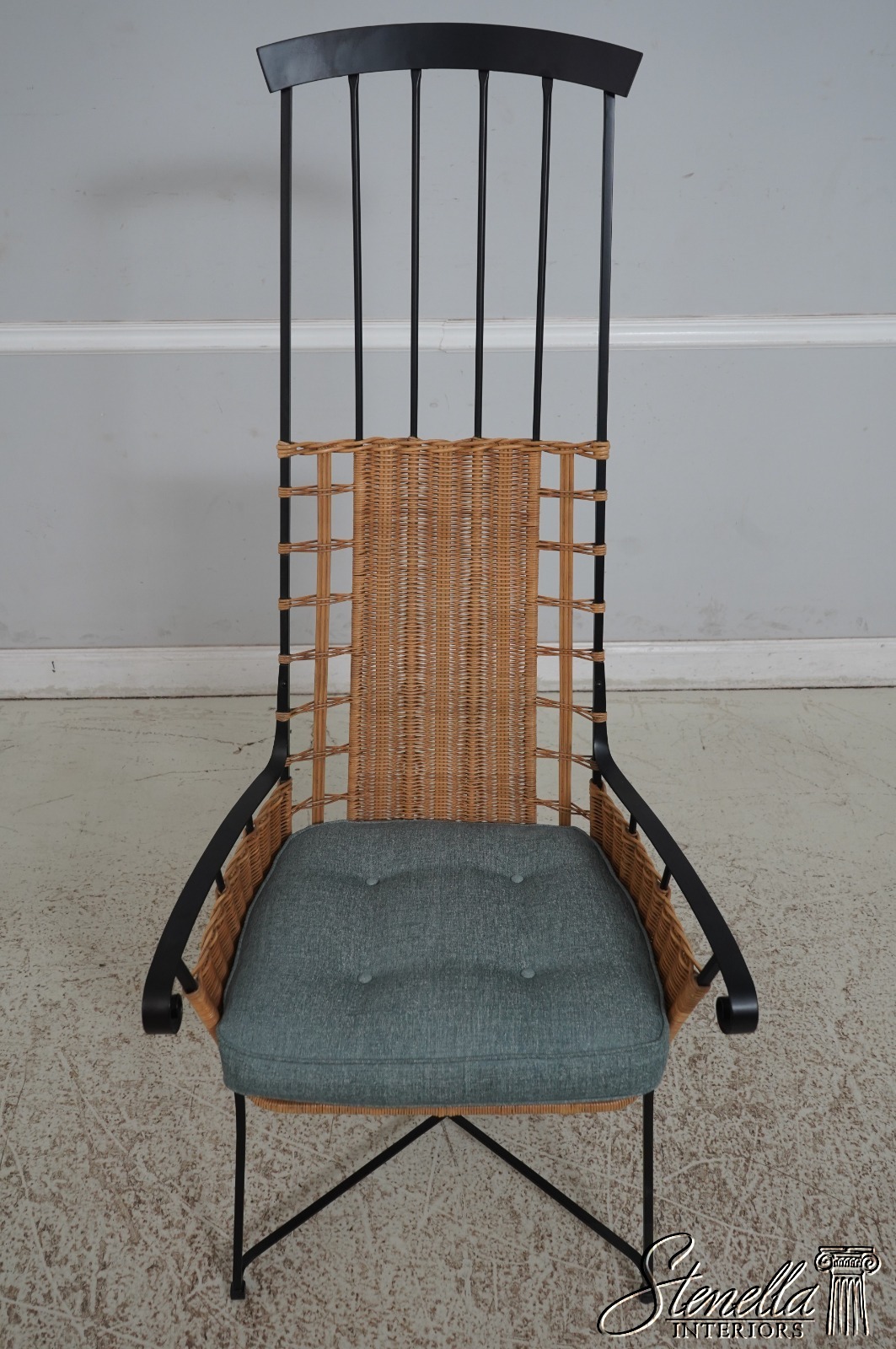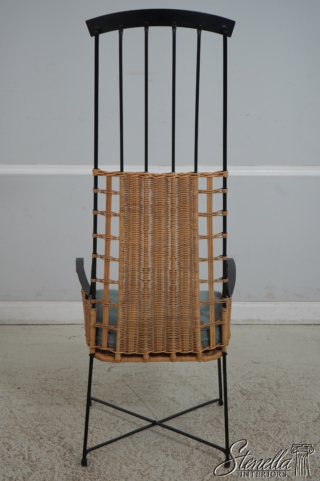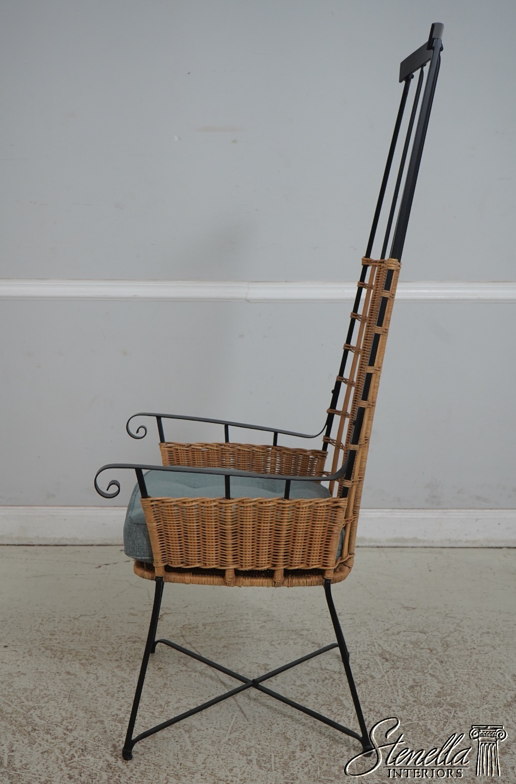 67257: Modern Design Iron & Wicker Porset High Back Chair