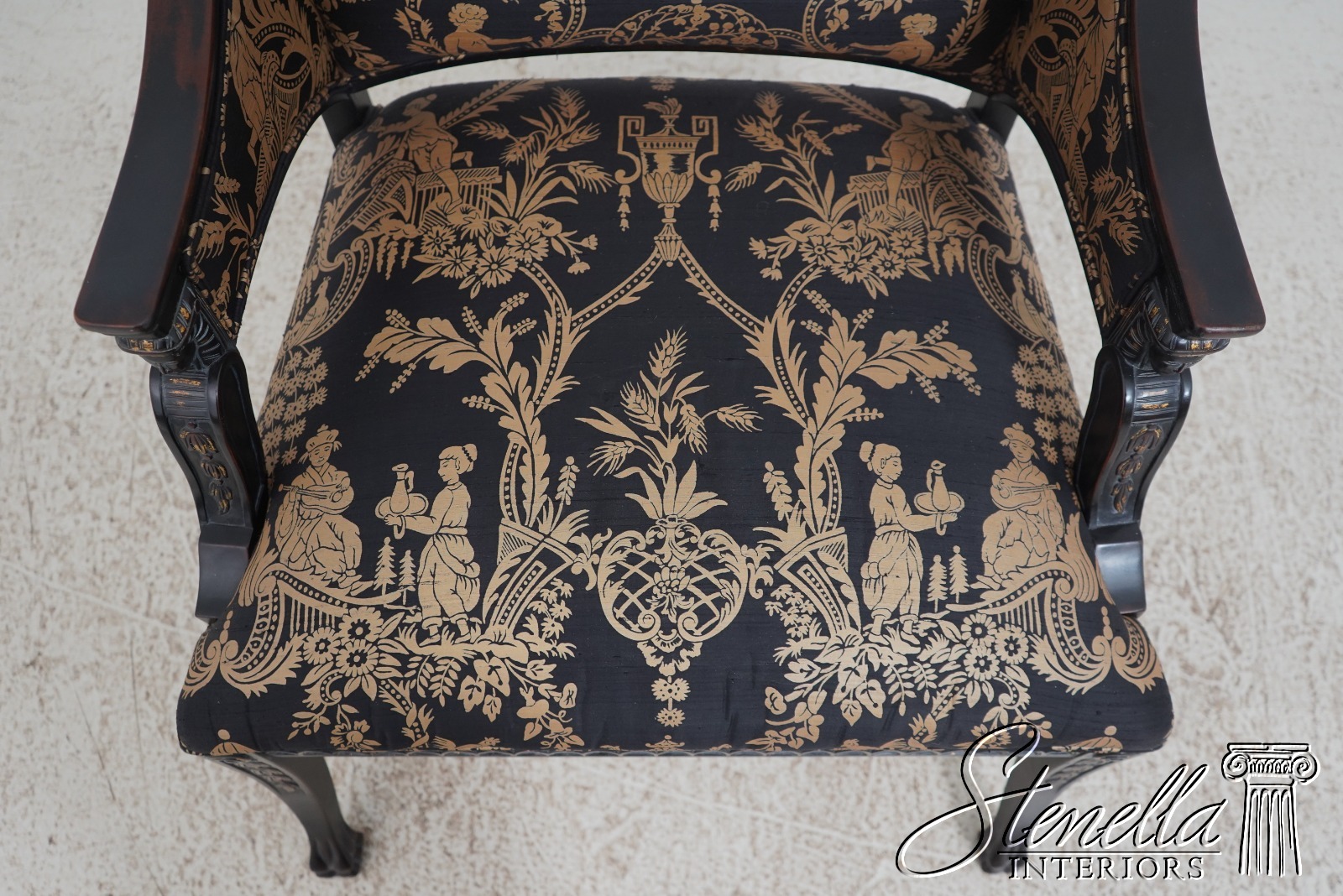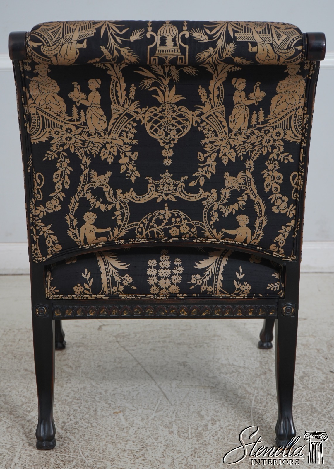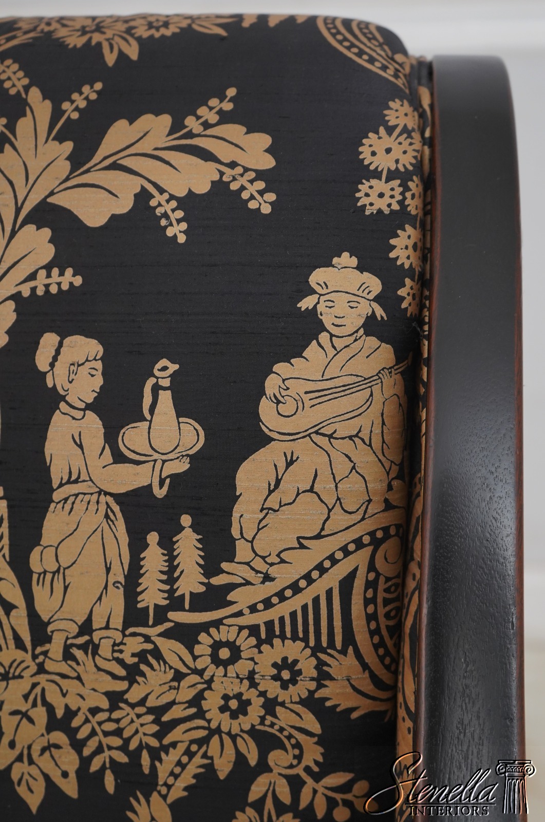 67452: Pair Of Black & Gold Chinoiserie Upholstered Armchairs