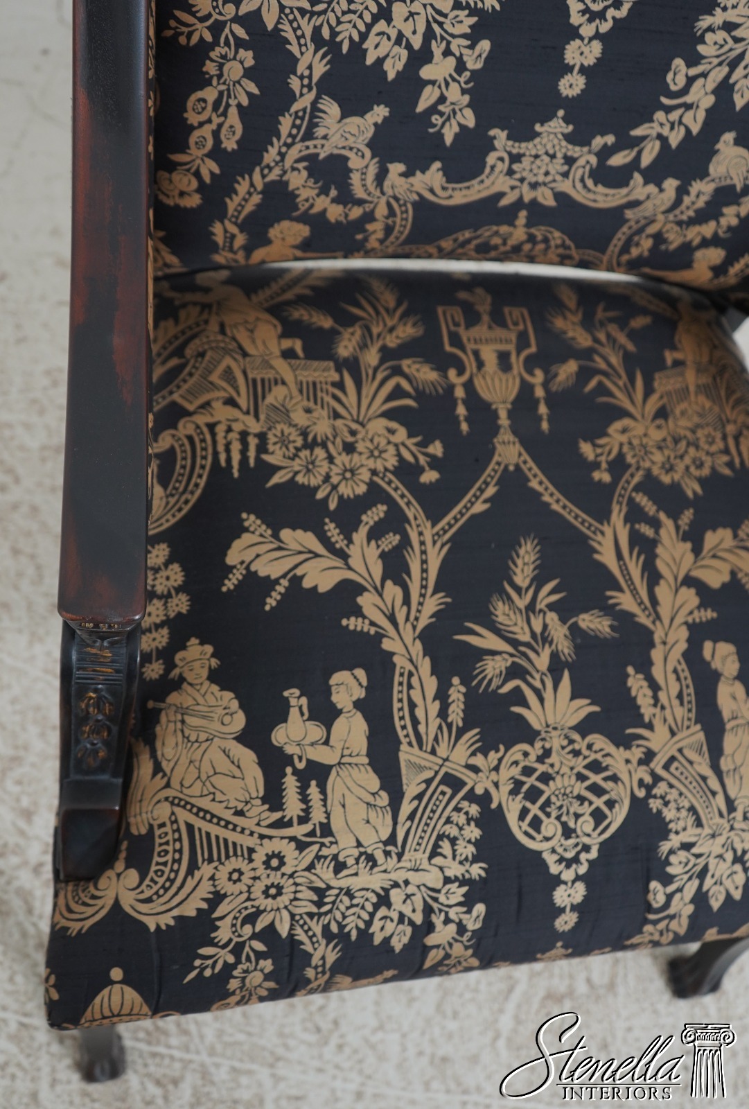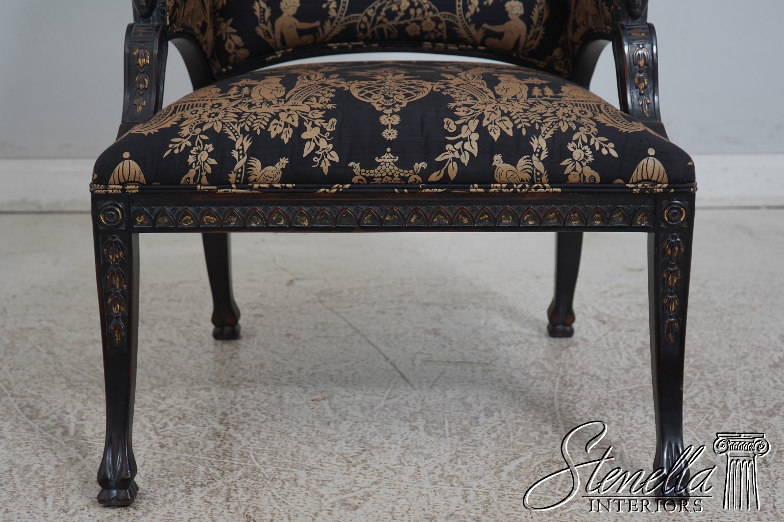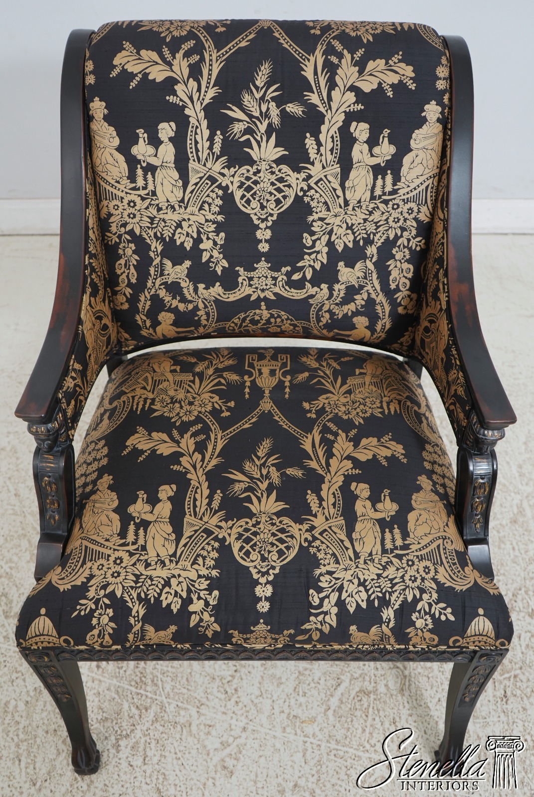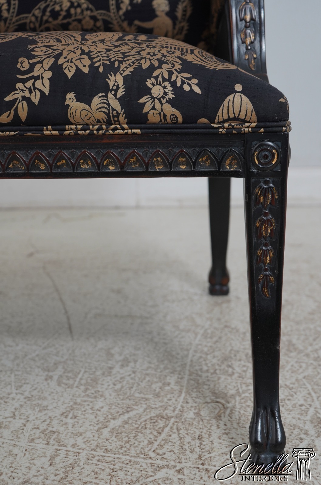 67452: Pair Of Black & Gold Chinoiserie Upholstered Armchairs